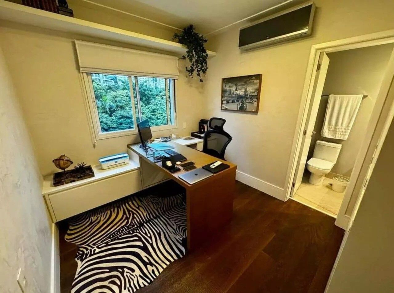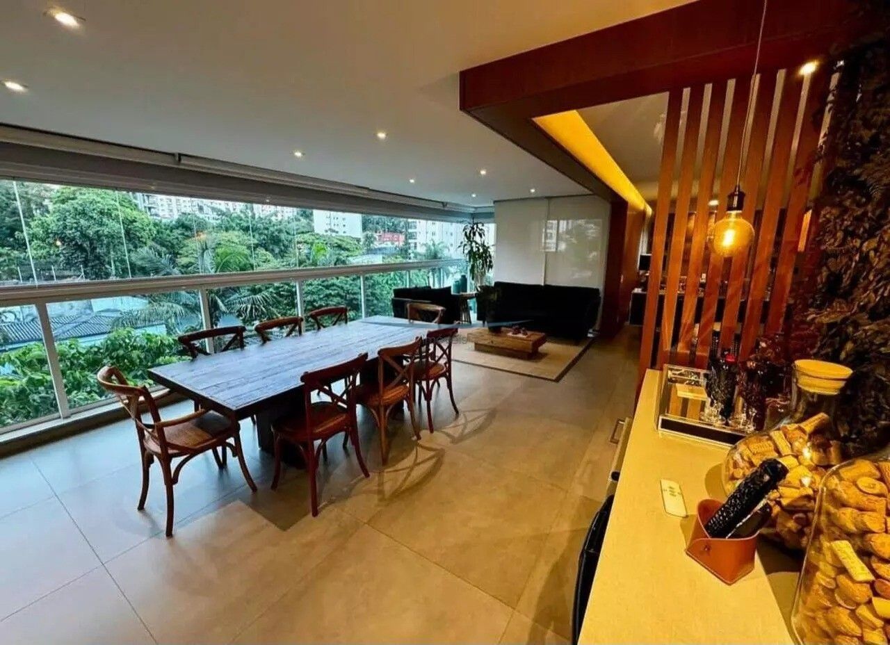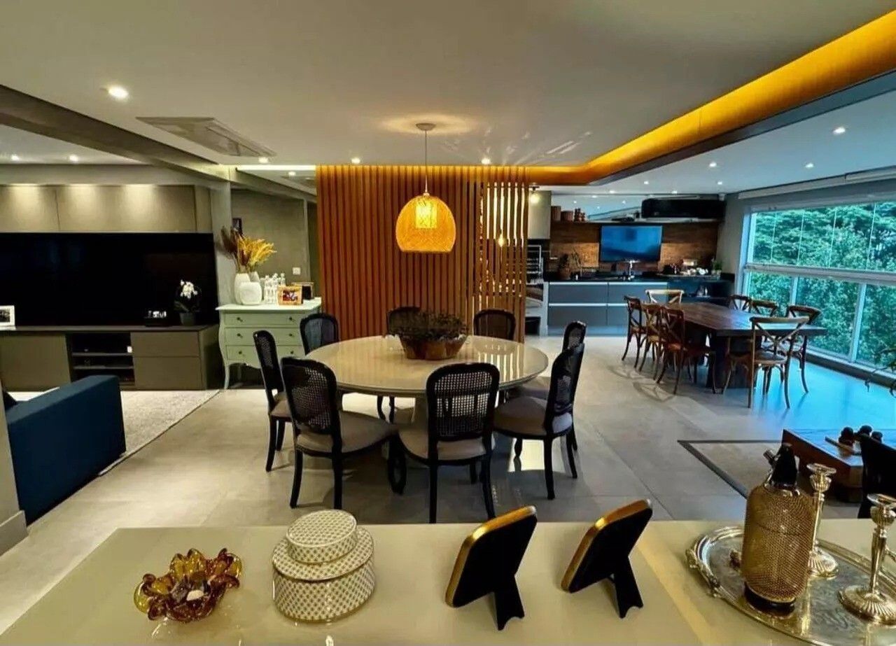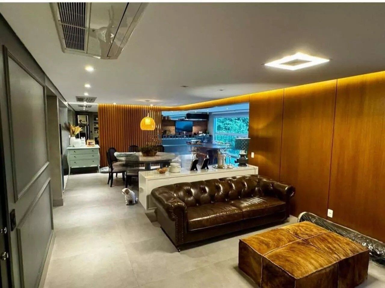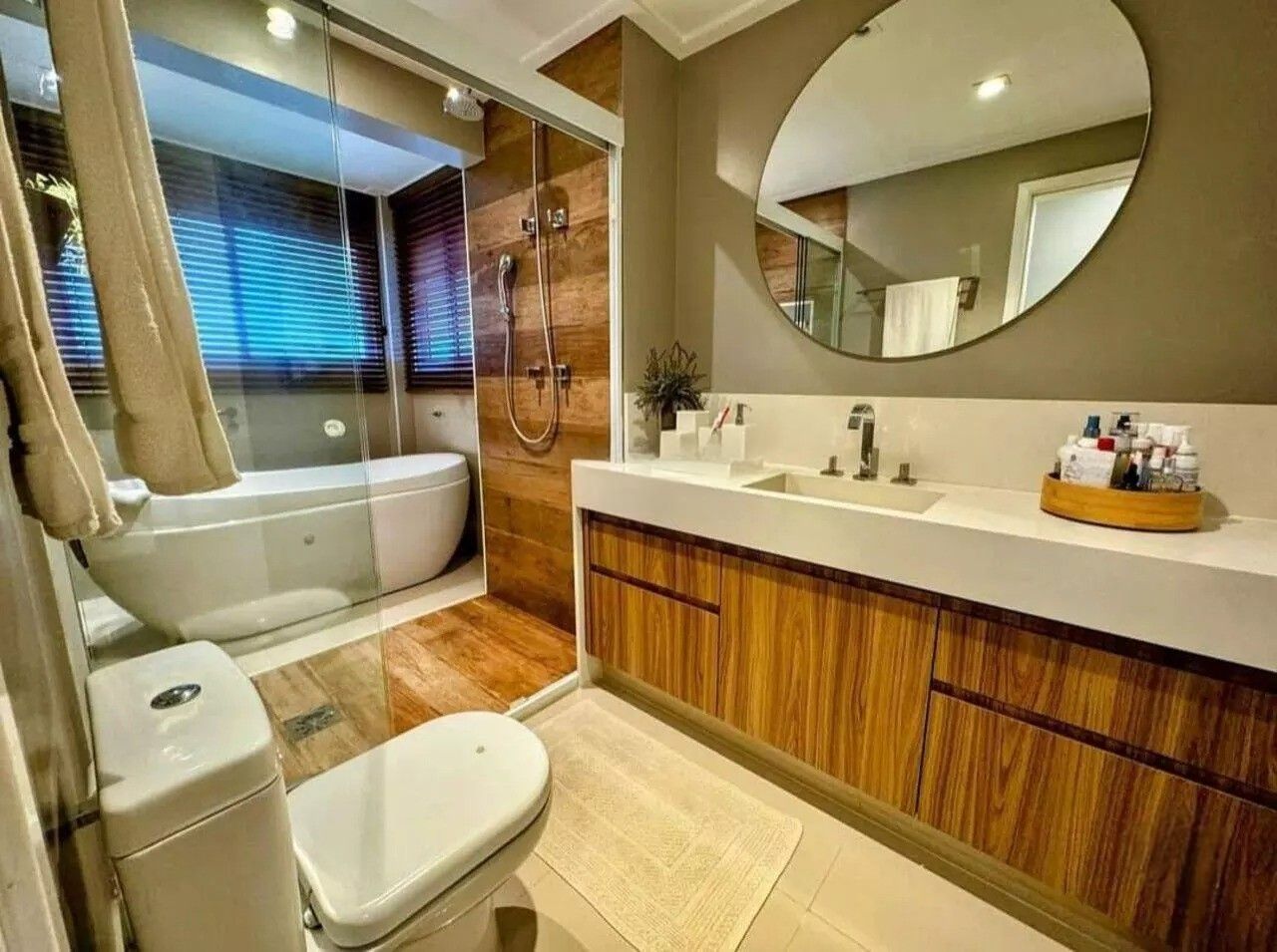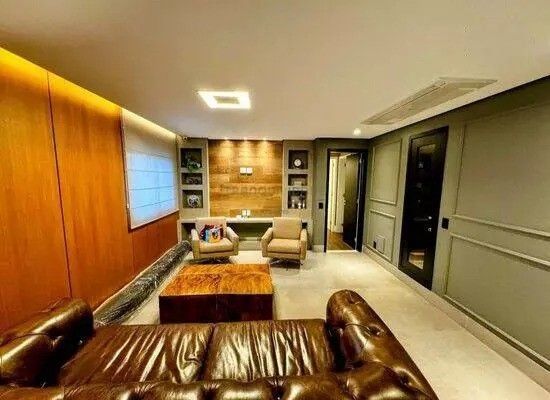 Este apartamento de alto padrão conta com 198m² de área útil, distribuídos em 3 suítes espaçosas, dormitório de serviço e 5 banheiros no total. A área social é composta por 3 salas integradas – estar, jantar e TV –, além de uma varanda gourmet perfeita para receber. Os acabamentos são impecáveis, com ar-condicionado em todos os ambientes, portas blindadas e marcenaria planejada de alta qualidade. Para maior comodidade, o imóvel dispõe de 4 vagas de garagem cobertas. Um espaço sofisticado, projetado para oferecer conforto, privacidade e funcionalidade em cada detalhe.