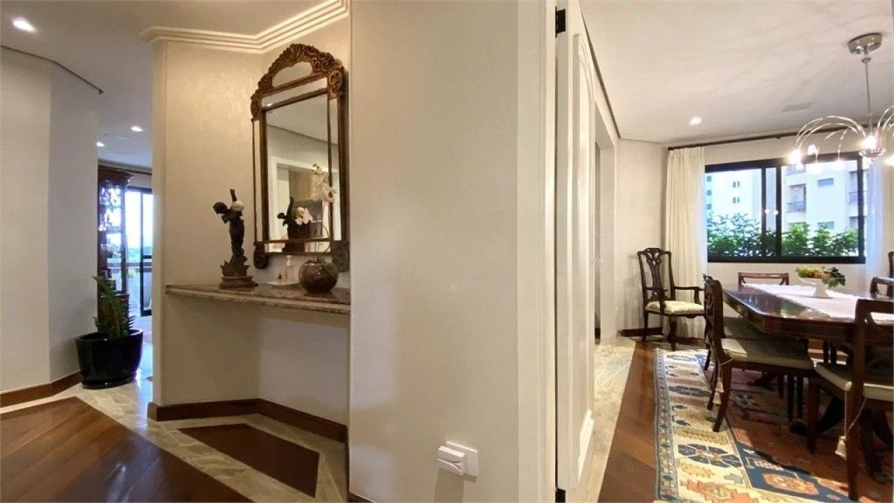 Com 200m², ampla área social de 50m² integrada para até 4 ambientes, piso em tábua larga de ipê e varanda com vista espetacular para o verde. Atualmente configurado com 3 dormitórios, incluindo uma suíte master com dois closets e escritório, mas com planta flexível para 4 dormitórios. A cozinha é espaçosa, com armários planejados e sala de almoço, além de área de serviço com dependência completa. São 5 vagas de garagem + depósito, um diferencial raro na região. O condomínio oferece piscina adulto e infantil, salão de festas e portaria eletrônica. Localização privilegiada, fora da rota de aviões, a poucos minutos dos colégios Consa e Móbile, além do Parque Ibirapuera. Um imóvel único, que une espaço, conforto e exclusividade em uma das regiões mais desejadas da cidade.