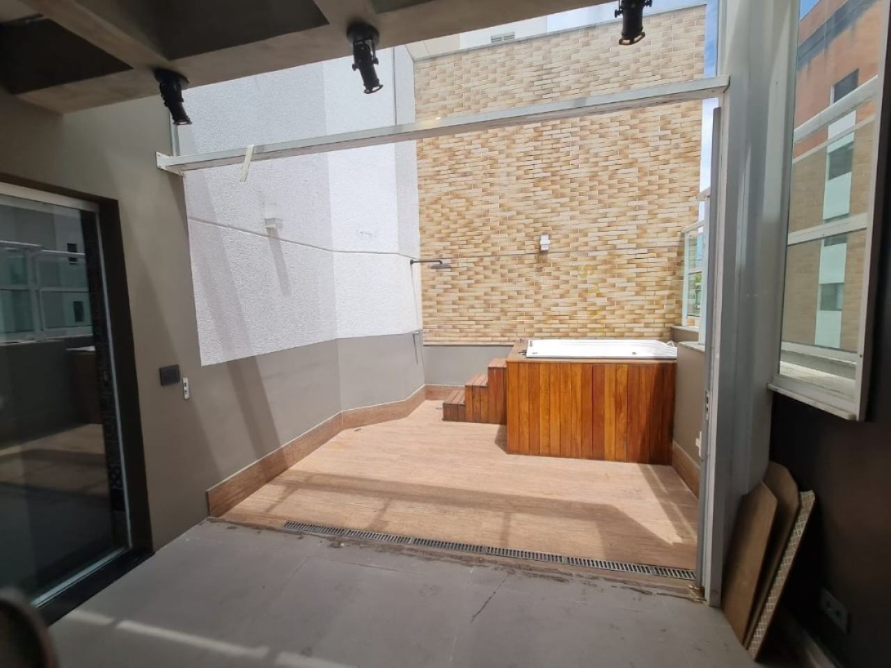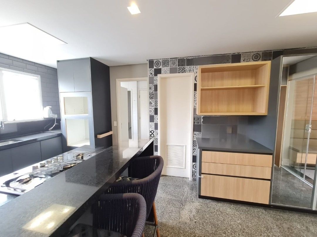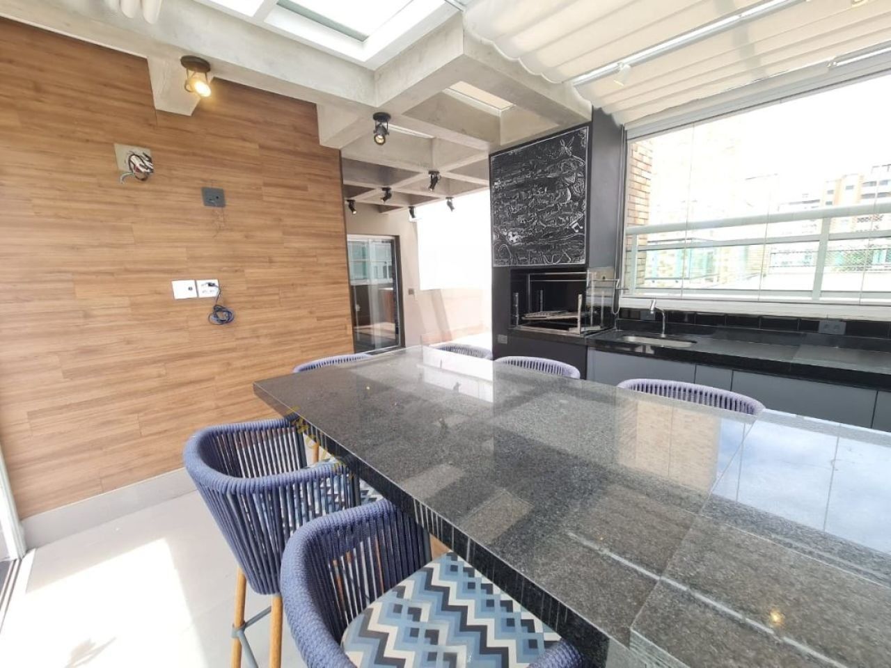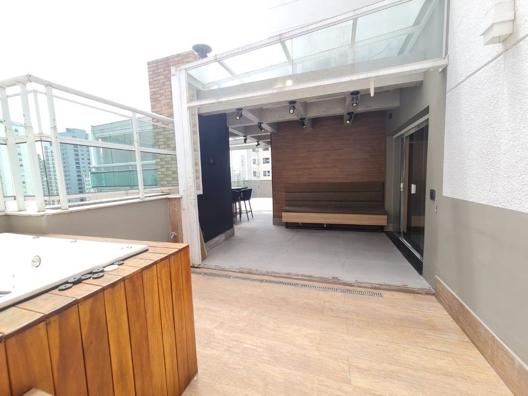 Maravilhosa cobertura duplex com projeto arquitetônico impecável, ambientes amplos e acabamentos sofisticados. No piso inferior, amplo living para três ambientes com piso em tábuas largas, ar-condicionado e excelente iluminação natural. A cozinha americana conta com armários planejados, cooktop, balcão e despensa. A área externa oferece terraço gourmet, jacuzzi e uma vista espetacular. No piso superior, são quatro suítes em tons claros, todas com armários, sendo três delas com closet.