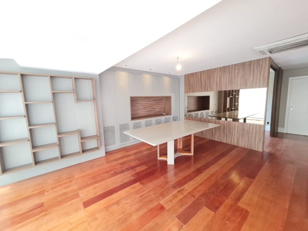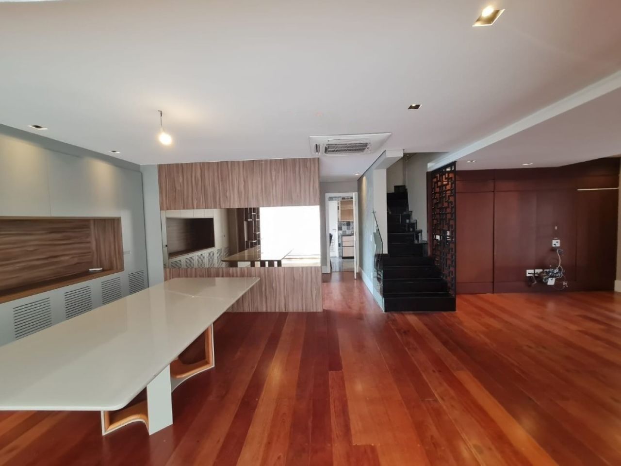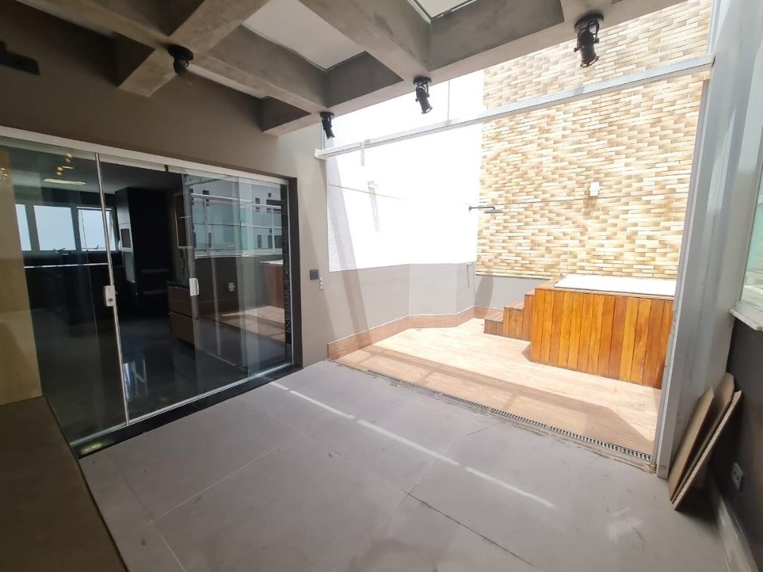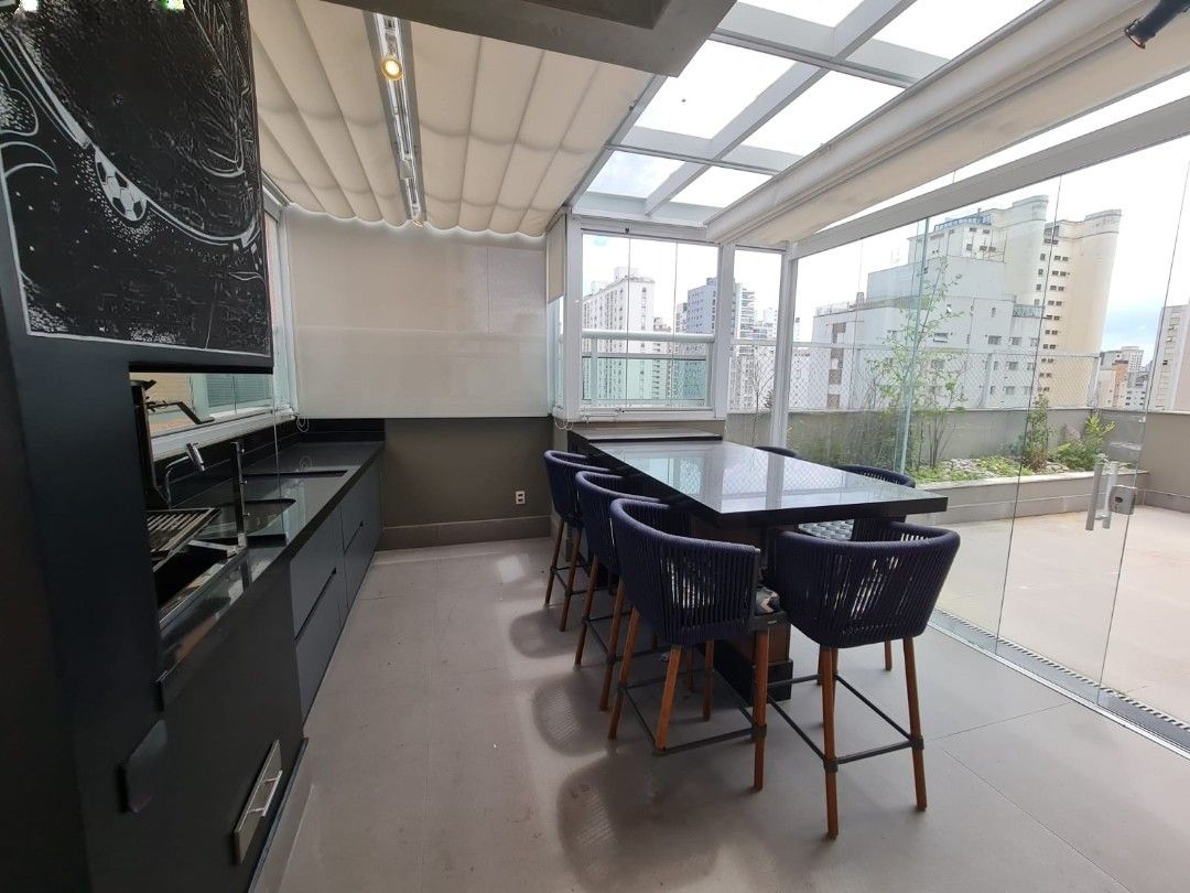 Maravilhosa cobertura duplex com projeto arquitetônico impecável, ambientes amplos e acabamentos sofisticados. No piso inferior, amplo living para três ambientes com piso em tábuas largas, ar-condicionado e excelente iluminação natural. A cozinha americana conta com armários planejados, cooktop, balcão e despensa. A área externa oferece terraço gourmet, jacuzzi e uma vista espetacular. No piso superior, são quatro suítes em tons claros, todas com armários, sendo três delas com closet.