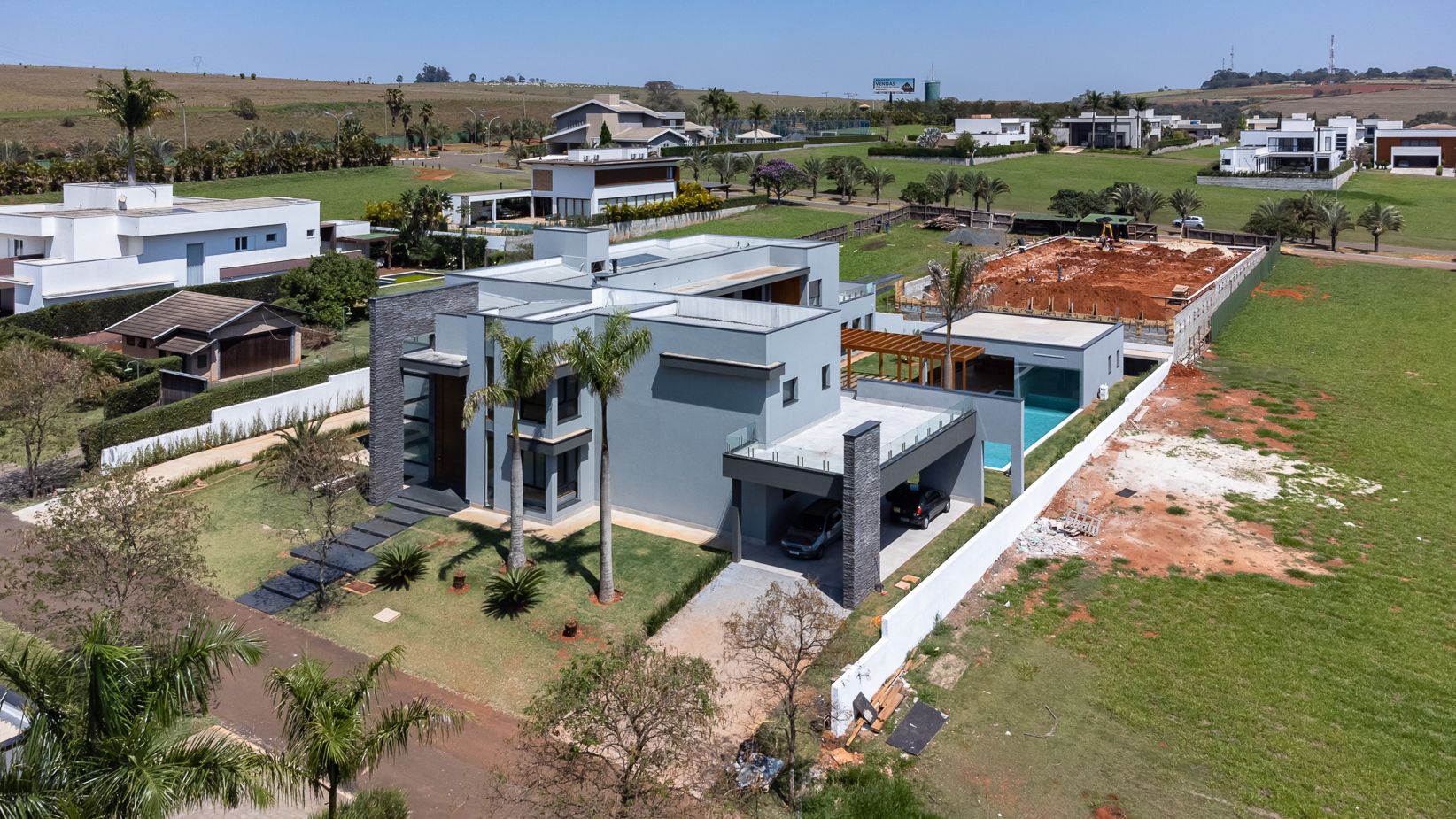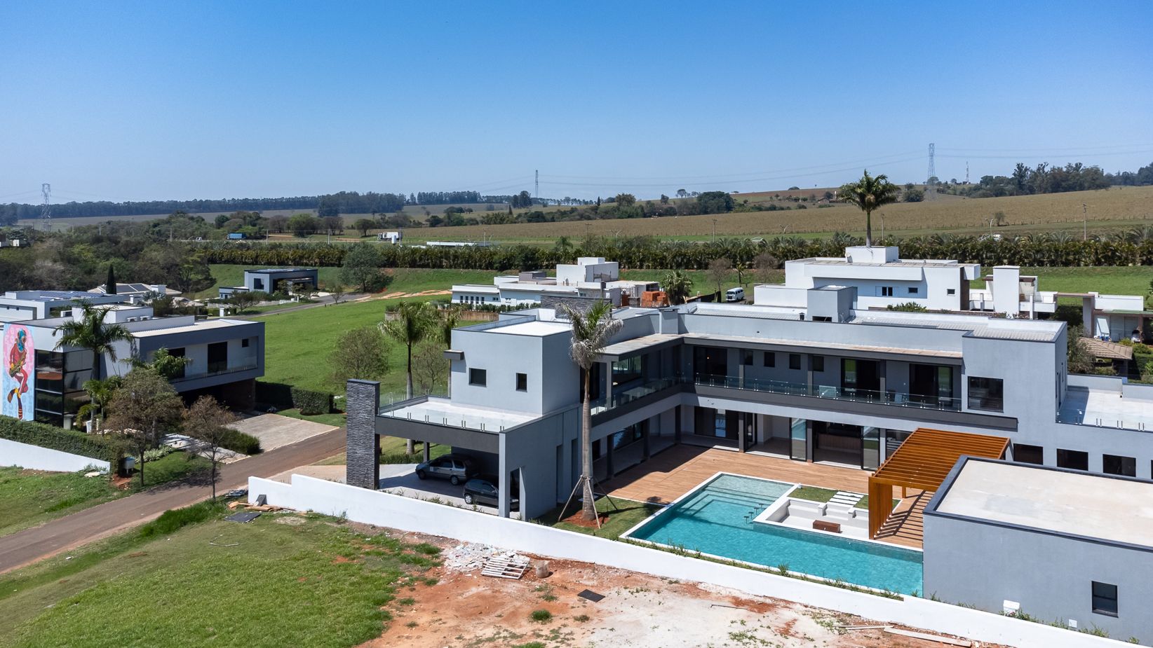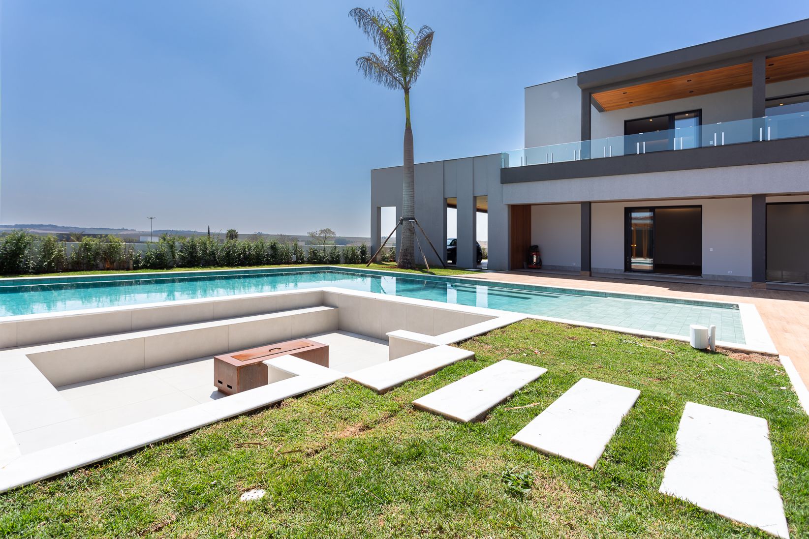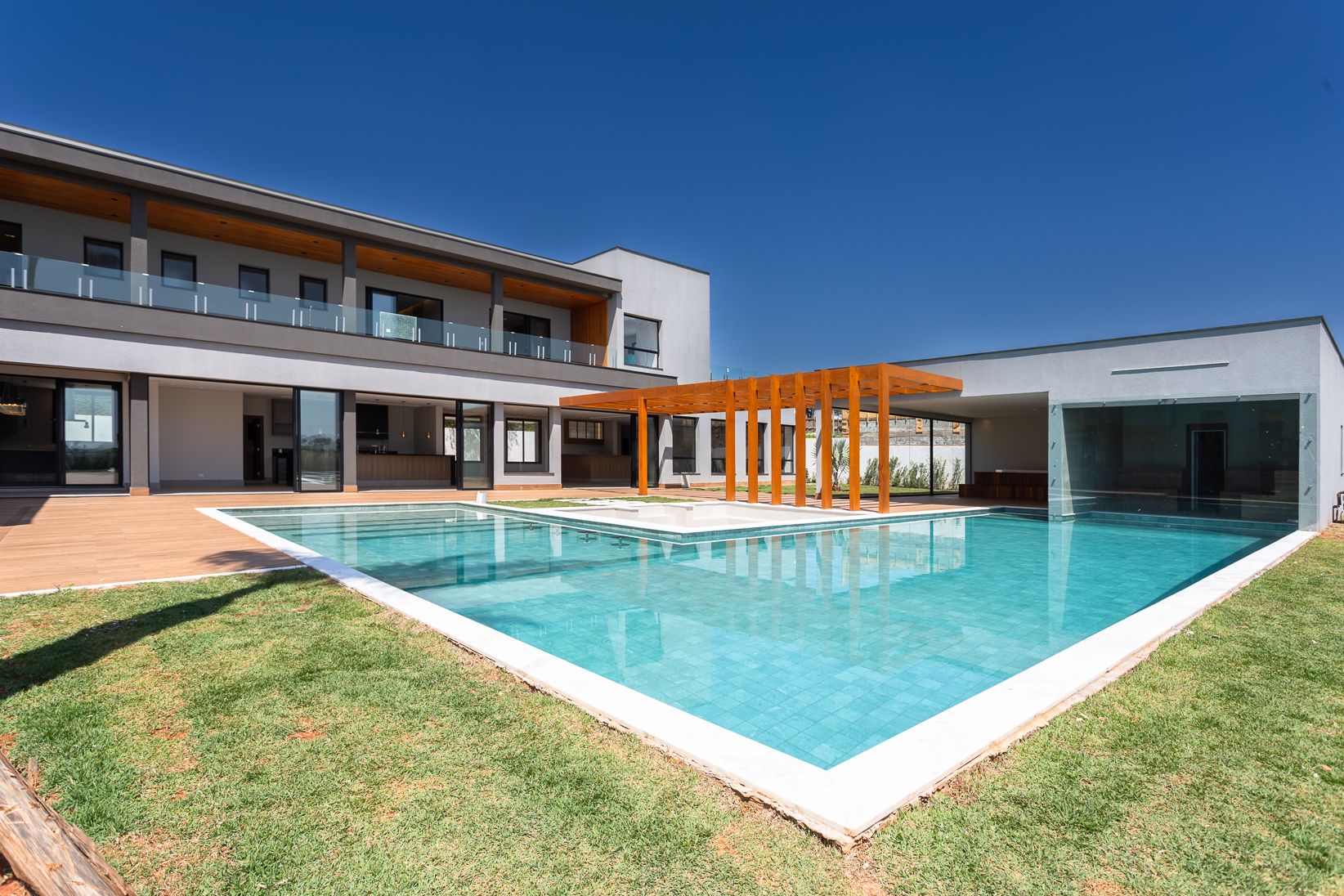 Em um lote de 2.000 m² no Residencial Fazenda Alvorada (Porto Feliz/SP), esta residência de 1.400 m² privilegia integração, pé-direito duplo e luz natural. O living para 2 ambientes se abre para a varanda com vista panorâmica, conectando a área social ao lazer. A ala íntima reúne 5 suítes (sendo master com closet), garantindo conforto e privacidade. Para receber bem, a casa oferece home cinema com automação de som, cozinha planejada e adega. No exterior, o espaço gourmet com churrasqueira atende ao jardim, à piscina, sauna e jacuzzi — um conjunto perfeito para fins de semana em família e amigos. Garagem para 6 carros.