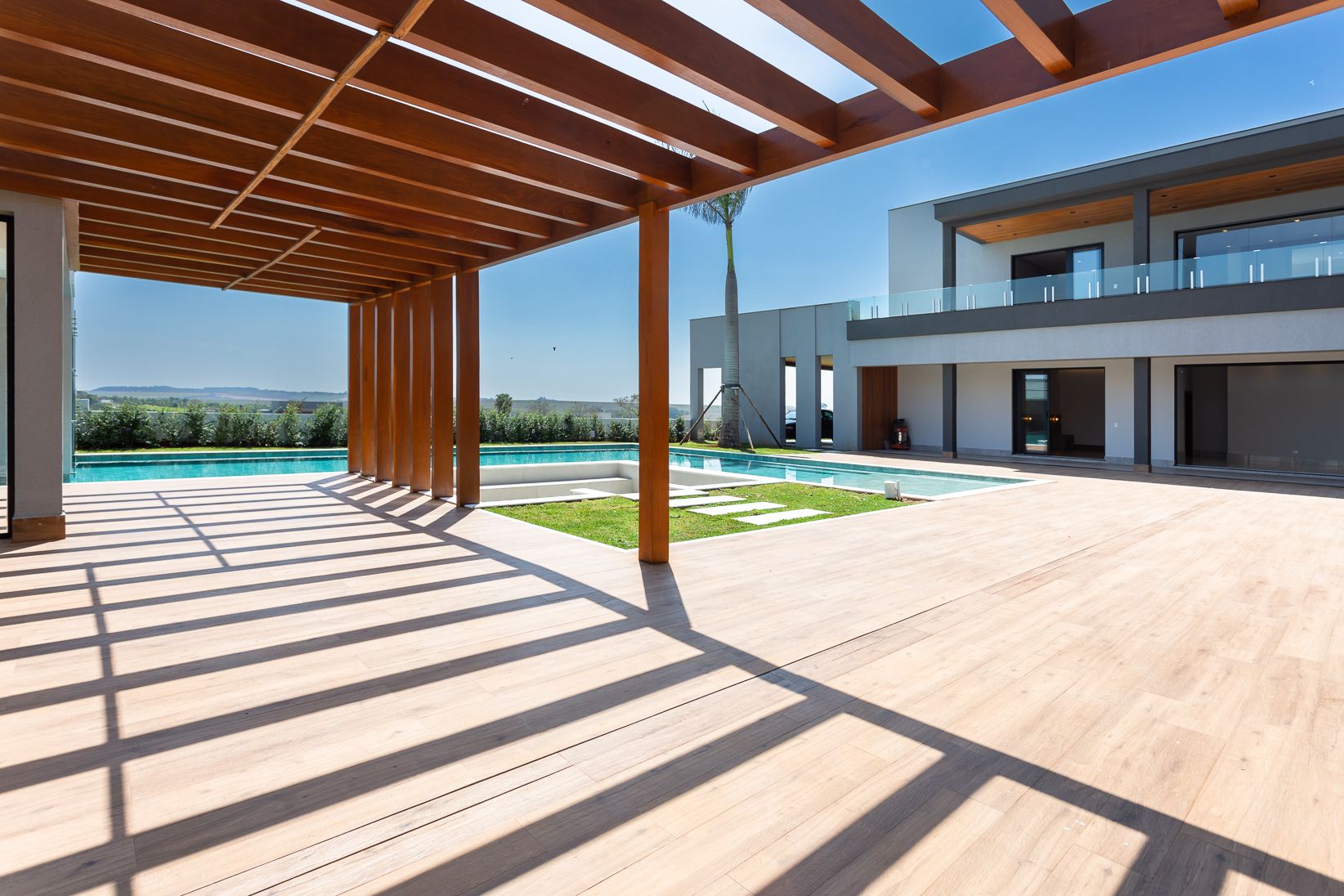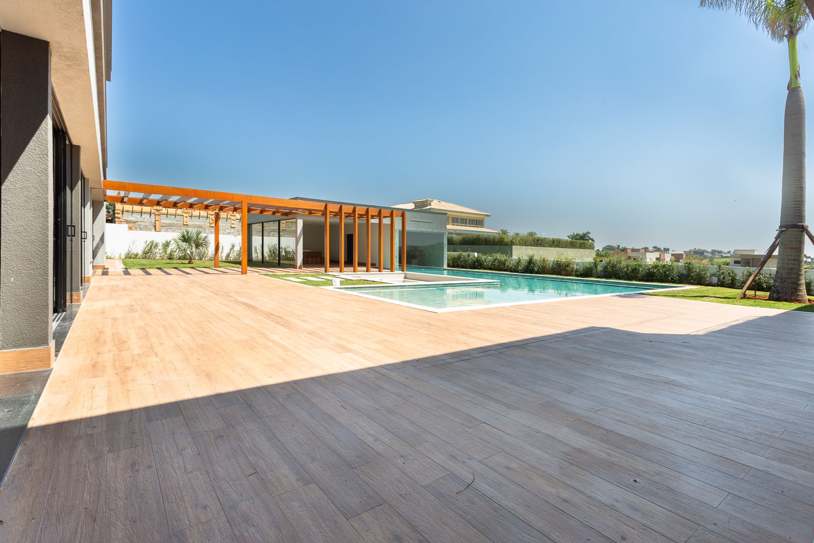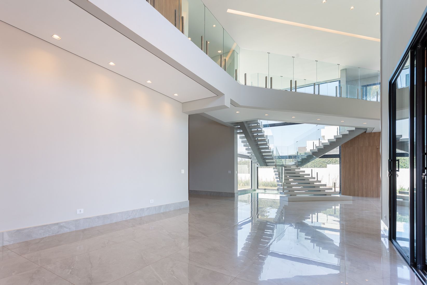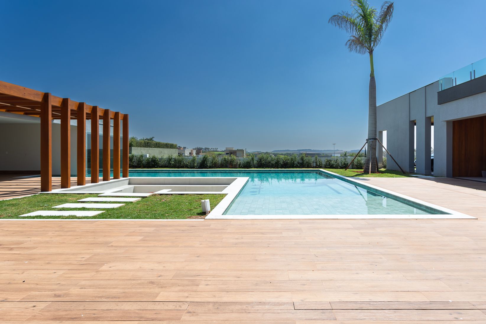 Em um lote de 2.000 m² no Residencial Fazenda Alvorada (Porto Feliz/SP), esta residência de 1.400 m² privilegia integração, pé-direito duplo e luz natural. O living para 2 ambientes se abre para a varanda com vista panorâmica, conectando a área social ao lazer. A ala íntima reúne 5 suítes (sendo master com closet), garantindo conforto e privacidade. Para receber bem, a casa oferece home cinema com automação de som, cozinha planejada e adega. No exterior, o espaço gourmet com churrasqueira atende ao jardim, à piscina, sauna e jacuzzi — um conjunto perfeito para fins de semana em família e amigos. Garagem para 6 carros.