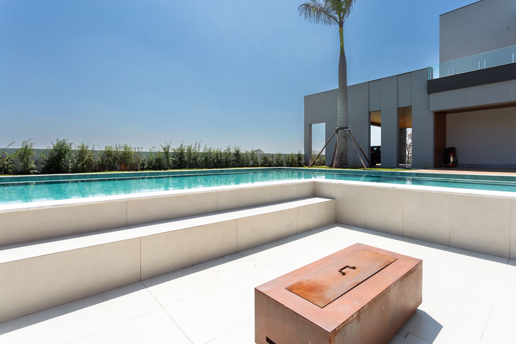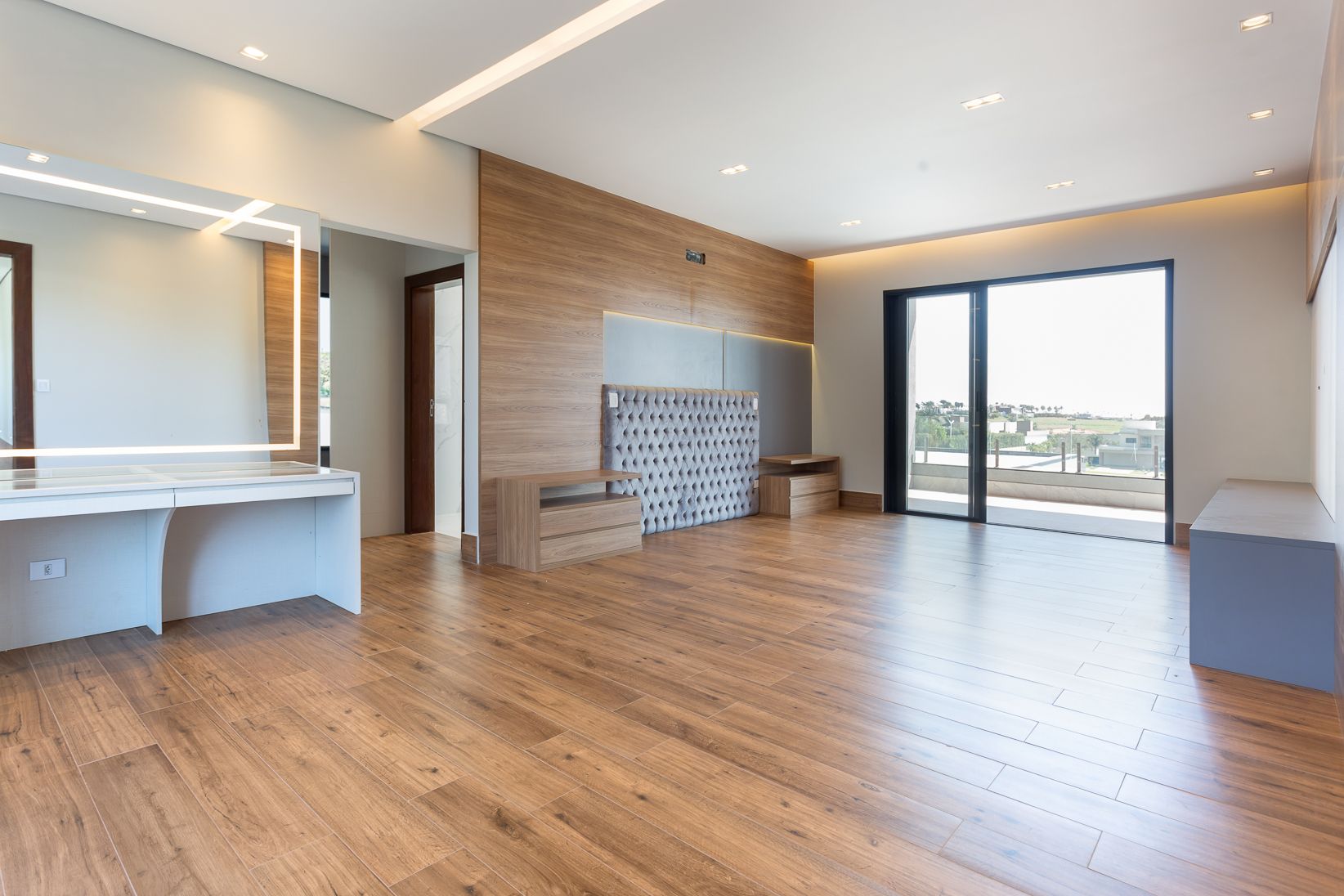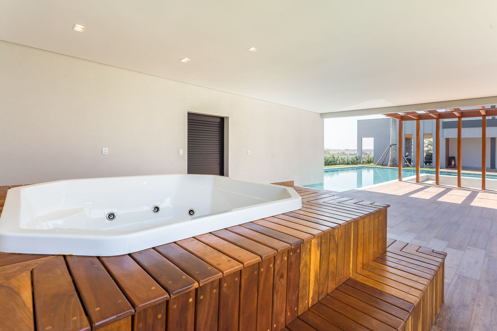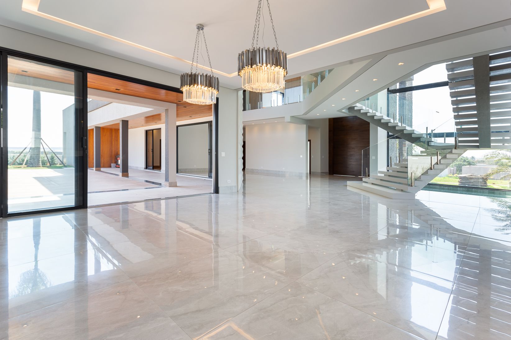 Em um lote de 2.000 m² no Residencial Fazenda Alvorada (Porto Feliz/SP), esta residência de 1.400 m² privilegia integração, pé-direito duplo e luz natural. O living para 2 ambientes se abre para a varanda com vista panorâmica, conectando a área social ao lazer. A ala íntima reúne 5 suítes (sendo master com closet), garantindo conforto e privacidade. Para receber bem, a casa oferece home cinema com automação de som, cozinha planejada e adega. No exterior, o espaço gourmet com churrasqueira atende ao jardim, à piscina, sauna e jacuzzi — um conjunto perfeito para fins de semana em família e amigos. Garagem para 6 carros.