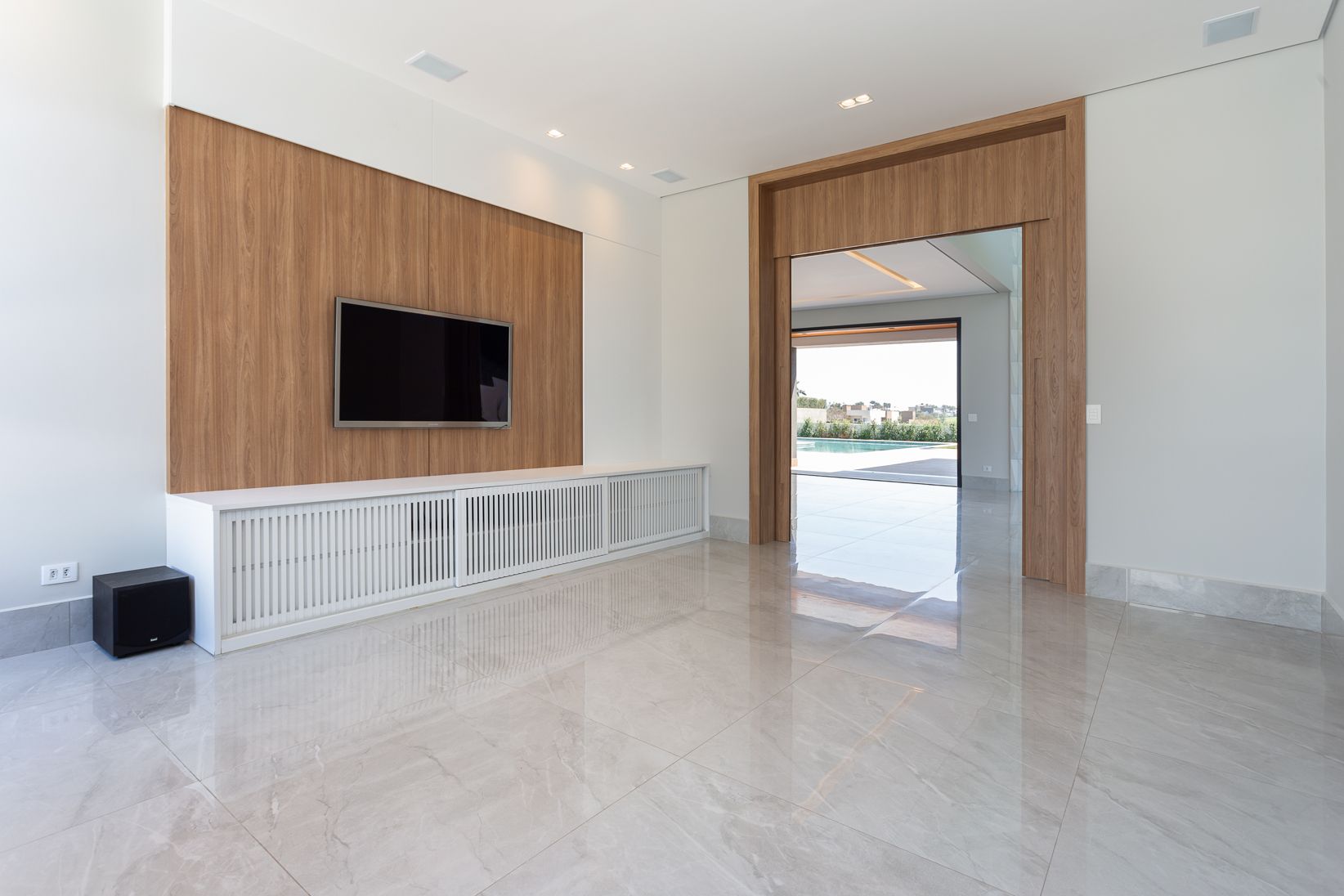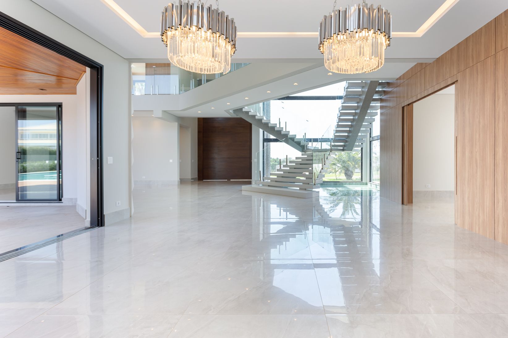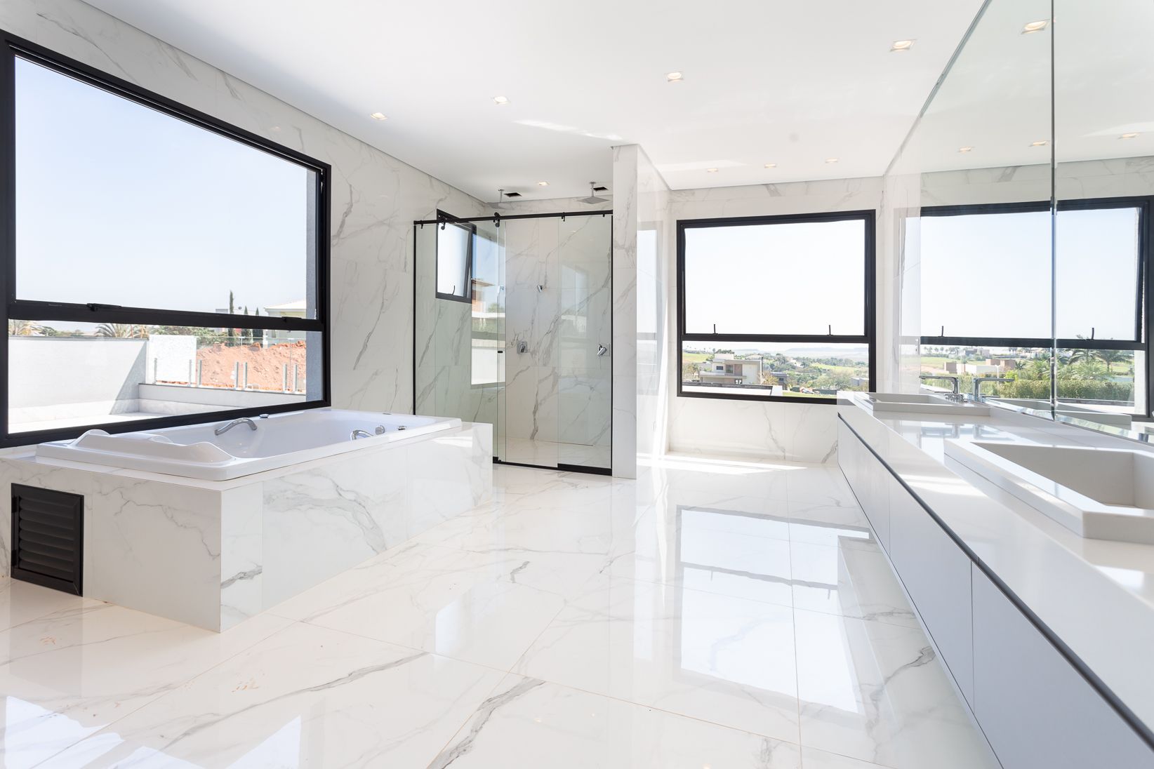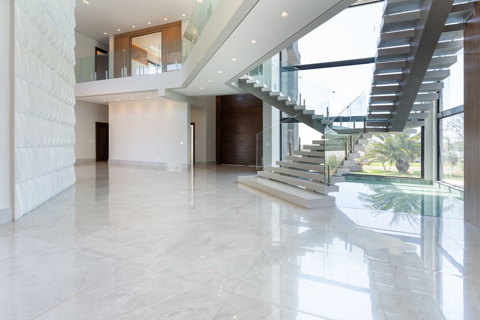 Em um lote de 2.000 m² no Residencial Fazenda Alvorada (Porto Feliz/SP), esta residência de 1.400 m² privilegia integração, pé-direito duplo e luz natural. O living para 2 ambientes se abre para a varanda com vista panorâmica, conectando a área social ao lazer. A ala íntima reúne 5 suítes (sendo master com closet), garantindo conforto e privacidade. Para receber bem, a casa oferece home cinema com automação de som, cozinha planejada e adega. No exterior, o espaço gourmet com churrasqueira atende ao jardim, à piscina, sauna e jacuzzi — um conjunto perfeito para fins de semana em família e amigos. Garagem para 6 carros.