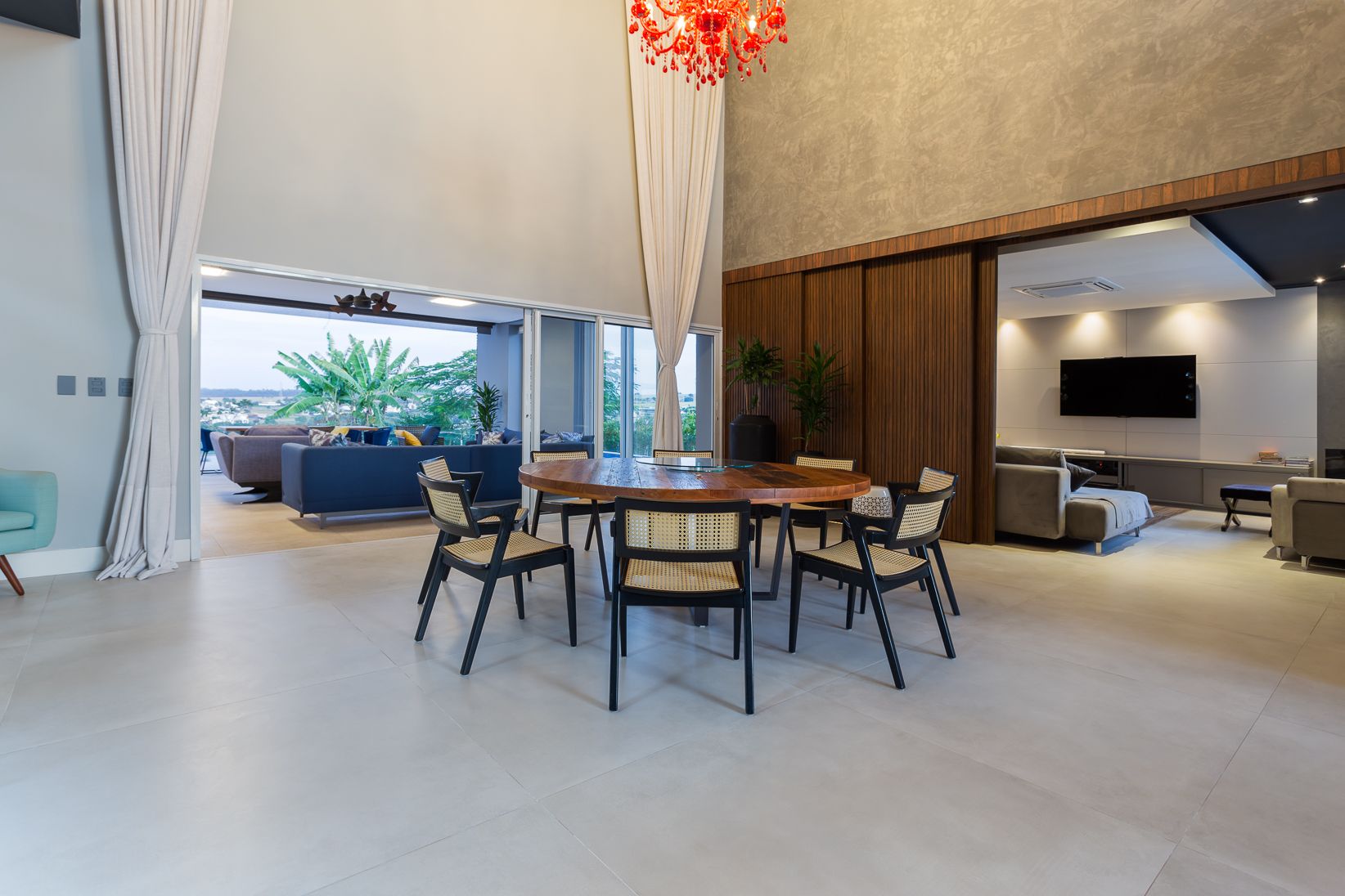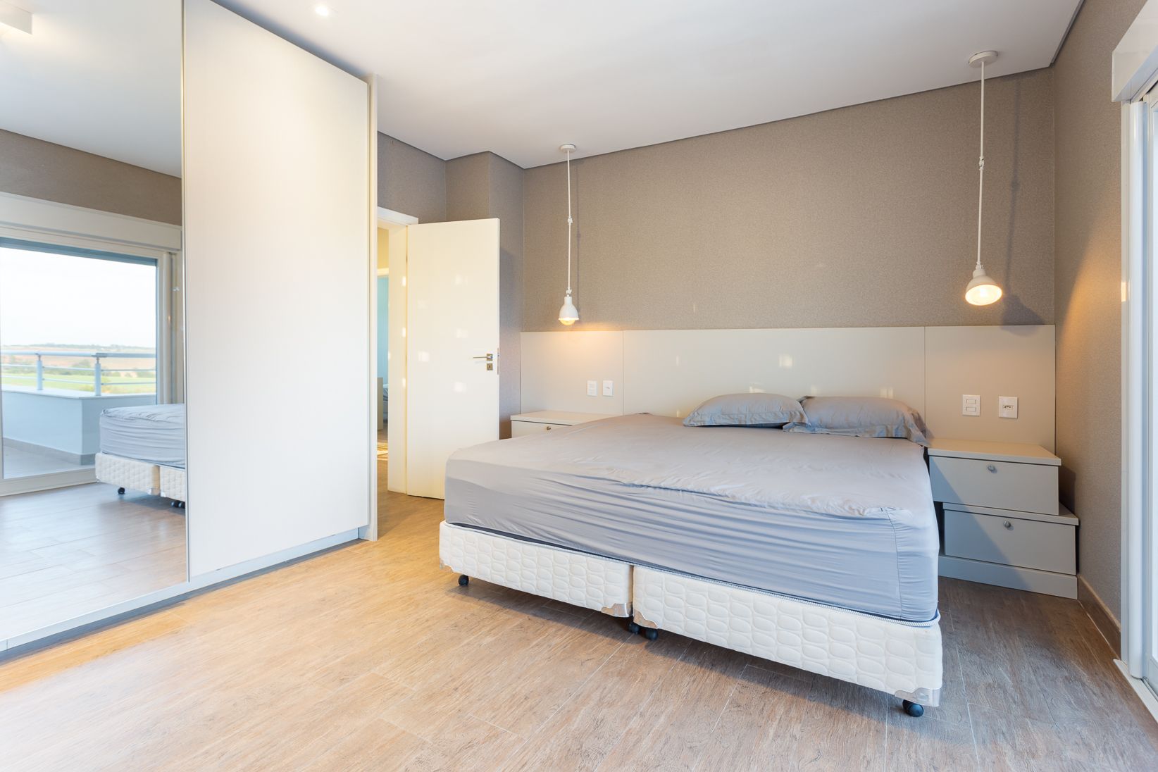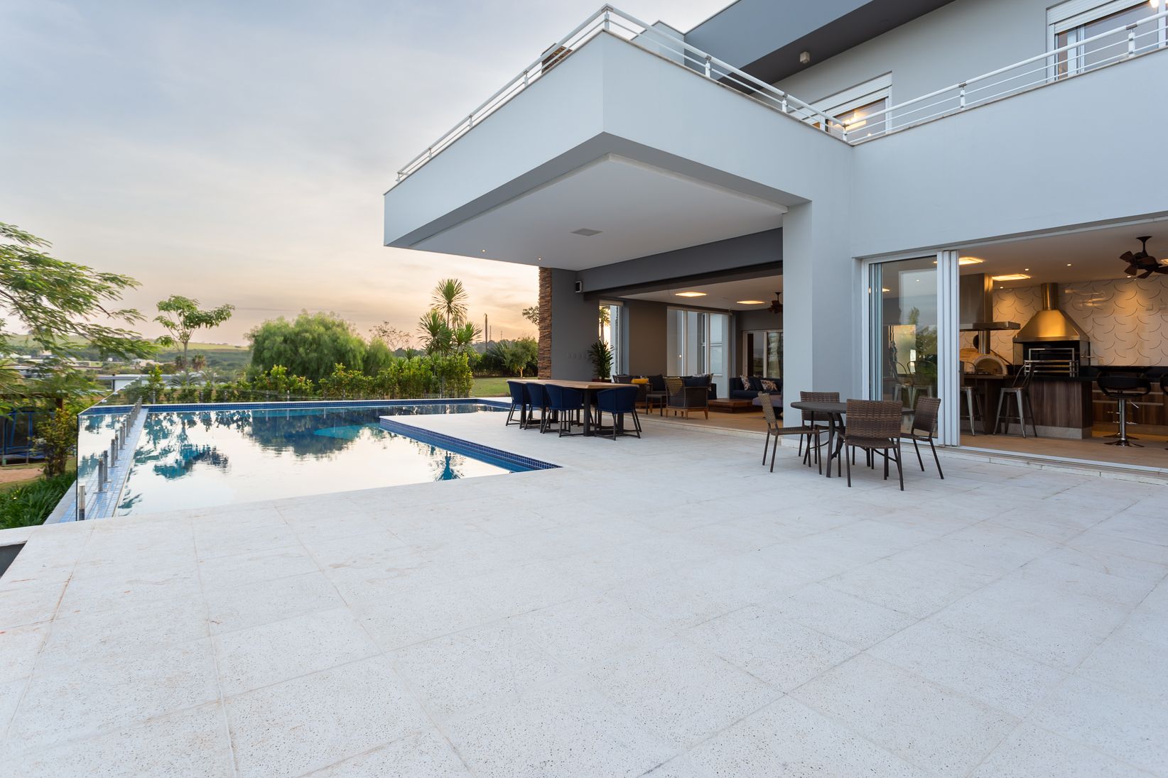 Em um lote de 2.000 m², esta residência de 667 m² no Residencial Fazenda Alvorada combina sala de jantar, home theater e cozinha voltadas ao lazer externo. A área social se estende para a varanda gourmet com churrasqueira, conectando-se ao jardim e à piscina de borda infinita com prainha — cenário perfeito para finais de semana com família e amigos. O lazer inclui ainda hidromassagem coberta, salão de jogos e playground. O programa íntimo reúne 5 suítes, e há opção de expansão do terreno em +1.000 m² (raro no condomínio). 6 vagas. Venda: R$ 7.500.000.  O condomínio oferece um ecossistema de campo com cinco lagos naturais, portaria e vigilância 24h, quadras (tênis, beach tênis, squash, poliesportiva), salão de festas, spa/sauna, market e restaurante — estrutura completa para quem busca qualidade de vida a 1h de São Paulo. Condomínio: R$ 2.316/mês • IPTU: R$ 635 (informados no anúncio).