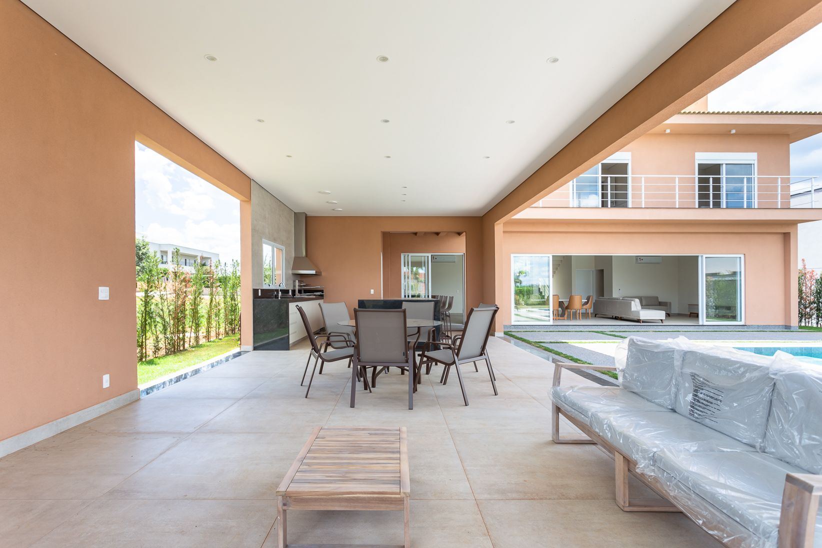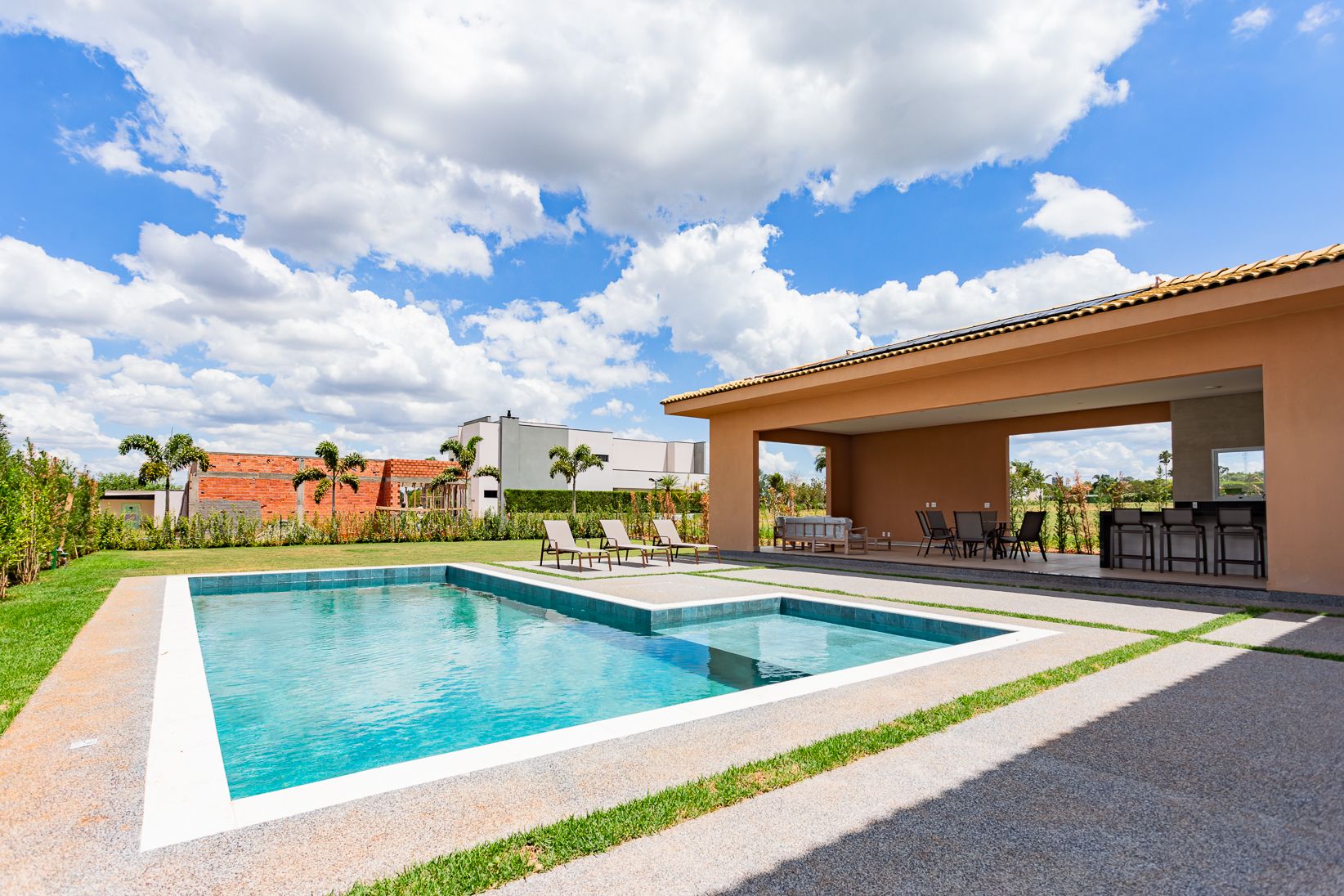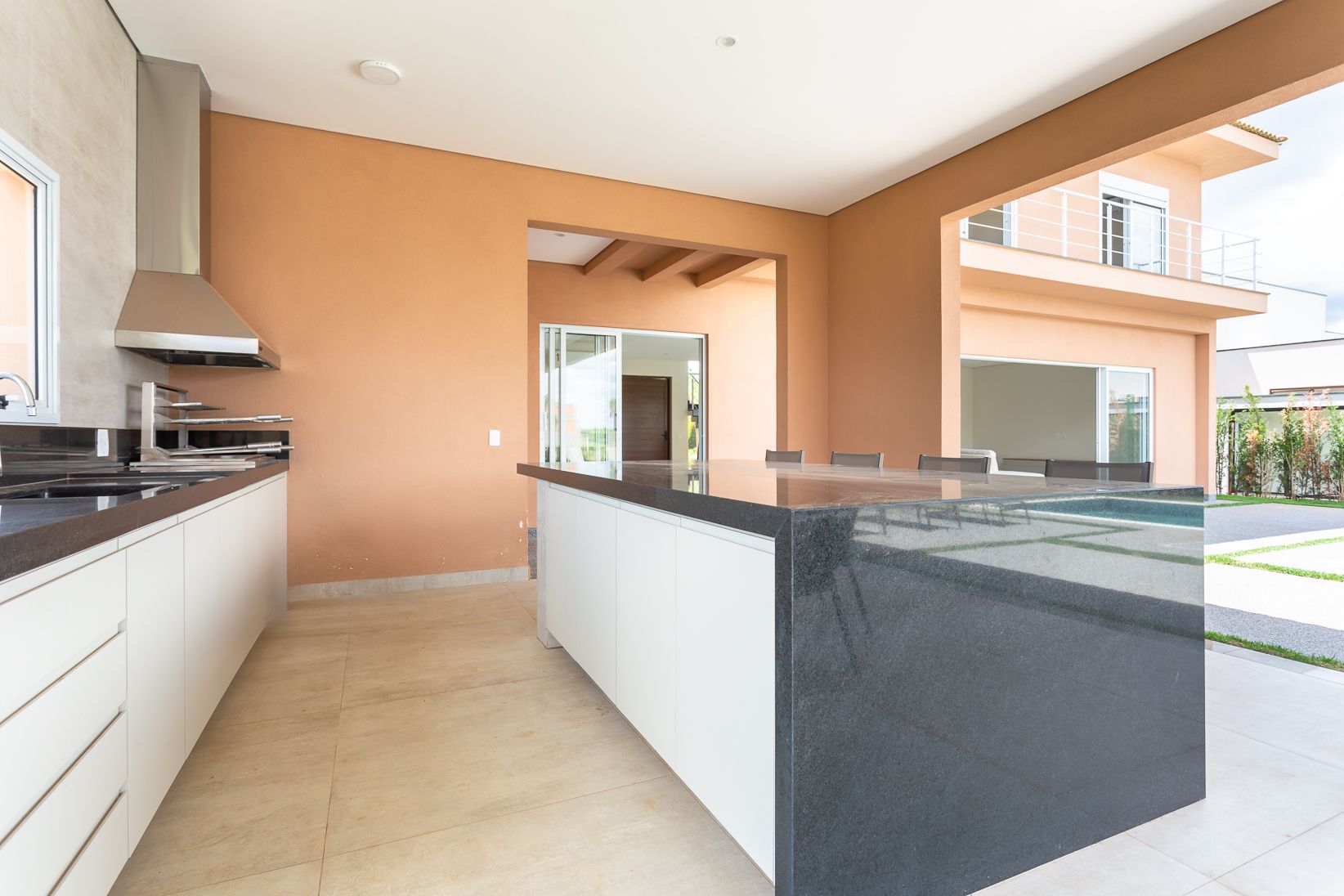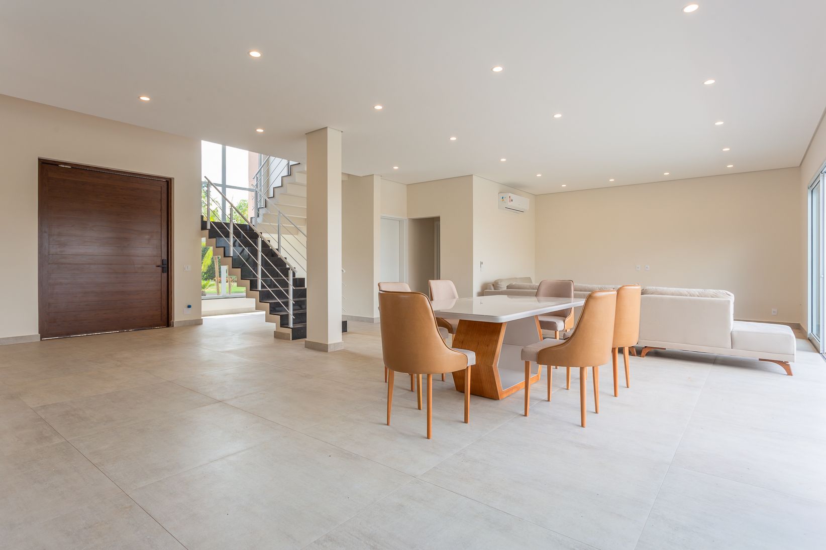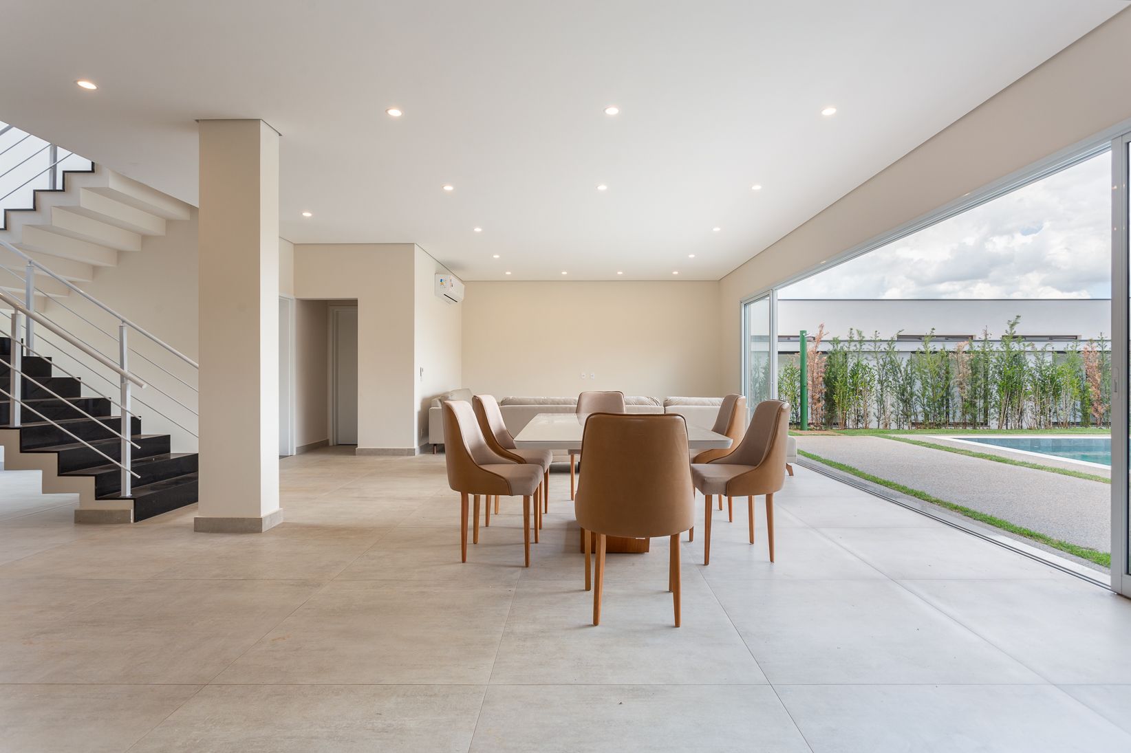 No Residencial Fazenda Alvorada (Porto Feliz/SP), esta casa em lote de 1.000 m² oferece 448,85 m² com planta integrada e 5 suítes climatizadas — a máster com closet e terraço. O living conecta estar + jantar + cozinha em conceito aberto, privilegiando convivência e luz natural. Para receber, a área externa traz espaço gourmet completo com churrasqueira e piscina aquecida, garantindo uso em qualquer estação. Há ainda escritório, facilmente reversível para 6ª suíte, conforme a necessidade da família. Venda: R$ 5.500.000. O condomínio reúne um clube de campo completo, com lagos, quadras (tênis, beach tênis, squash e poliesportiva), salão de festas, spa/sauna, market, restaurante, além de portaria e vigilância 24h — qualidade de vida a ~1h de São Paulo. (Valores de condomínio/IPTU não informados no anúncio.)