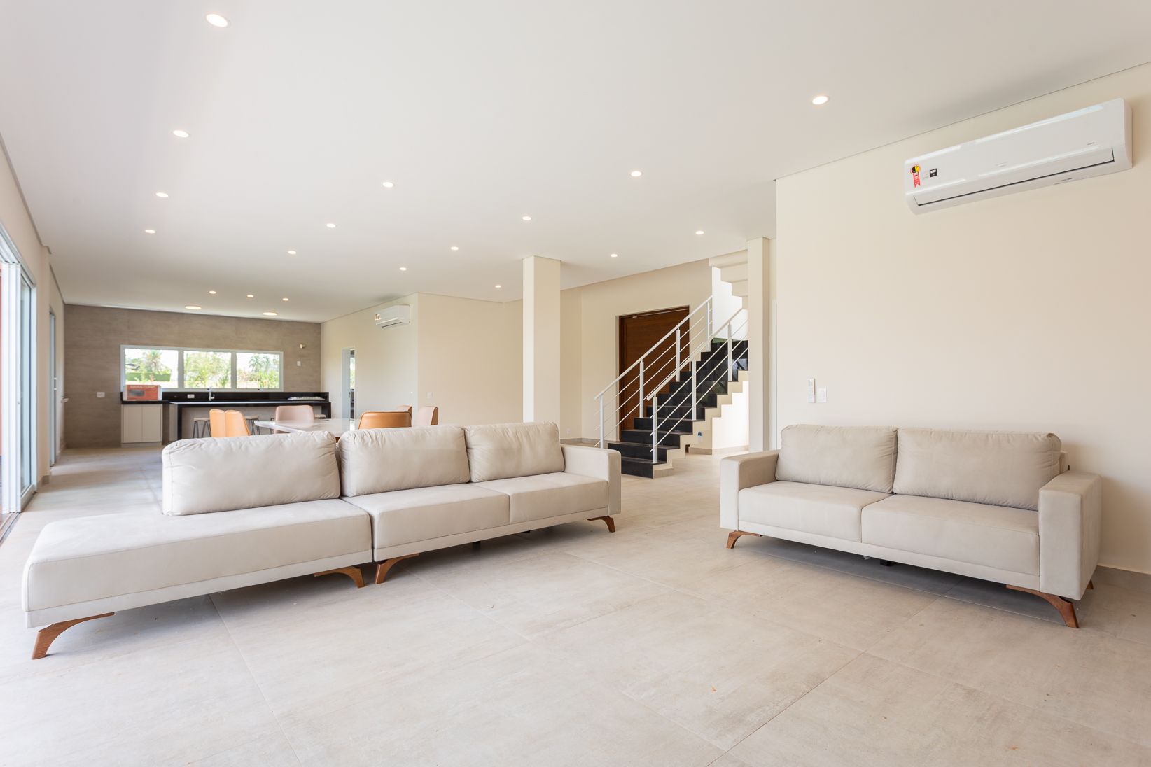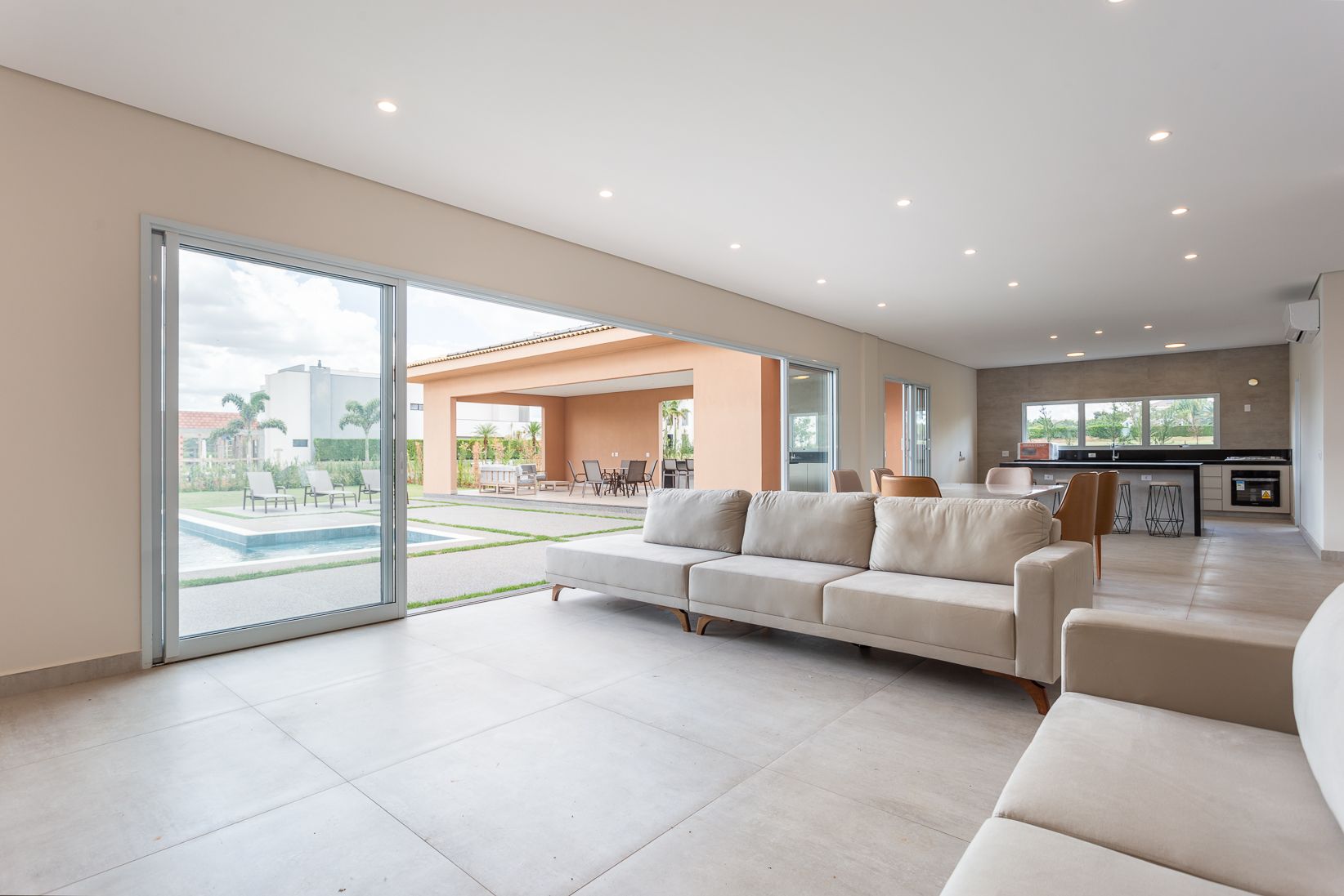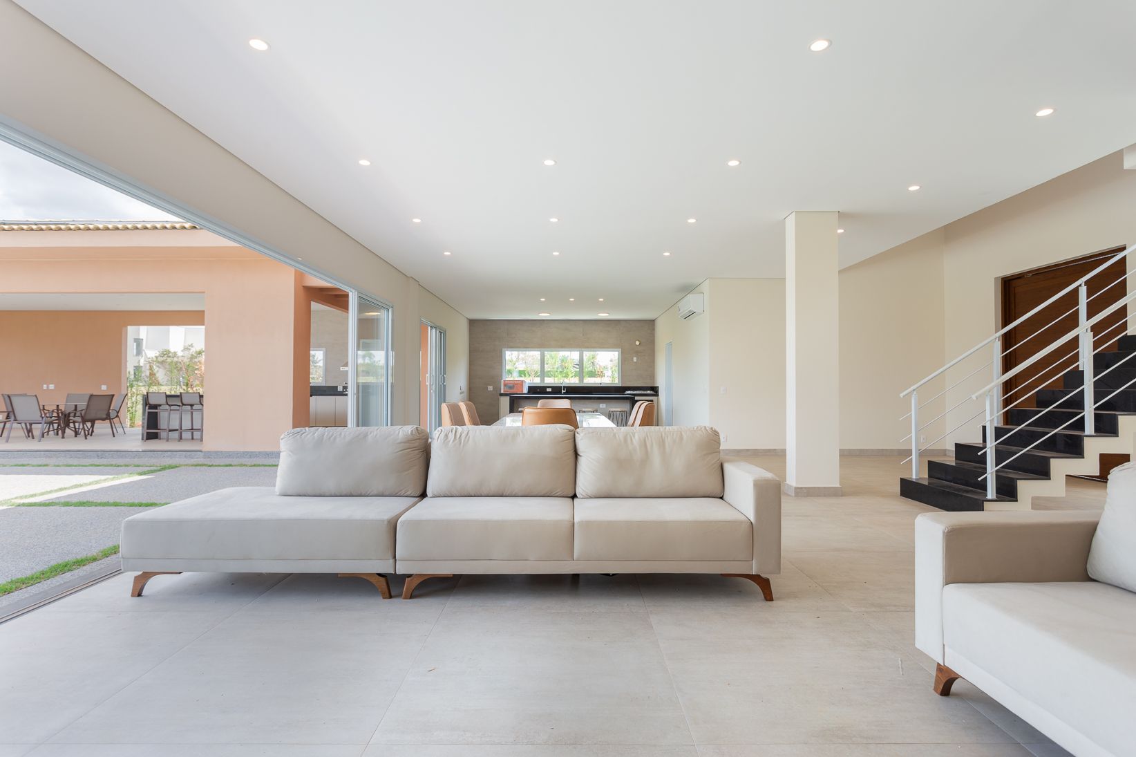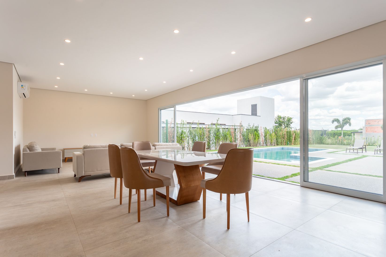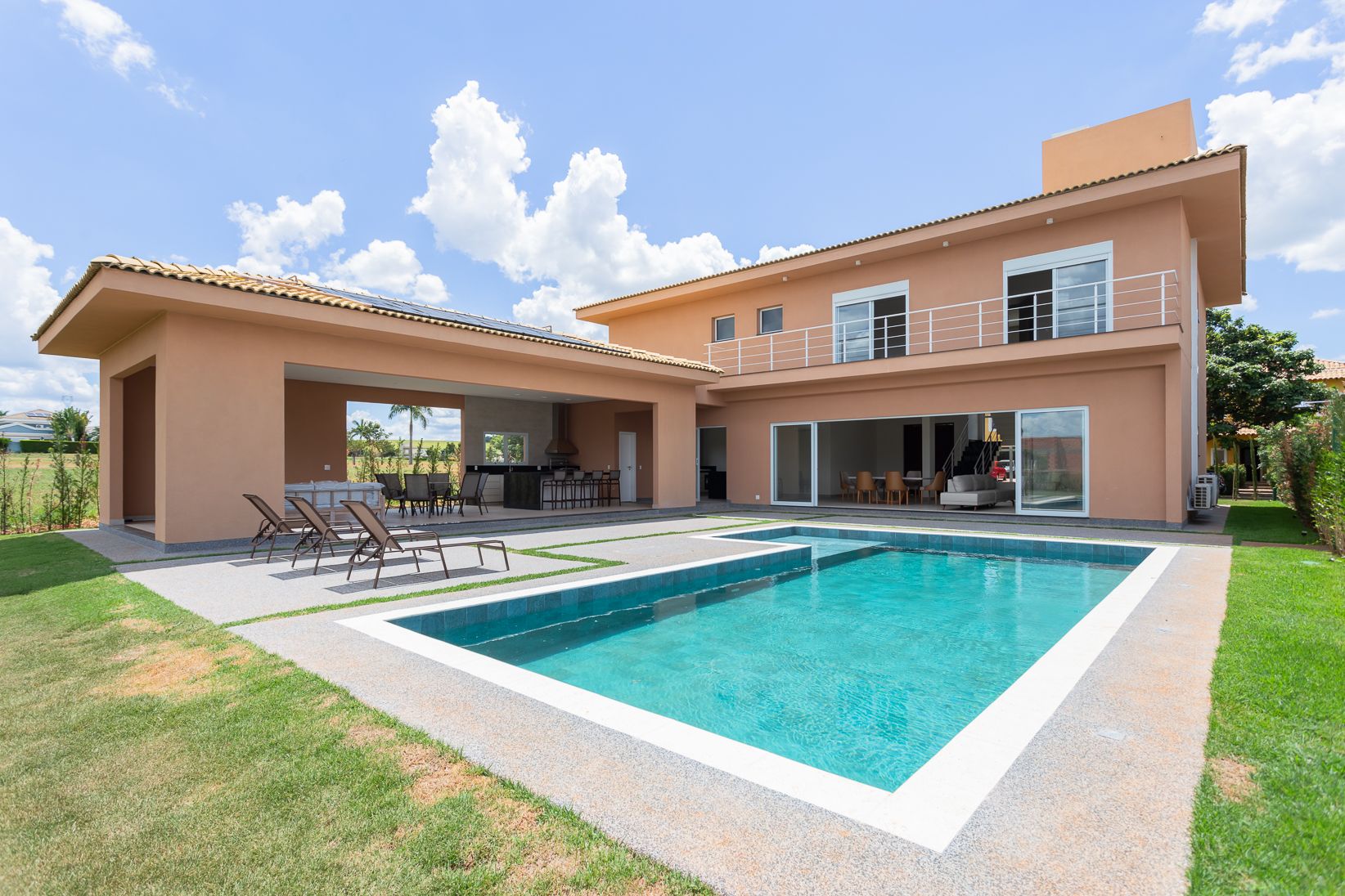 No Residencial Fazenda Alvorada (Porto Feliz/SP), esta casa em lote de 1.000 m² oferece 448,85 m² com planta integrada e 5 suítes climatizadas — a máster com closet e terraço. O living conecta estar + jantar + cozinha em conceito aberto, privilegiando convivência e luz natural. Para receber, a área externa traz espaço gourmet completo com churrasqueira e piscina aquecida, garantindo uso em qualquer estação. Há ainda escritório, facilmente reversível para 6ª suíte, conforme a necessidade da família. Venda: R$ 5.500.000. O condomínio reúne um clube de campo completo, com lagos, quadras (tênis, beach tênis, squash e poliesportiva), salão de festas, spa/sauna, market, restaurante, além de portaria e vigilância 24h — qualidade de vida a ~1h de São Paulo. (Valores de condomínio/IPTU não informados no anúncio.)