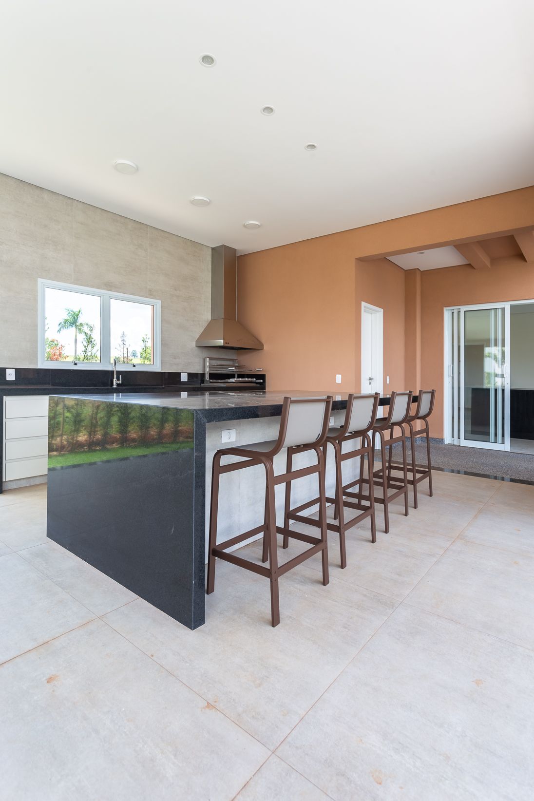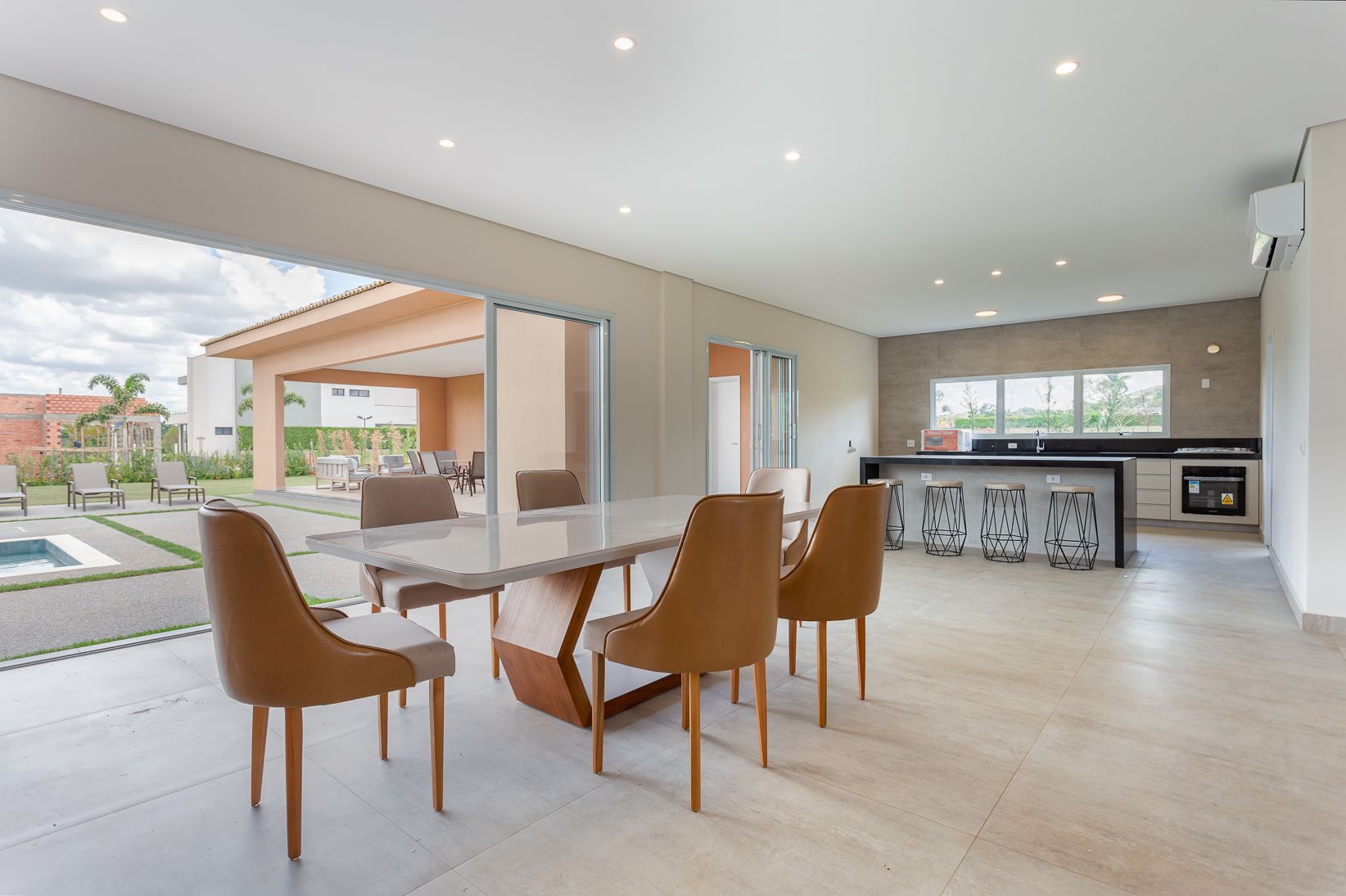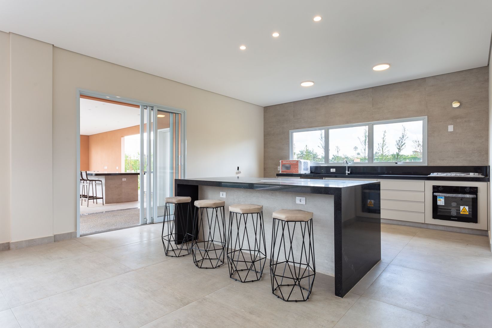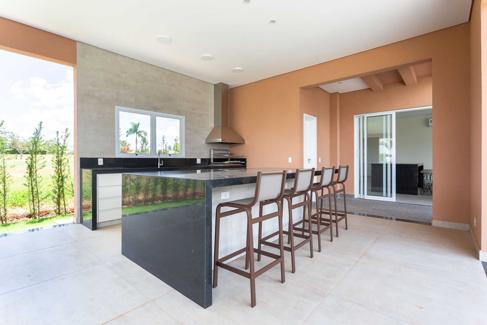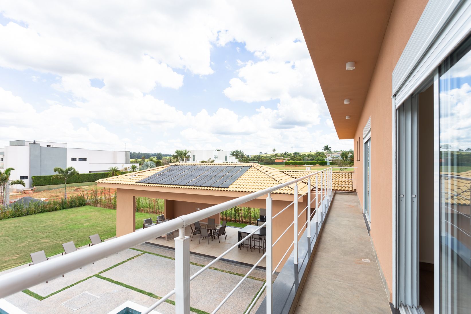 No Residencial Fazenda Alvorada (Porto Feliz/SP), esta casa em lote de 1.000 m² oferece 448,85 m² com planta integrada e 5 suítes climatizadas — a máster com closet e terraço. O living conecta estar + jantar + cozinha em conceito aberto, privilegiando convivência e luz natural. Para receber, a área externa traz espaço gourmet completo com churrasqueira e piscina aquecida, garantindo uso em qualquer estação. Há ainda escritório, facilmente reversível para 6ª suíte, conforme a necessidade da família. Venda: R$ 5.500.000. O condomínio reúne um clube de campo completo, com lagos, quadras (tênis, beach tênis, squash e poliesportiva), salão de festas, spa/sauna, market, restaurante, além de portaria e vigilância 24h — qualidade de vida a ~1h de São Paulo. (Valores de condomínio/IPTU não informados no anúncio.)