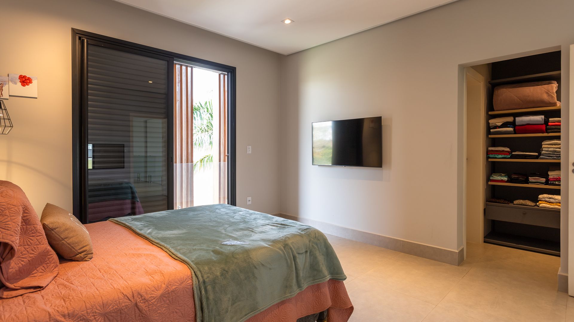Em lote plano de 1.000 m², esta casa da Fazenda Alvorada oferece 560 m² com salas integradas e pé-direito alto, priorizando iluminação natural e convivência. O pavimento íntimo reúne 5 suítes (todas com varanda e vista para a natureza). No social, o estar/jantar se conecta ao jardim com irrigação automatizada e à piscina aquecida; por dentro, destaque para a adega climatizada e acabamentos com “detalhes de decoração” em todos os ambientes. 6 vagas. Venda: R$ 5.190.000. Condomínio com infraestrutura de campo: portaria e vigilância 24h, lagos, quadras (tênis, beach tênis, poliesportiva, squash, bocha), salão de festas, spa/sauna, market, restaurante e espaço gourmet. Condomínio: R$ 1.713/mês • IPTU: R$ 320. Localização: Rod. Castello Branco — Residencial Fazenda Alvorada, Porto Feliz (SP).