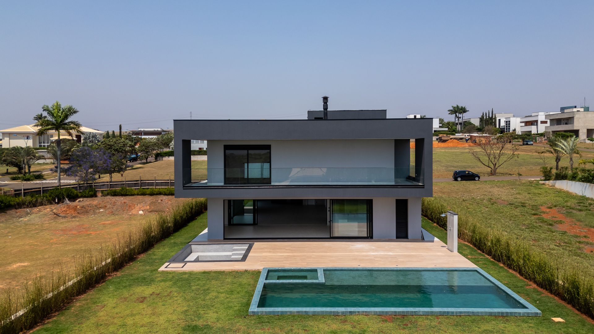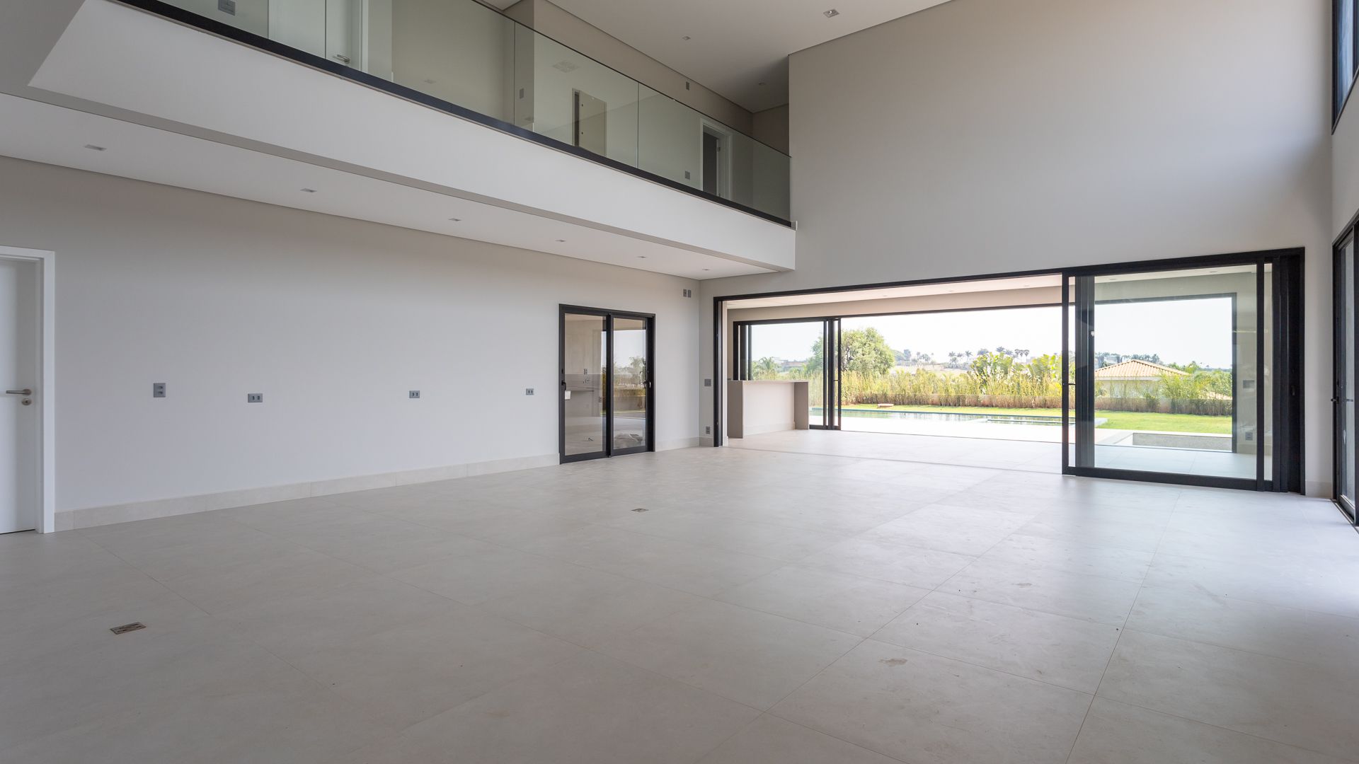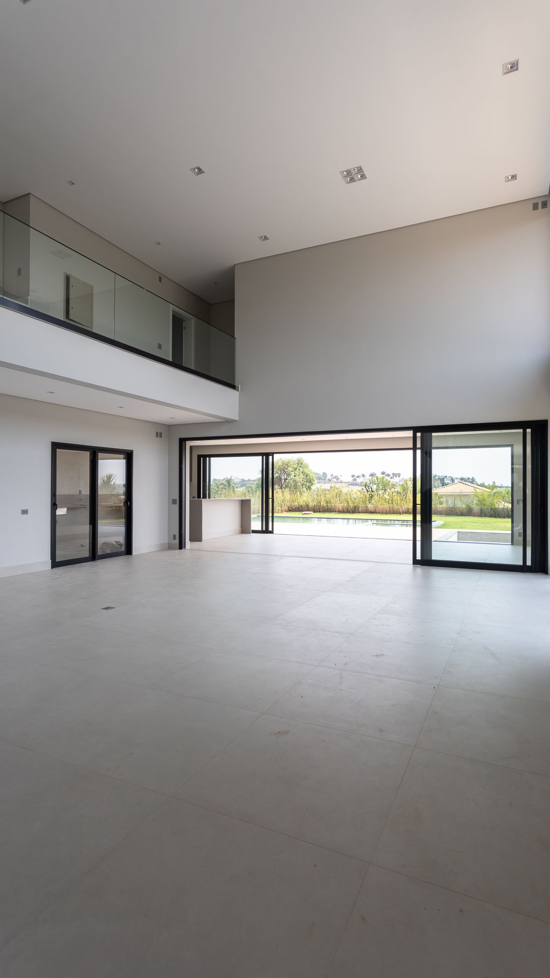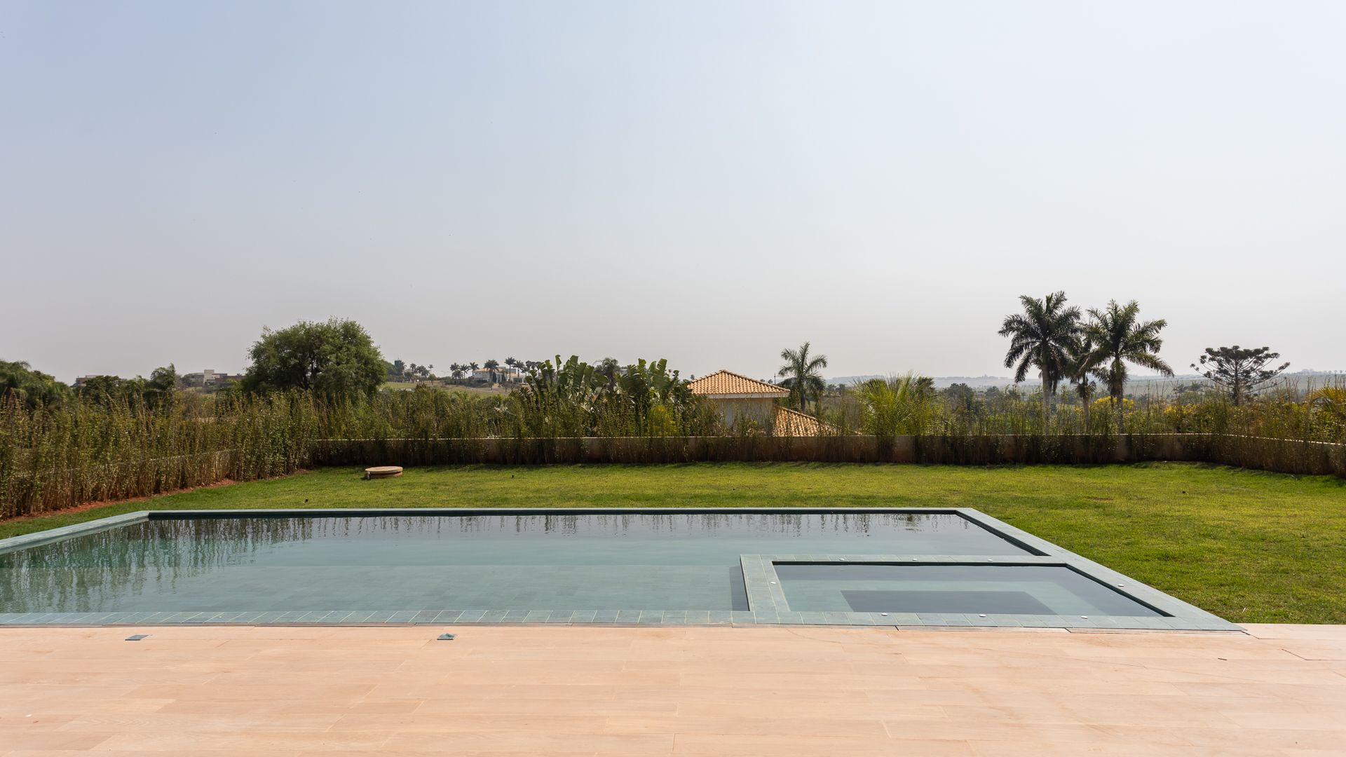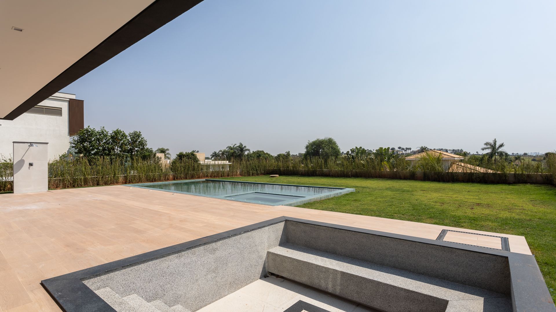 suítes — sendo a máster com closet e varanda. O eixo social integra estar, jantar, varanda e terraço gourmet, criando um percurso contínuo até a área externa com deck, praça de fogo e piscina. Um desenho pensado para iluminar os ambientes, valorizar a convivência e enquadrar o verde da Fazenda Alvorada. Venda: R$ 6.950.000. No condomínio, a rotina de campo fica completa com cinco lagos naturais, quadras (tênis, beach tênis, poliesportiva, squash, bocha), salão de festas, spa/sauna, market/restaurante e portaria/vigilância 24h — natureza e serviços a ~1h de São Paulo. Condomínio: R$ 1.713/mês • IPTU: R$ 320