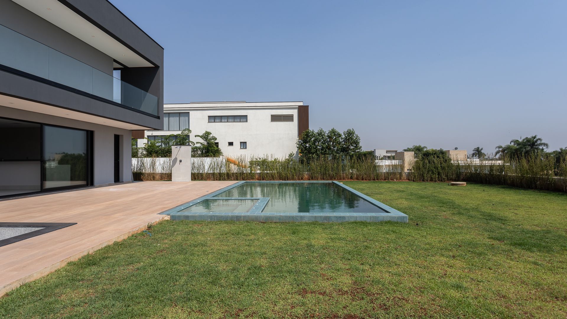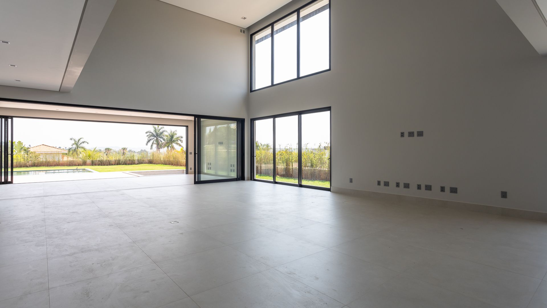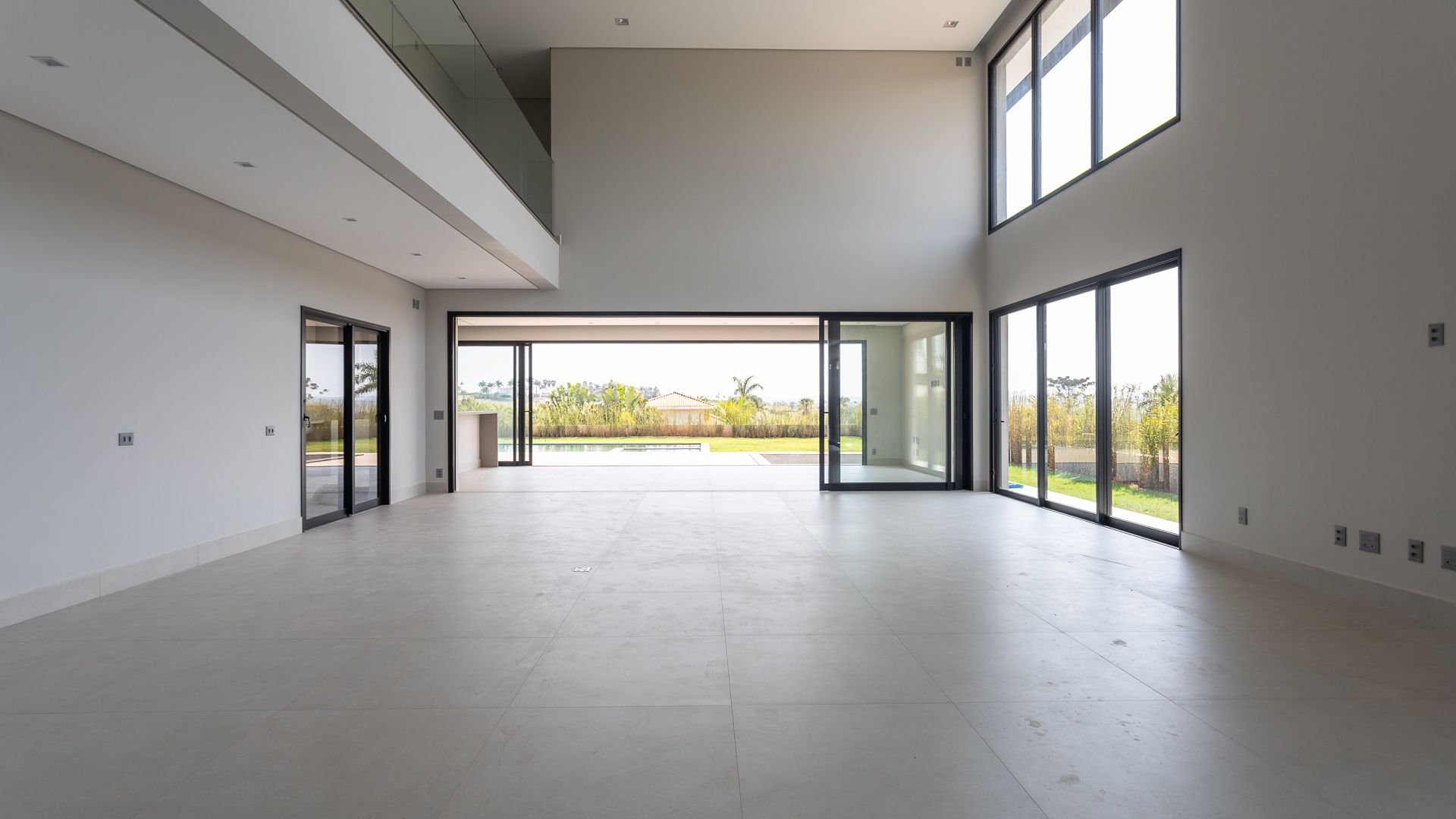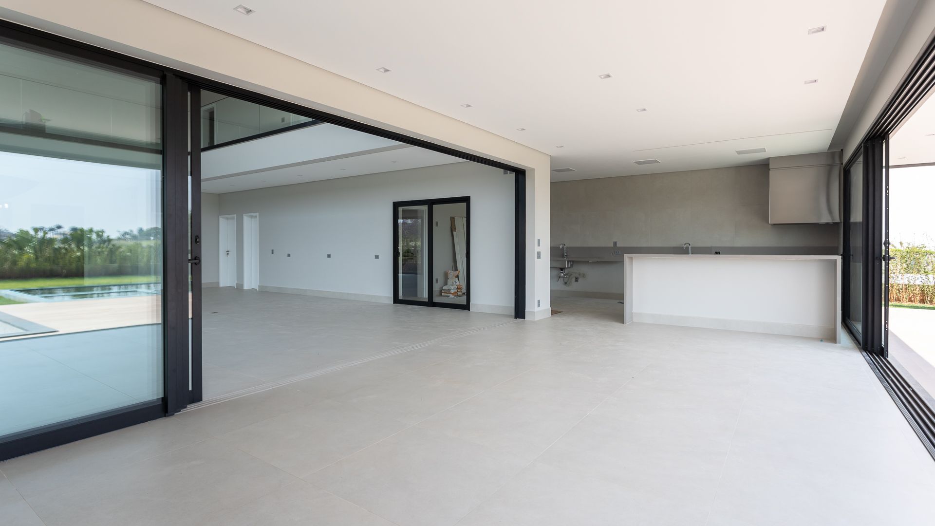 suítes — sendo a máster com closet e varanda. O eixo social integra estar, jantar, varanda e terraço gourmet, criando um percurso contínuo até a área externa com deck, praça de fogo e piscina. Um desenho pensado para iluminar os ambientes, valorizar a convivência e enquadrar o verde da Fazenda Alvorada. Venda: R$ 6.950.000. No condomínio, a rotina de campo fica completa com cinco lagos naturais, quadras (tênis, beach tênis, poliesportiva, squash, bocha), salão de festas, spa/sauna, market/restaurante e portaria/vigilância 24h — natureza e serviços a ~1h de São Paulo. Condomínio: R$ 1.713/mês • IPTU: R$ 320