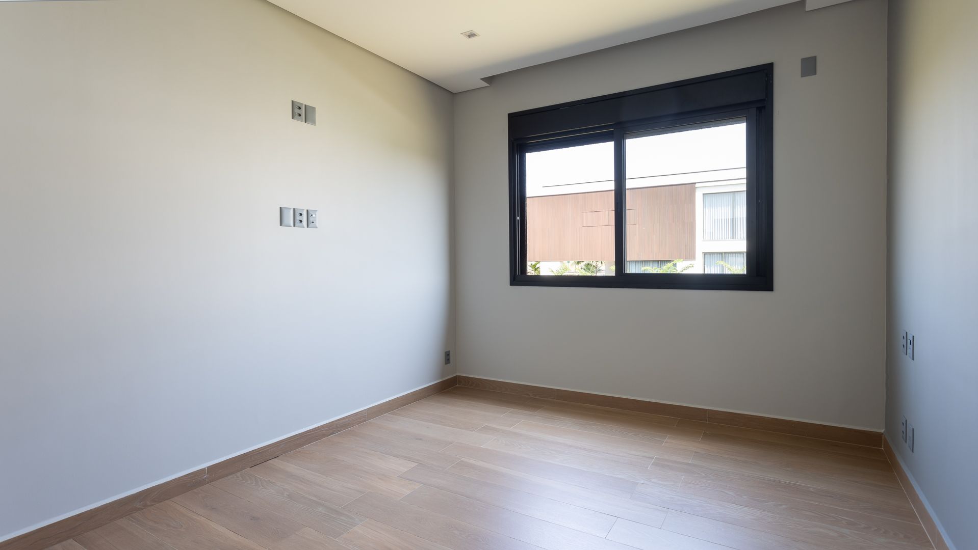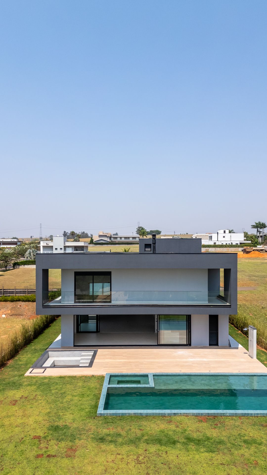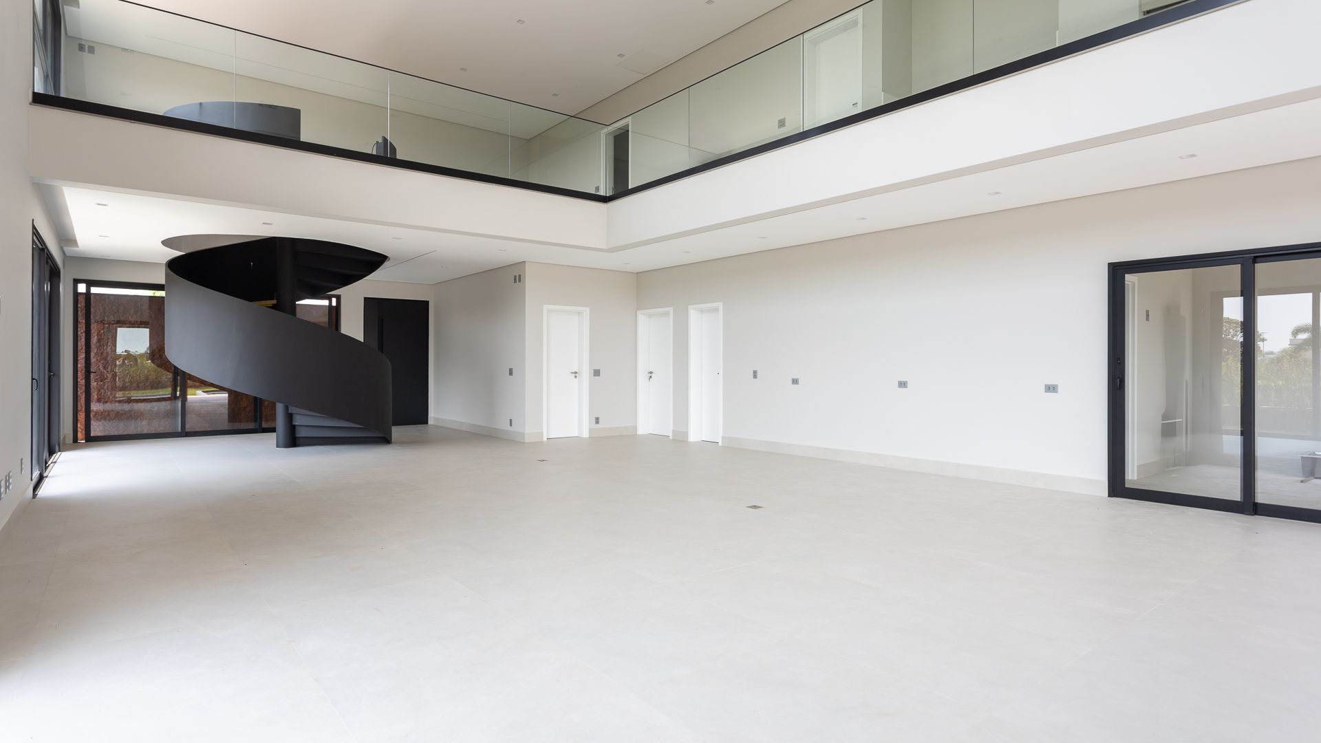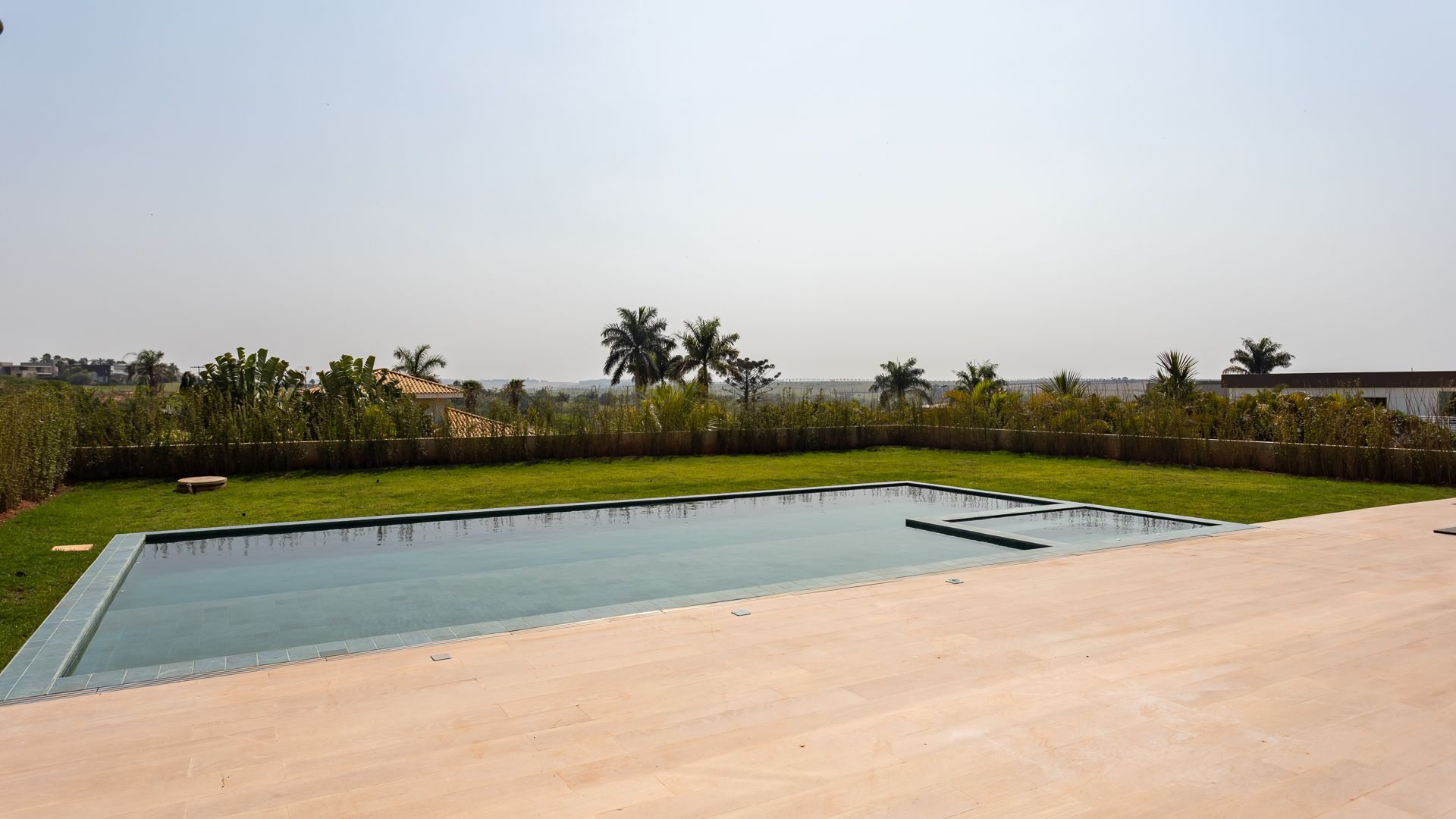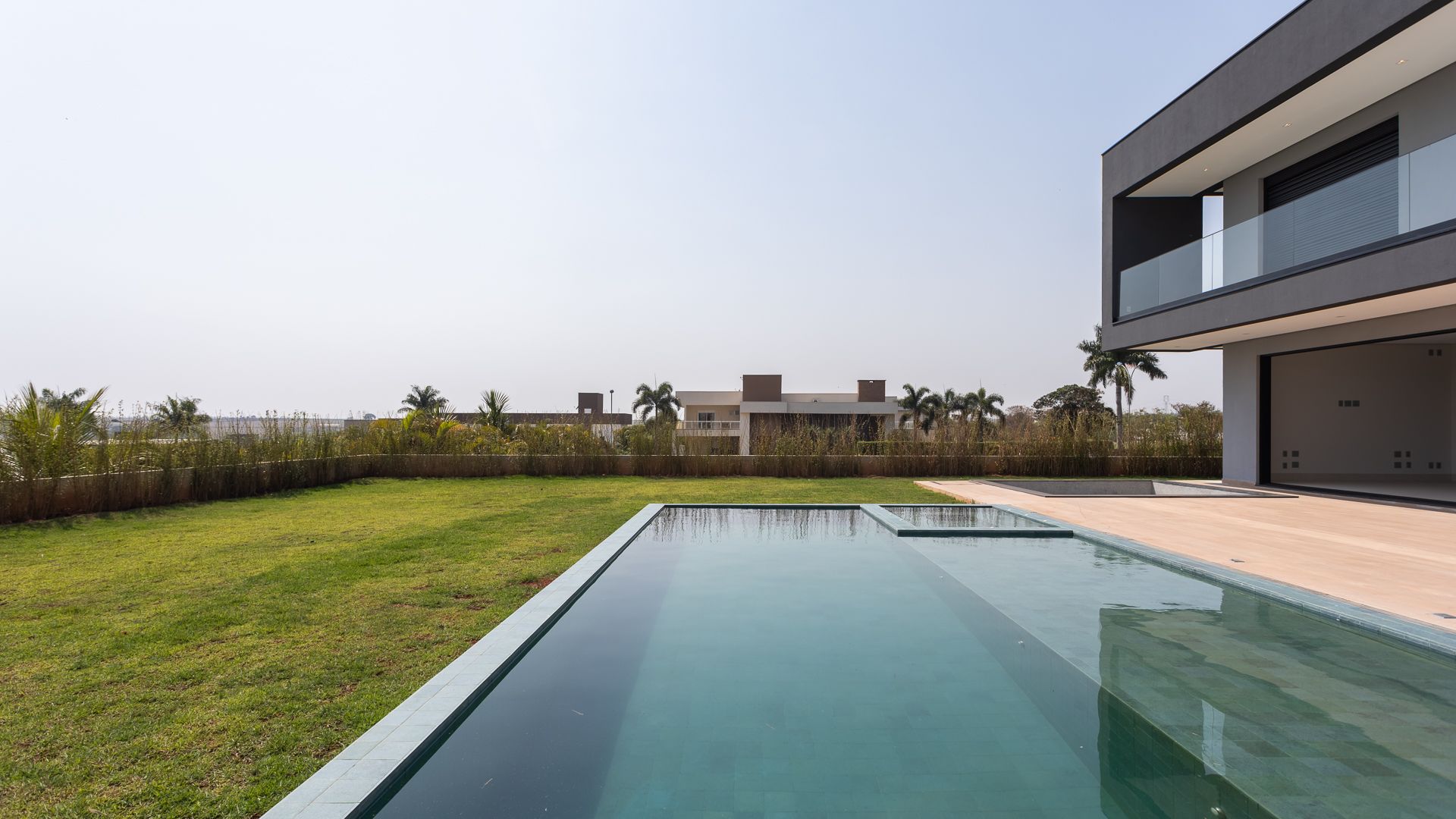 suítes — sendo a máster com closet e varanda. O eixo social integra estar, jantar, varanda e terraço gourmet, criando um percurso contínuo até a área externa com deck, praça de fogo e piscina. Um desenho pensado para iluminar os ambientes, valorizar a convivência e enquadrar o verde da Fazenda Alvorada. Venda: R$ 6.950.000. No condomínio, a rotina de campo fica completa com cinco lagos naturais, quadras (tênis, beach tênis, poliesportiva, squash, bocha), salão de festas, spa/sauna, market/restaurante e portaria/vigilância 24h — natureza e serviços a ~1h de São Paulo. Condomínio: R$ 1.713/mês • IPTU: R$ 320