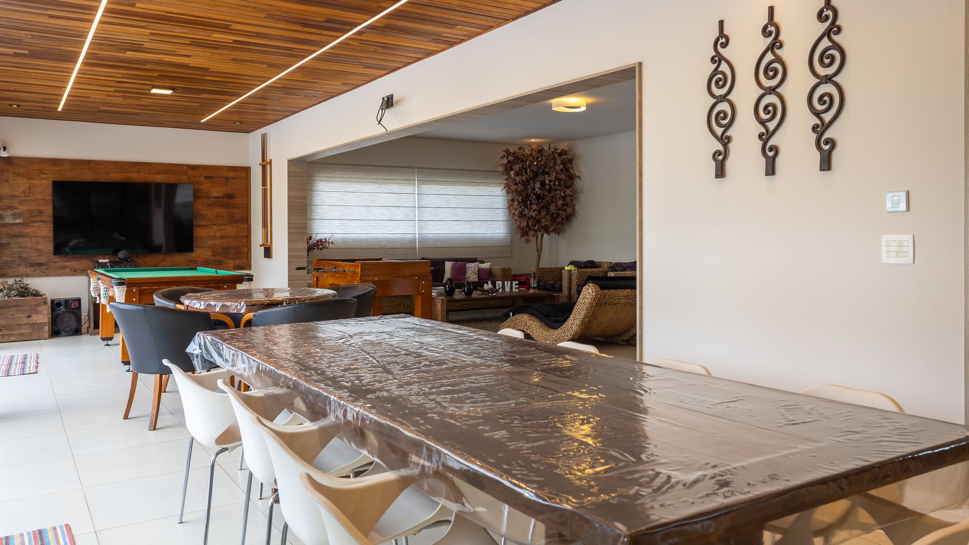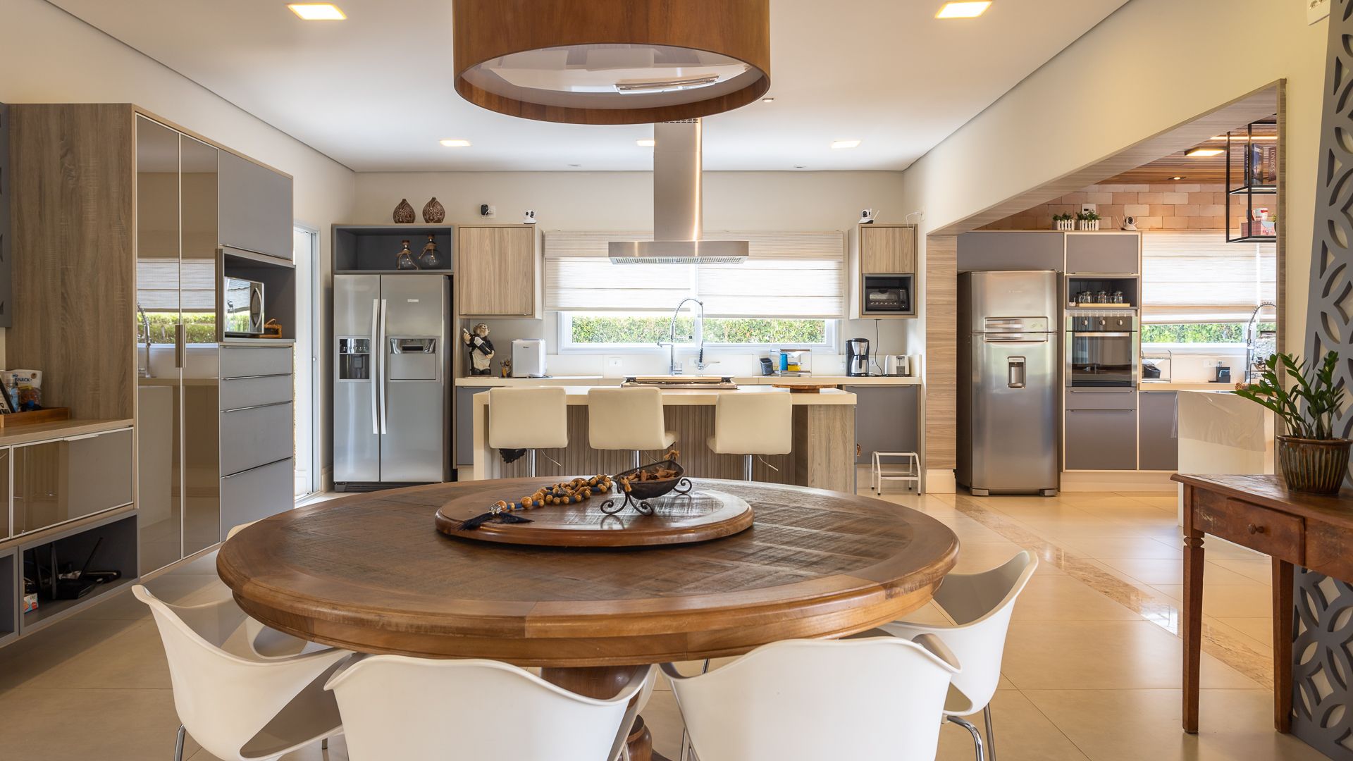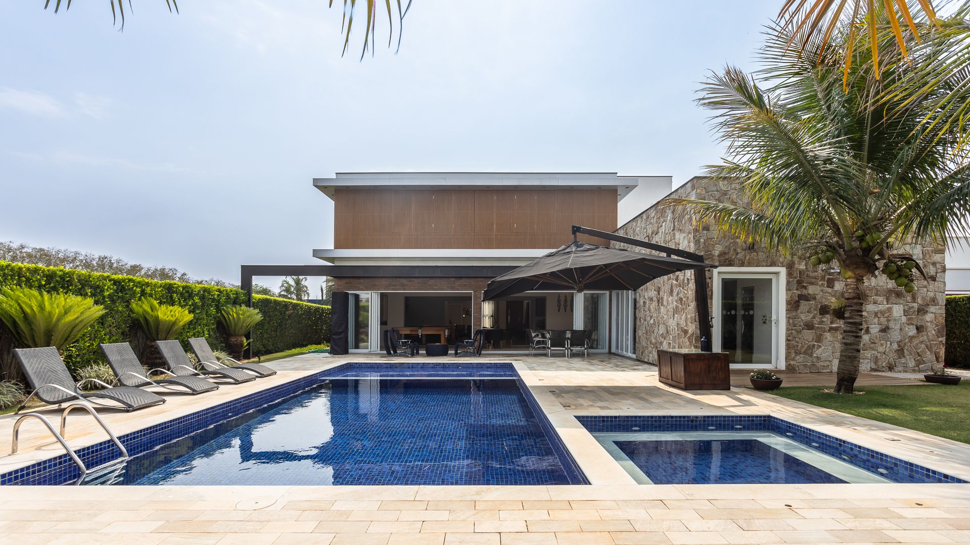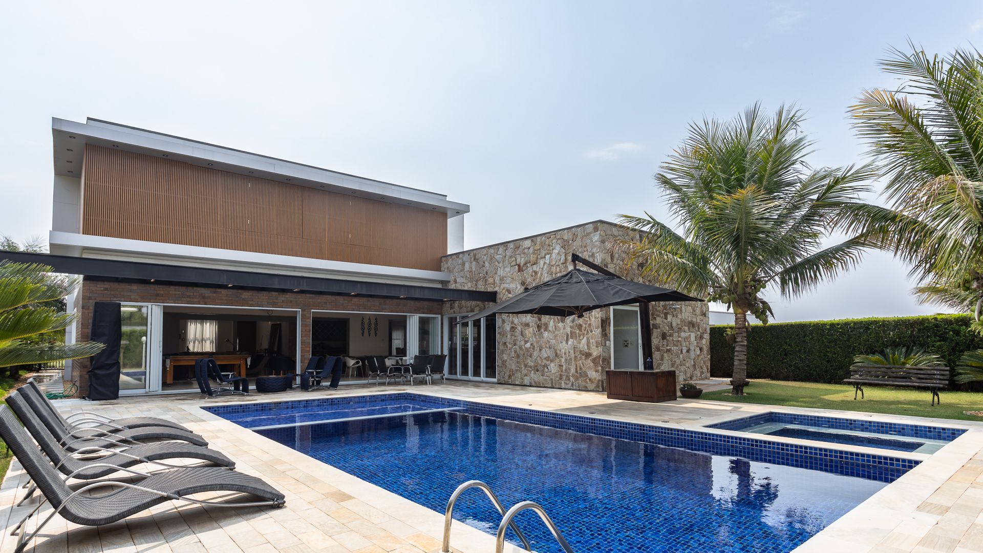 Em localização privilegiada, próxima ao futuro centro comercial do condomínio, esta casa da Fazenda Alvorada reúne planta integrada e lazer completo. O social combina sala de estar decorada, sala de TV e mezanino com a cozinha planejada com ilha e a área gourmet — tudo em um único eixo, com churrasqueira e bancada para receber. No externo, piscina com prainha e spa, além de sauna e espaço para jogos, criam um clube privativo para a família. São 5 suítes no total e banheiro social de apoio. Valores informados: R$ 5.500.000 (venda) • Condomínio R$ 1.100/mês