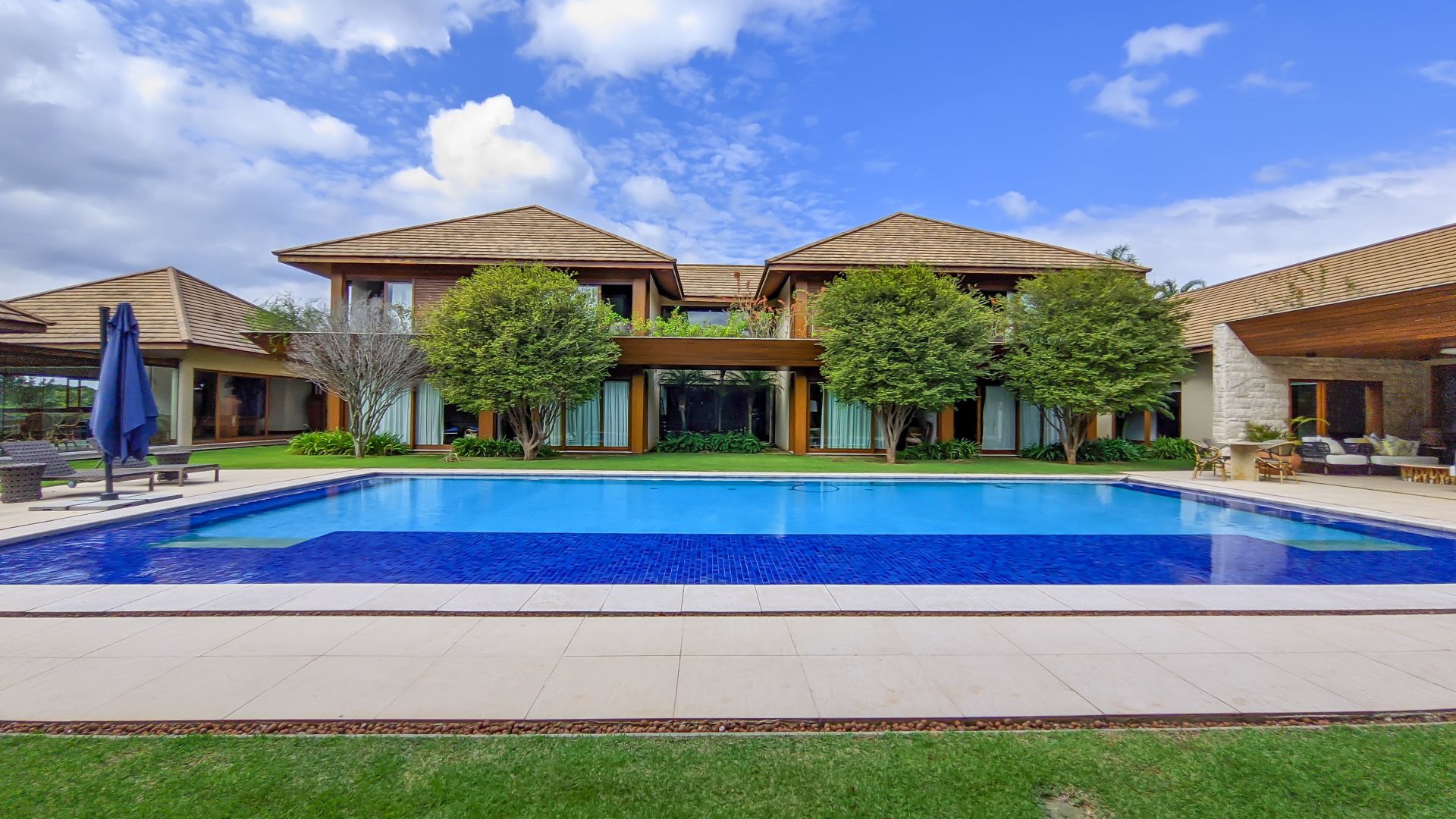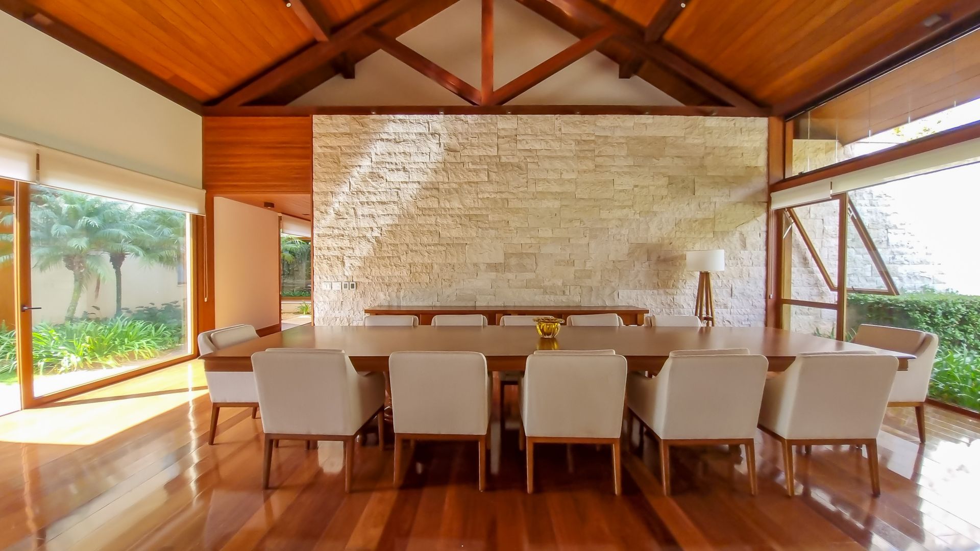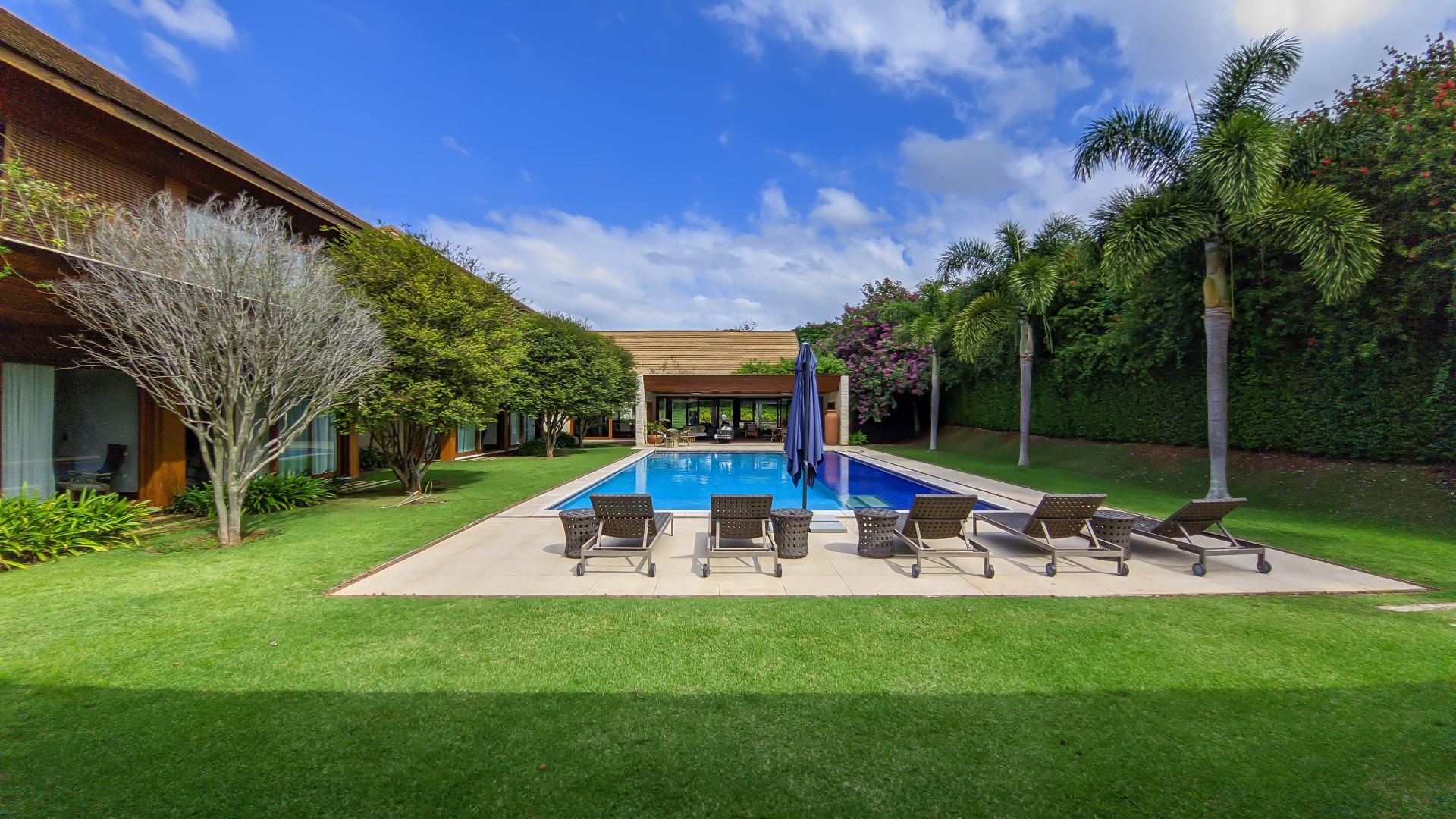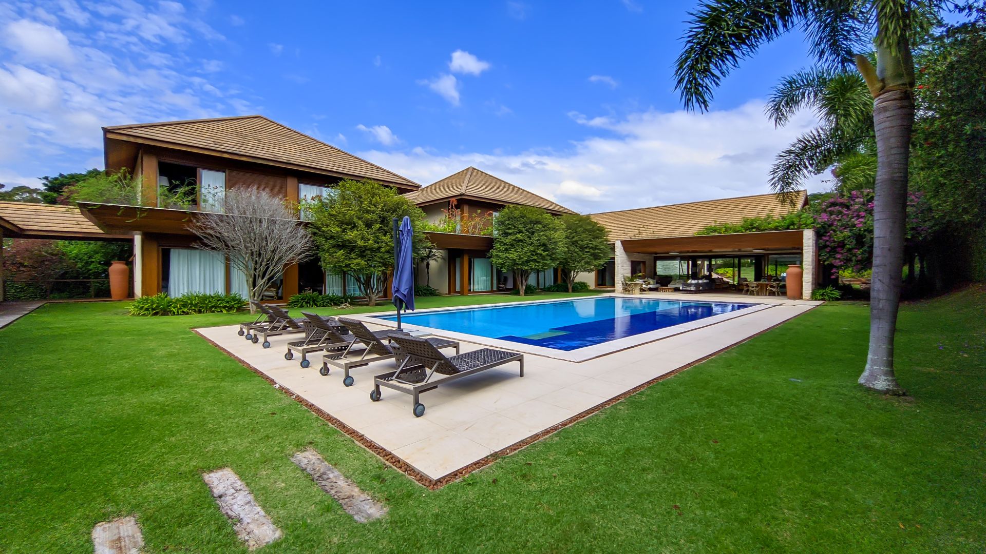 Em uma das alamedas mais arborizadas da Fazenda Boa Vista, esta casa valoriza o lote de 3.200 m² com planta funcional e integração total entre interno e externo. O corpo social reúne cozinha, sala de TV e jantar conectadas à varanda com living externo. São 8 suítes, todas com amplas janelas que garantem entrada de luz natural. O espaço gourmet é multiuso — cozinha completa, churrasqueira, living e hidromassagem coberta — e o lazer externo traz jardim amplo e piscina extensa. Garagem para 4 carros. Venda: R$ 39.900.000.
