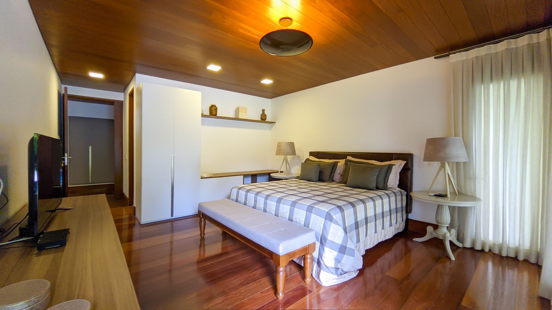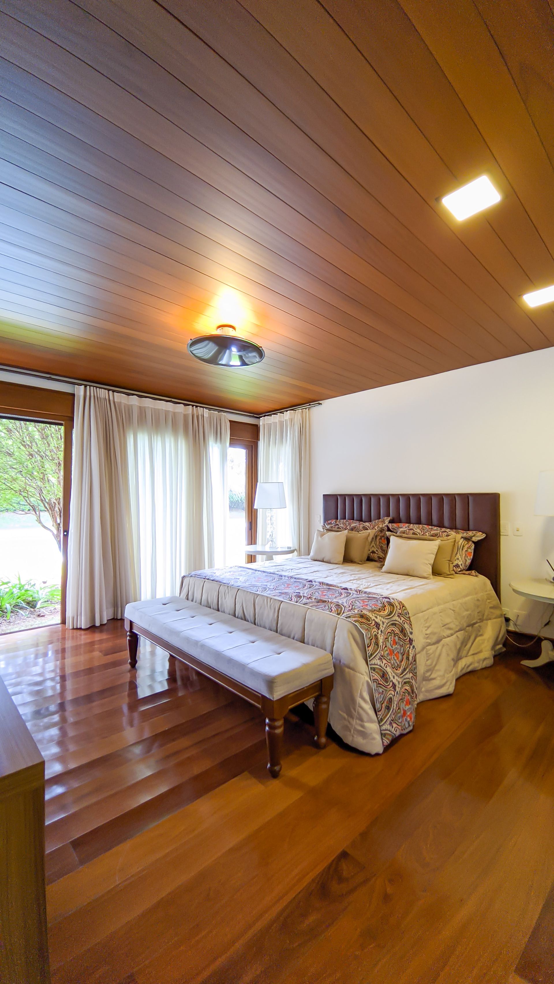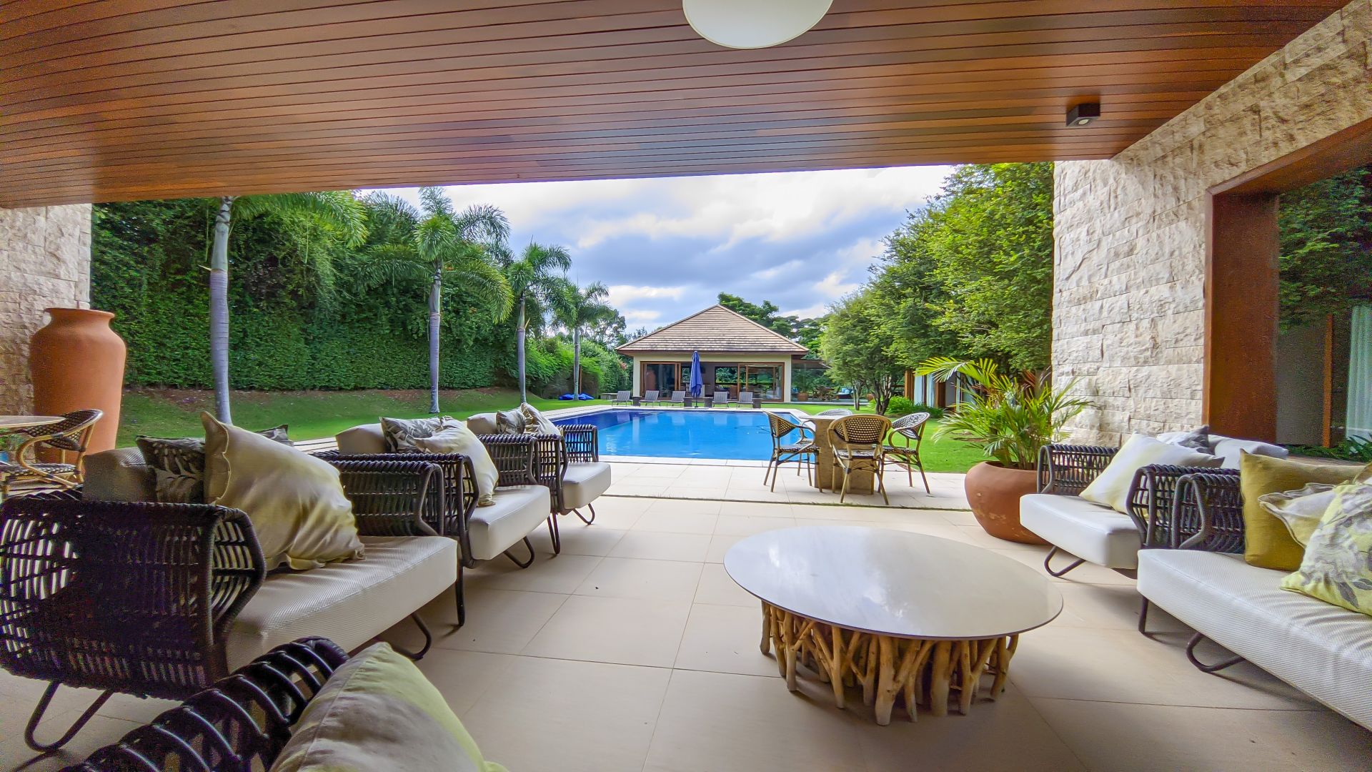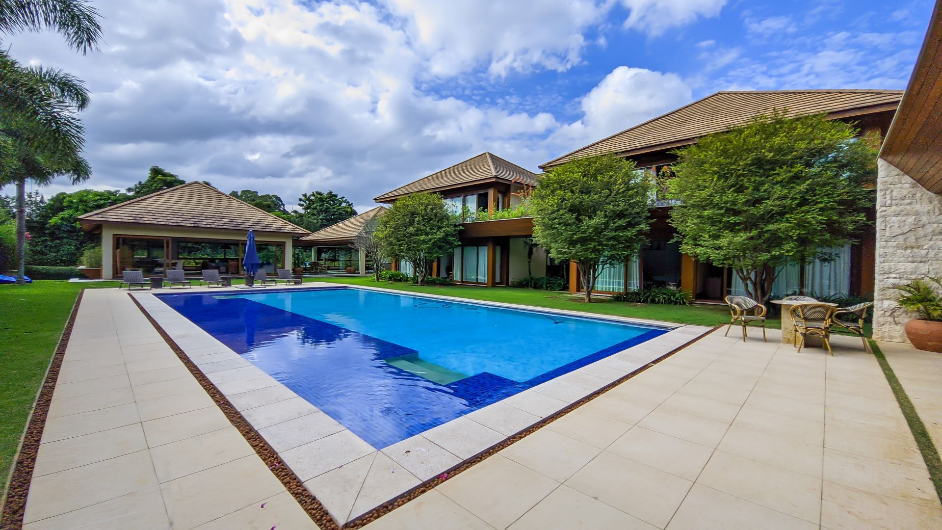 Em uma das alamedas mais arborizadas da Fazenda Boa Vista, esta casa valoriza o lote de 3.200 m² com planta funcional e integração total entre interno e externo. O corpo social reúne cozinha, sala de TV e jantar conectadas à varanda com living externo. São 8 suítes, todas com amplas janelas que garantem entrada de luz natural. O espaço gourmet é multiuso — cozinha completa, churrasqueira, living e hidromassagem coberta — e o lazer externo traz jardim amplo e piscina extensa. Garagem para 4 carros. Venda: R$ 39.900.000.