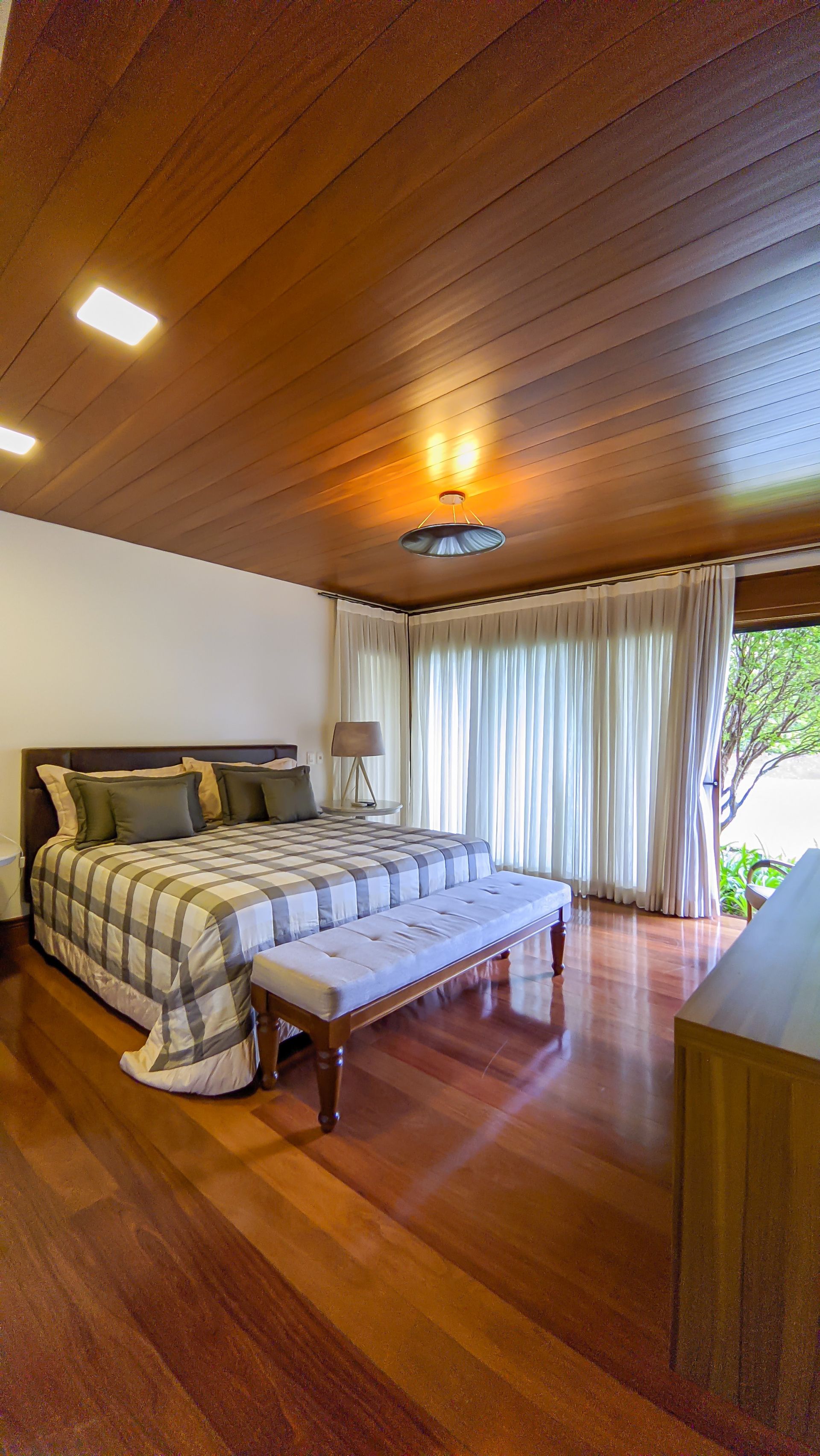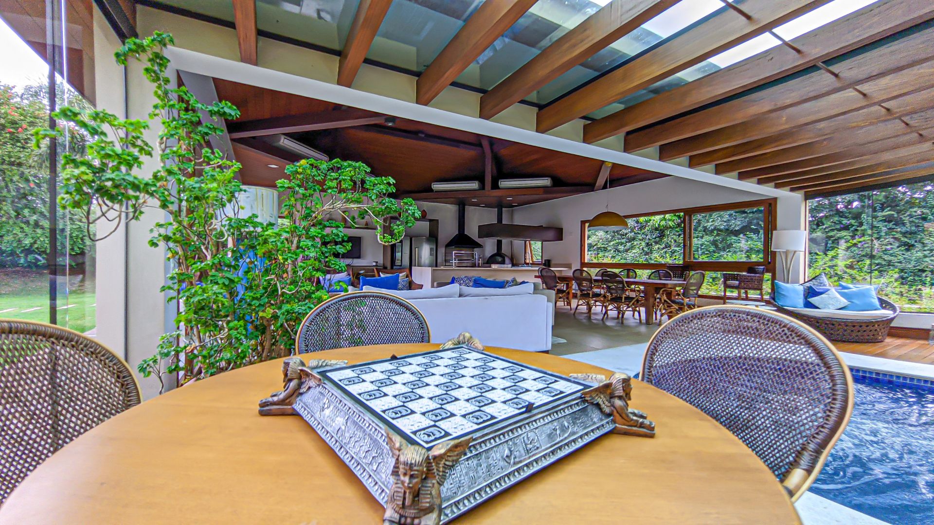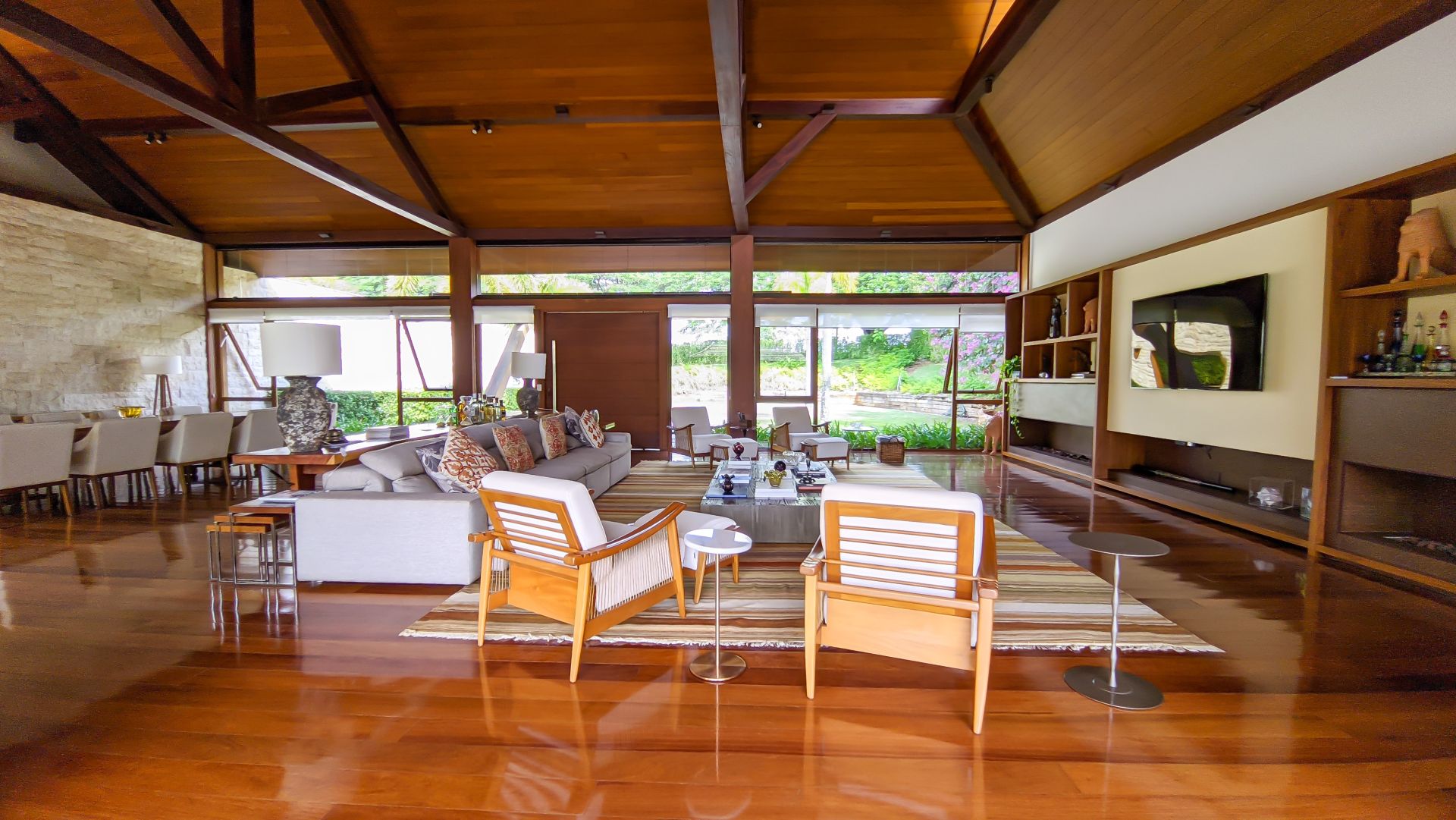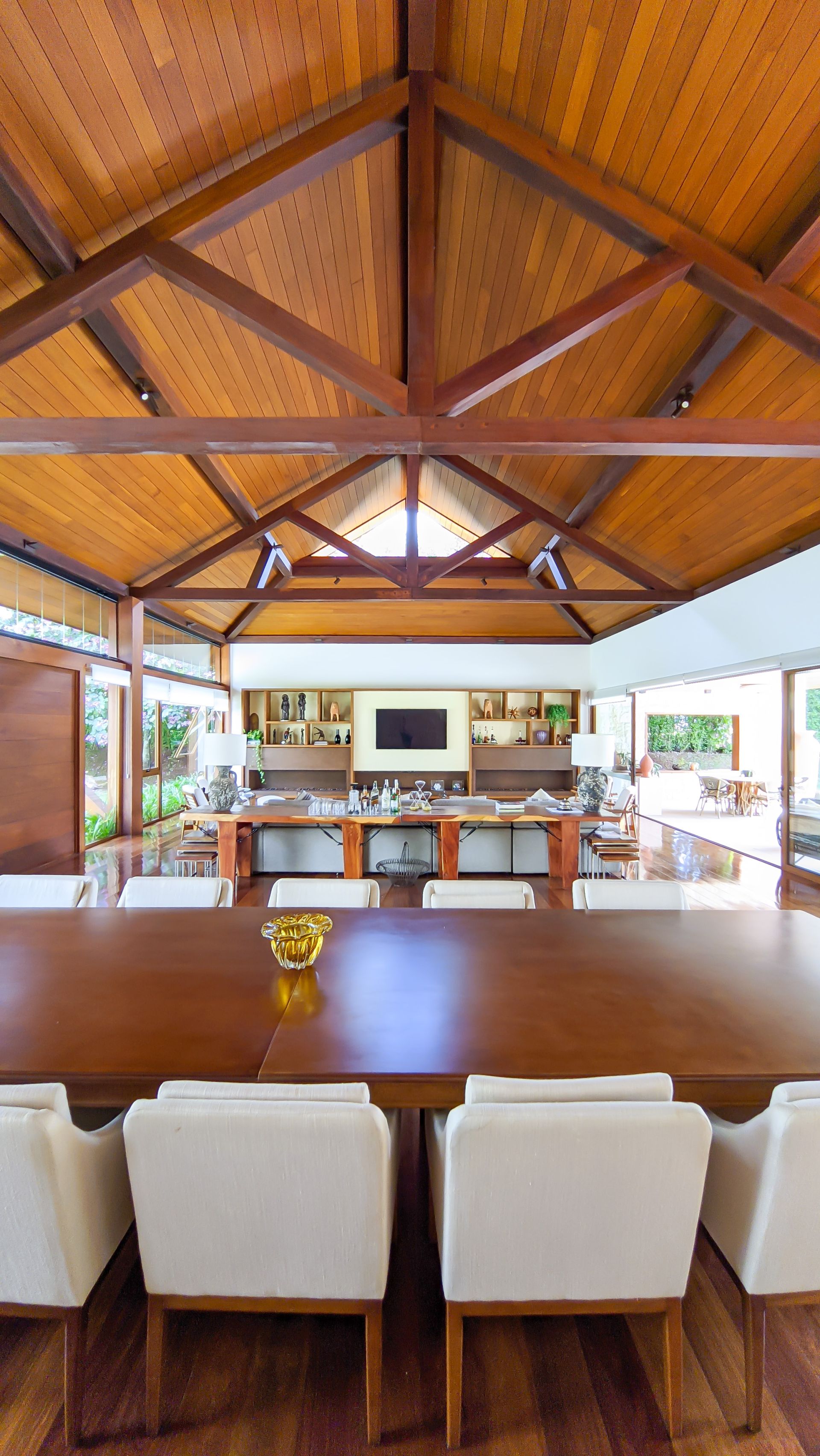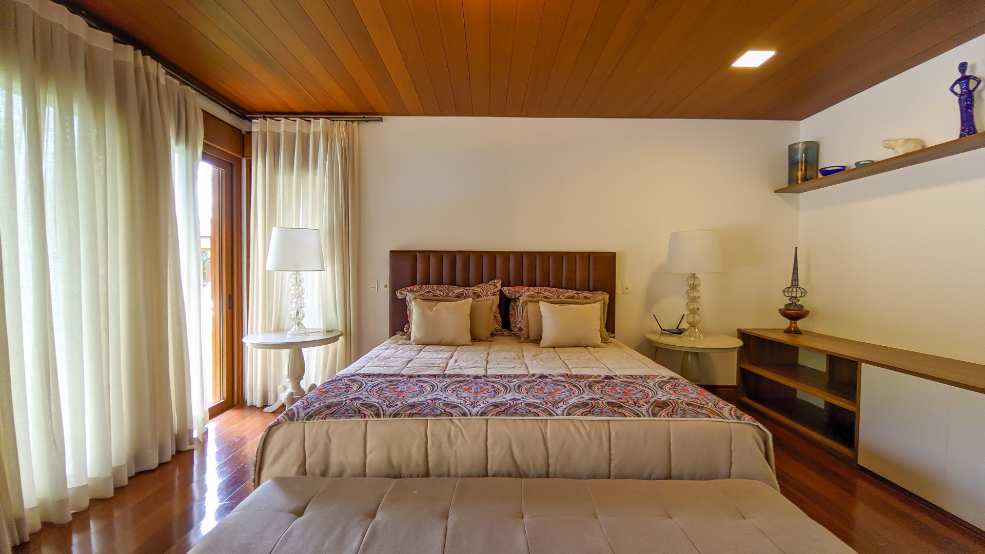 Em uma das alamedas mais arborizadas da Fazenda Boa Vista, esta casa valoriza o lote de 3.200 m² com planta funcional e integração total entre interno e externo. O corpo social reúne cozinha, sala de TV e jantar conectadas à varanda com living externo. São 8 suítes, todas com amplas janelas que garantem entrada de luz natural. O espaço gourmet é multiuso — cozinha completa, churrasqueira, living e hidromassagem coberta — e o lazer externo traz jardim amplo e piscina extensa. Garagem para 4 carros. Venda: R$ 39.900.000.