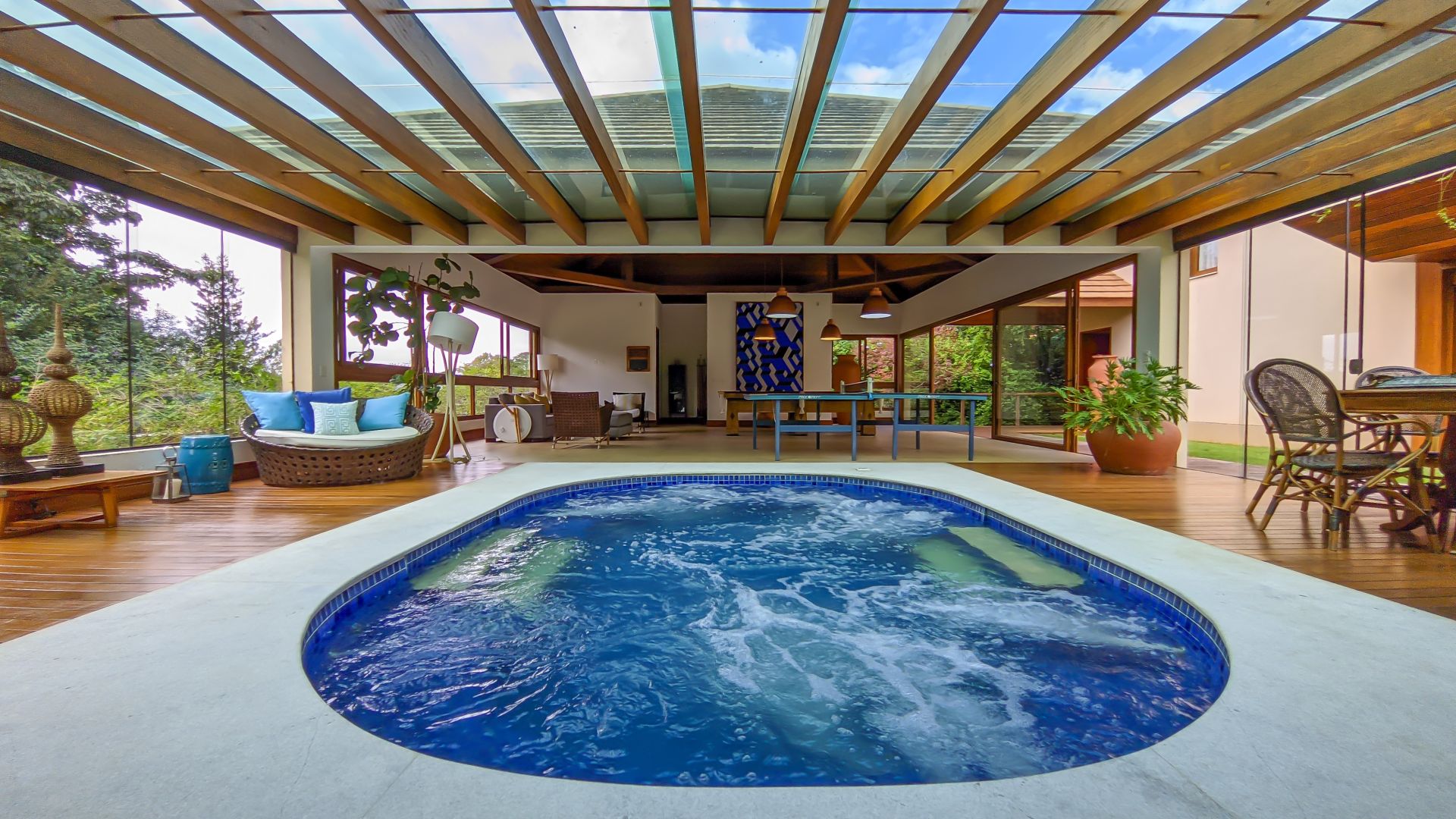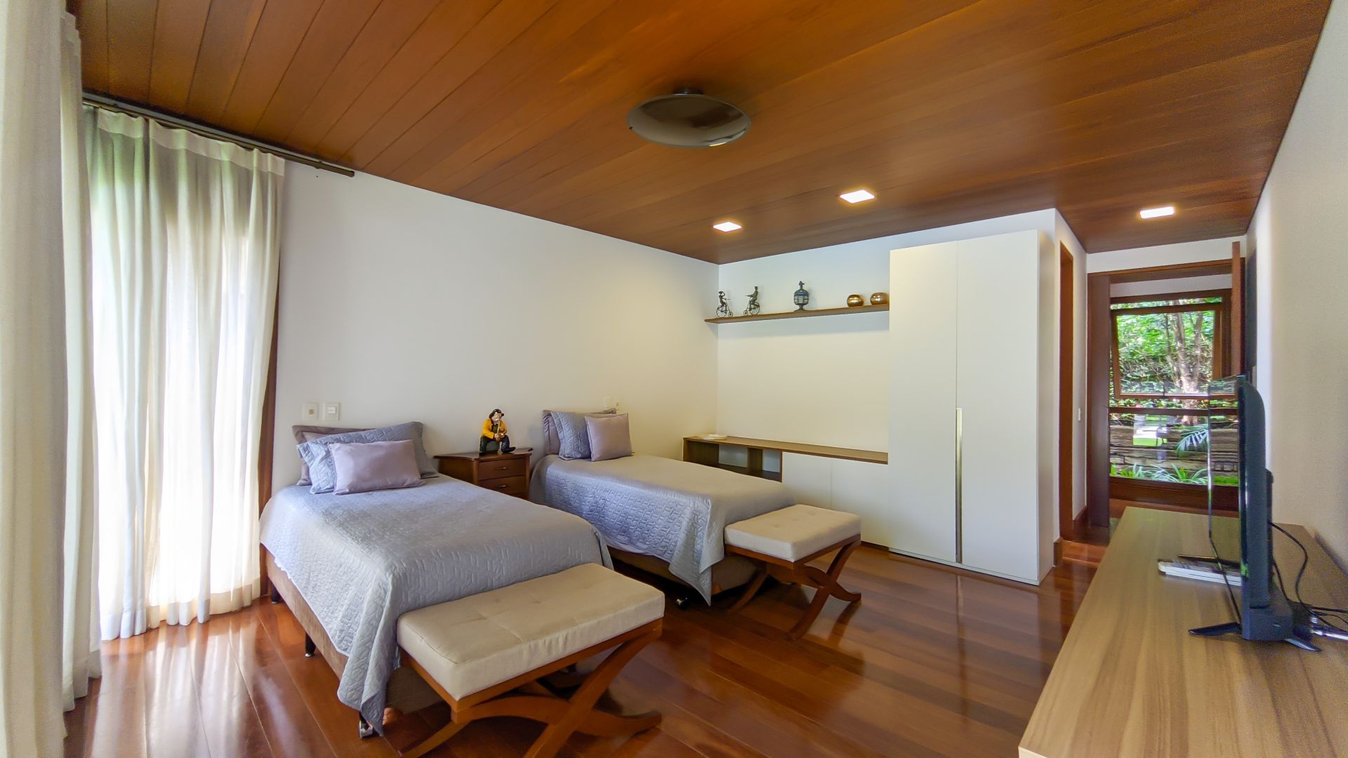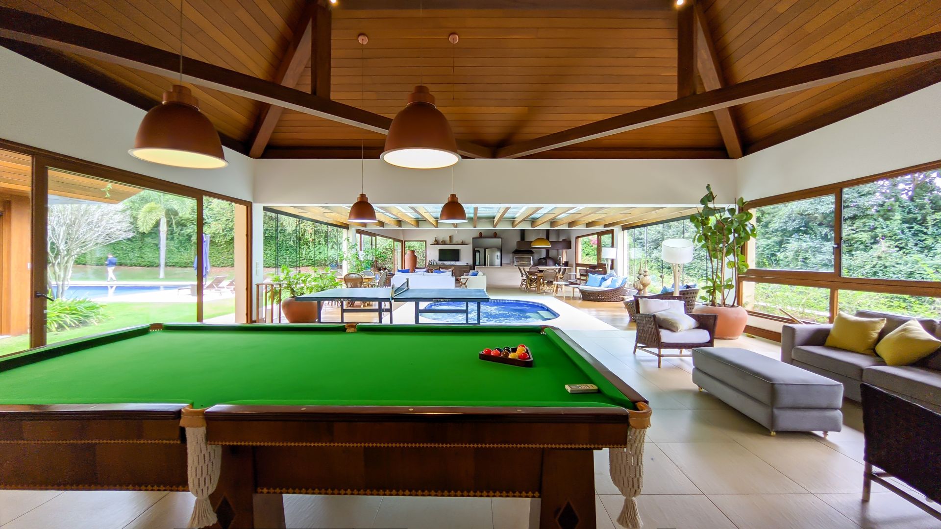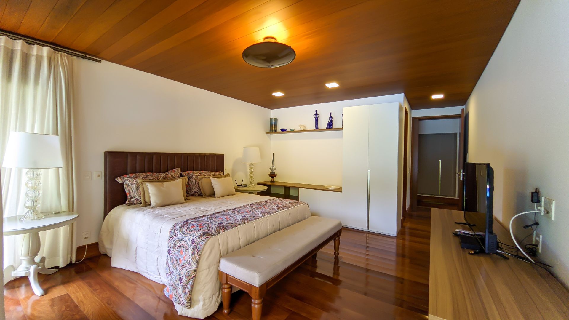 Em uma das alamedas mais arborizadas da Fazenda Boa Vista, esta casa valoriza o lote de 3.200 m² com planta funcional e integração total entre interno e externo. O corpo social reúne cozinha, sala de TV e jantar conectadas à varanda com living externo. São 8 suítes, todas com amplas janelas que garantem entrada de luz natural. O espaço gourmet é multiuso — cozinha completa, churrasqueira, living e hidromassagem coberta — e o lazer externo traz jardim amplo e piscina extensa. Garagem para 4 carros. Venda: R$ 39.900.000.