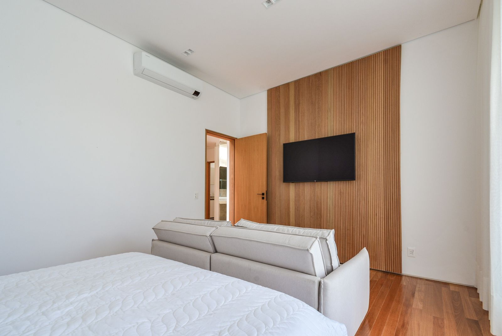 Implantada em rua sem saída, próxima ao Circuito do Triathlon da Fazenda Boa Vista, esta casa recém-construída privilegia integração e luz natural em um lote de 2.010 m². São 800 m² com 5 suítes espaçosas, sala de estar com lareira, jantar, TV, escritório e brinquedoteca — todos conectados à varanda com espaço gourmet voltada para o jardim. No lazer do terreno, piscina aquecida por energia solar, minicampo e quadra de beach tennis garantem a diversão da família e dos convidados. Garagem para 5 carros. Venda: R$ 29.500.000. No condomínio, o morador conta com um clube residencial completo: heliponto, quadras (tênis, beach tênis, squash, poliesportiva, vôlei), parque dos esportes, kids club, market/lojas, restaurantes, spa e sala fitness, além de portaria e vigilância 24h. Condomínio: R$ 5.500/mês • IPTU: R$ 1.900/ano.