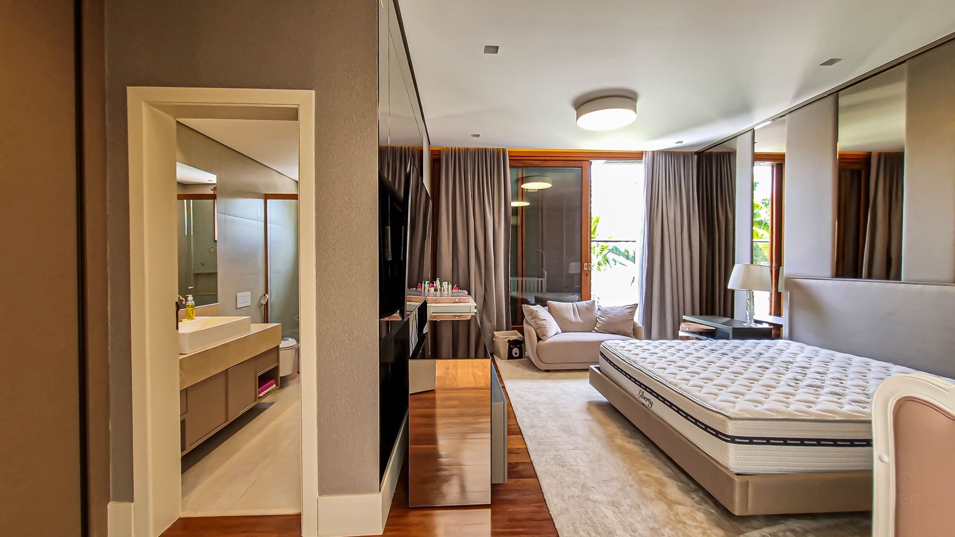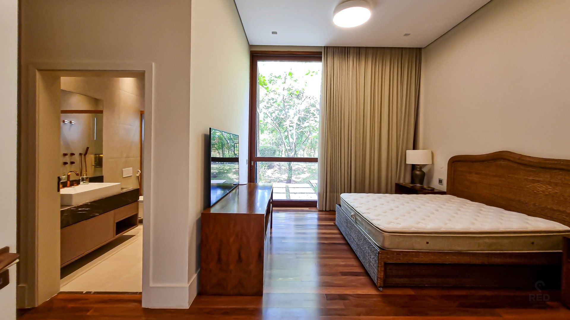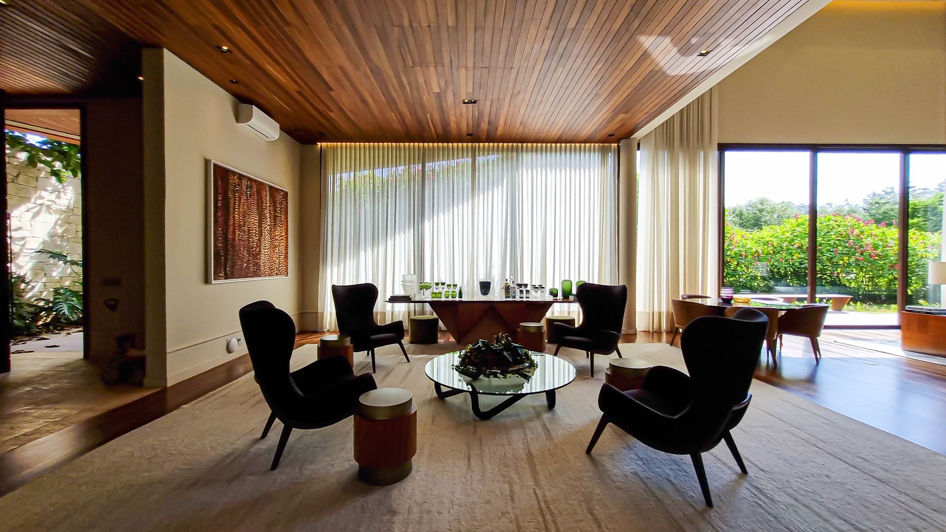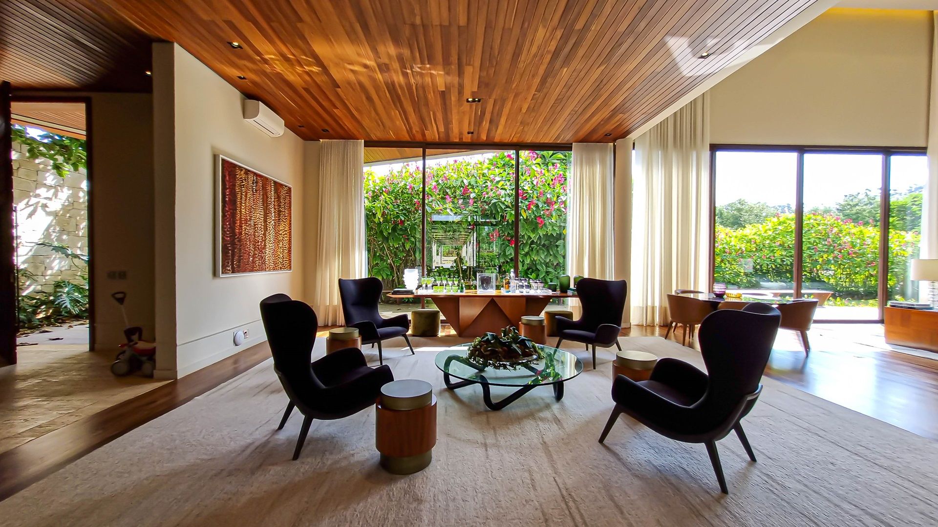 Em rua tranquila, sem saída, esta residência na Fazenda Boa Vista ocupa lote de 4.650 m² e entrega 1.150 m² com 6 suítes — sendo 1 máster com vista panorâmica para a mata. A área social reúne living para 2 ambientes e 2 varandas, criando um eixo amplo e iluminado para conviver e receber. No lazer privativo, campo de futebol, quadra de beach tennis, sauna e spa completam a experiência de casa-clube. Arquitetura: Olegário de Sá • Interiores: Chris Hamoui • Paisagismo: Alex Hanazaki. 4 vagas. Venda: R$ 42.000.000. Condomínio Fazenda Boa Vista: clube residencial com golfe, polo, tênis, beach tênis, academia, kids club, piscina, fazendinha, parque dos esportes, market/lojas, restaurantes, spa, sala fitness, heliponto e segurança 24h — campo a menos de 1h de São Paulo. Condomínio: R$ 7.800/mês • IPTU: R$ 2.000/ano.