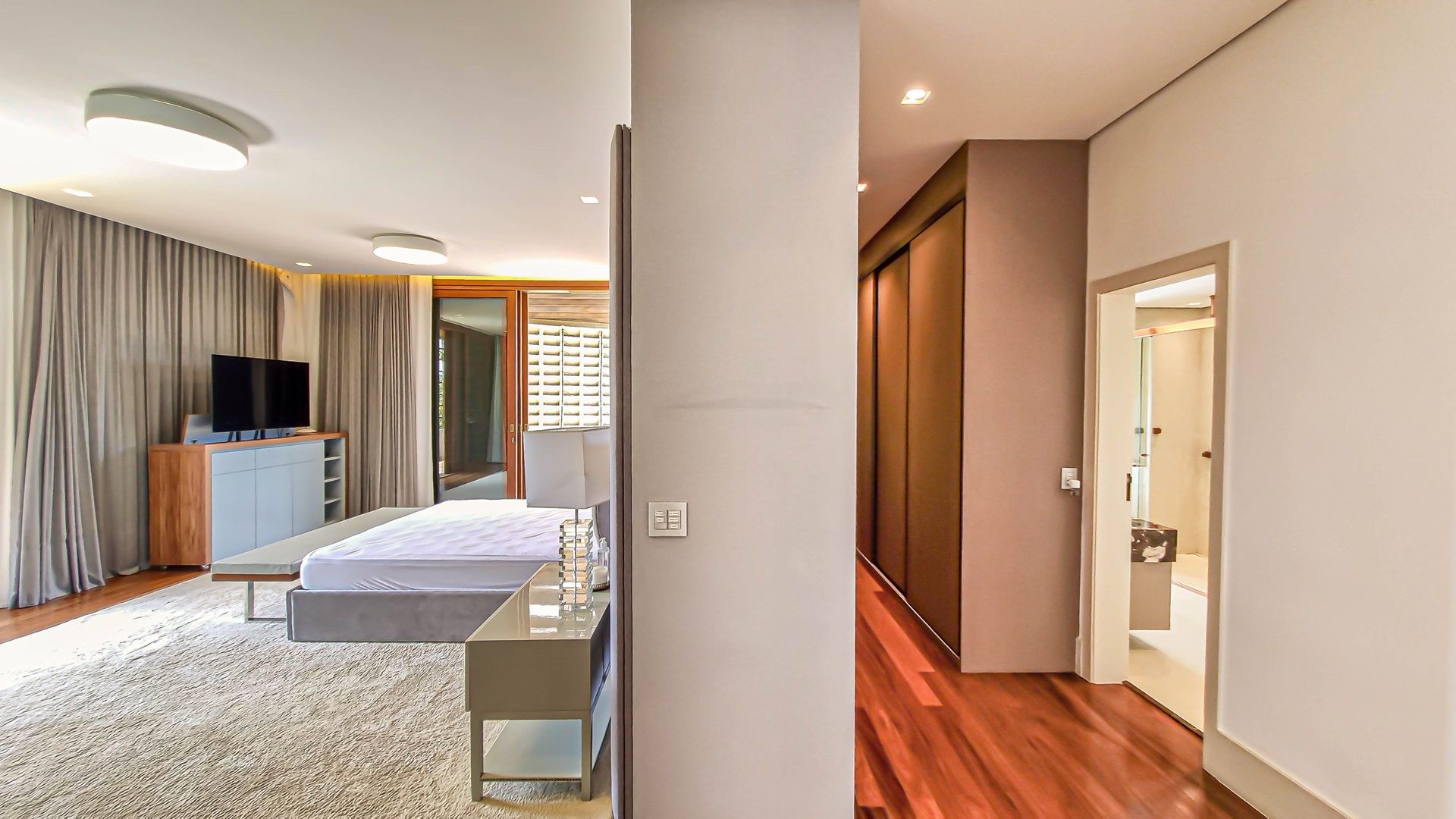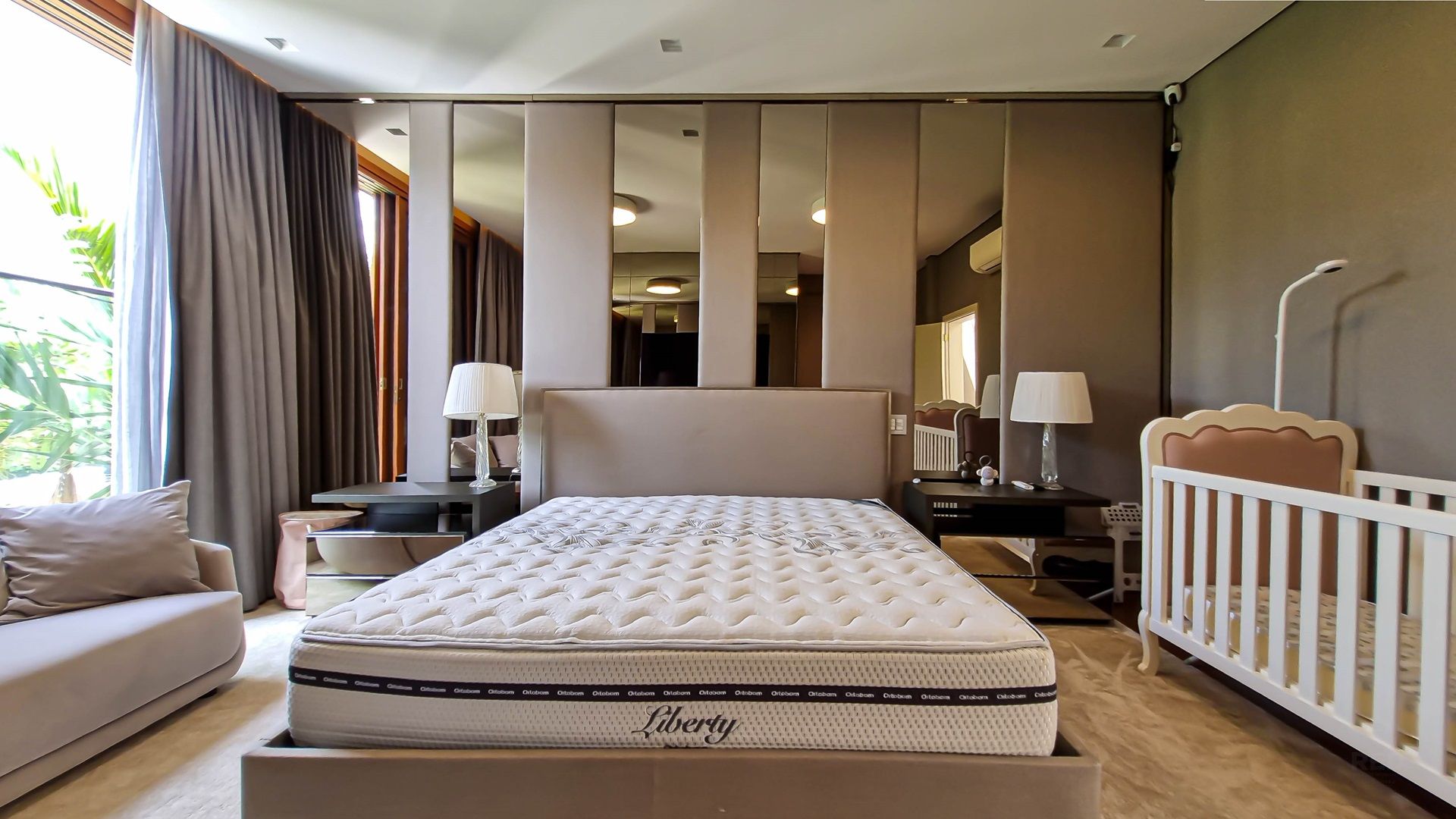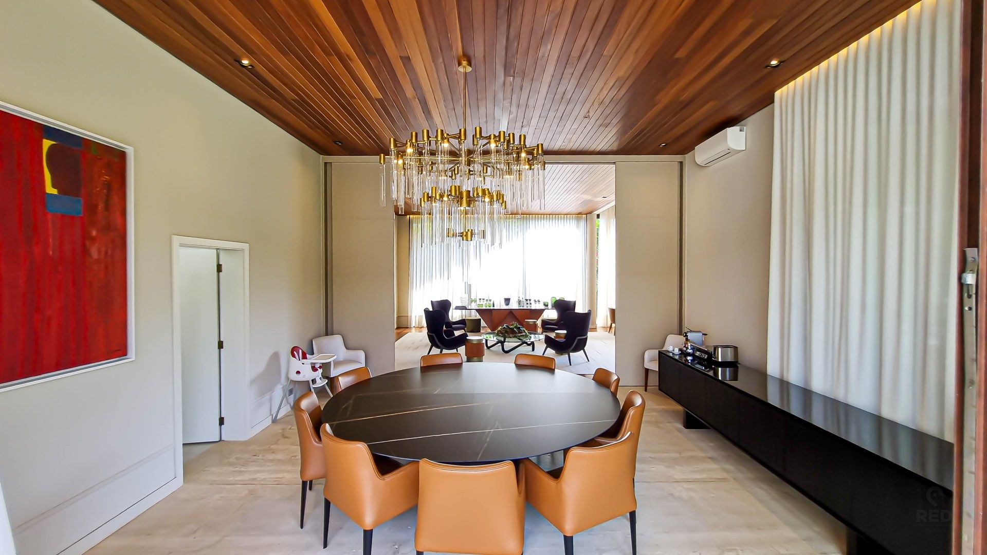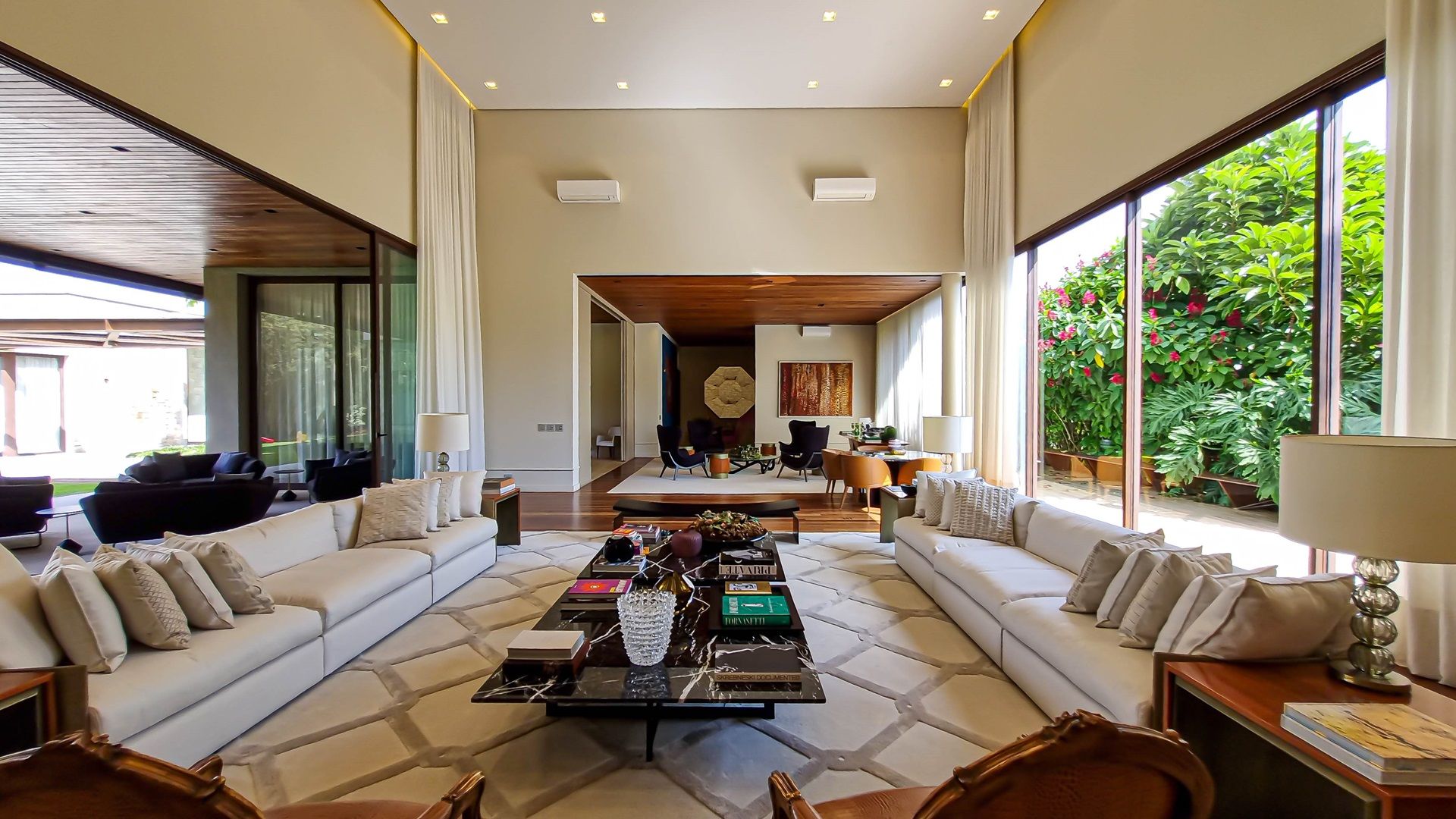 Em rua tranquila, sem saída, esta residência na Fazenda Boa Vista ocupa lote de 4.650 m² e entrega 1.150 m² com 6 suítes — sendo 1 máster com vista panorâmica para a mata. A área social reúne living para 2 ambientes e 2 varandas, criando um eixo amplo e iluminado para conviver e receber. No lazer privativo, campo de futebol, quadra de beach tennis, sauna e spa completam a experiência de casa-clube. Arquitetura: Olegário de Sá • Interiores: Chris Hamoui • Paisagismo: Alex Hanazaki. 4 vagas. Venda: R$ 42.000.000. Condomínio Fazenda Boa Vista: clube residencial com golfe, polo, tênis, beach tênis, academia, kids club, piscina, fazendinha, parque dos esportes, market/lojas, restaurantes, spa, sala fitness, heliponto e segurança 24h — campo a menos de 1h de São Paulo. Condomínio: R$ 7.800/mês • IPTU: R$ 2.000/ano.