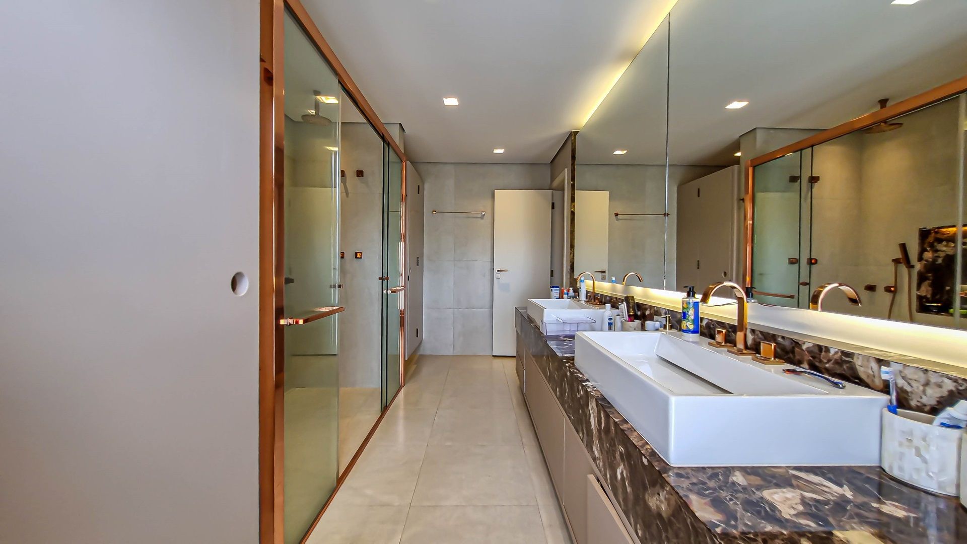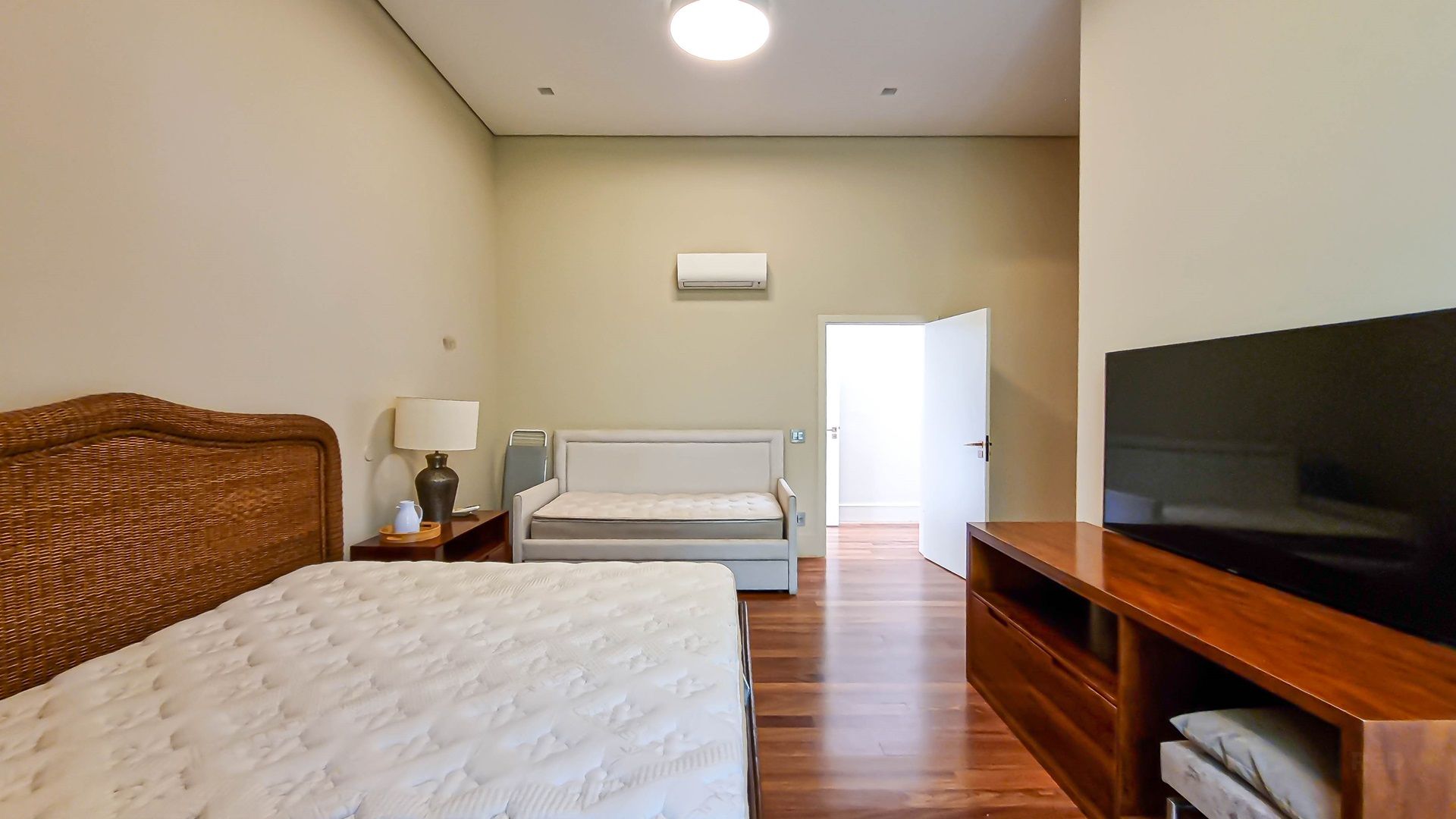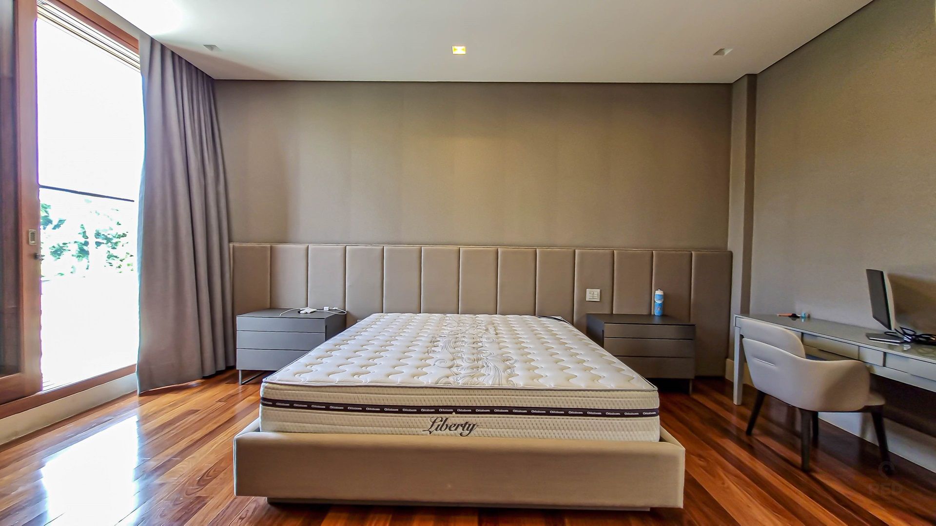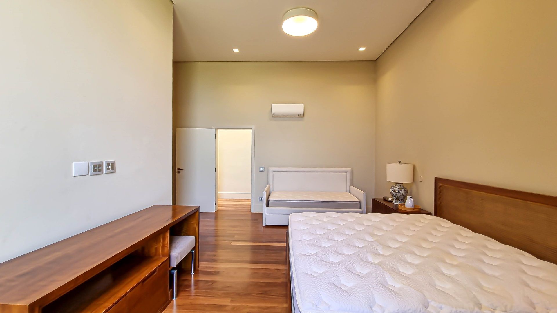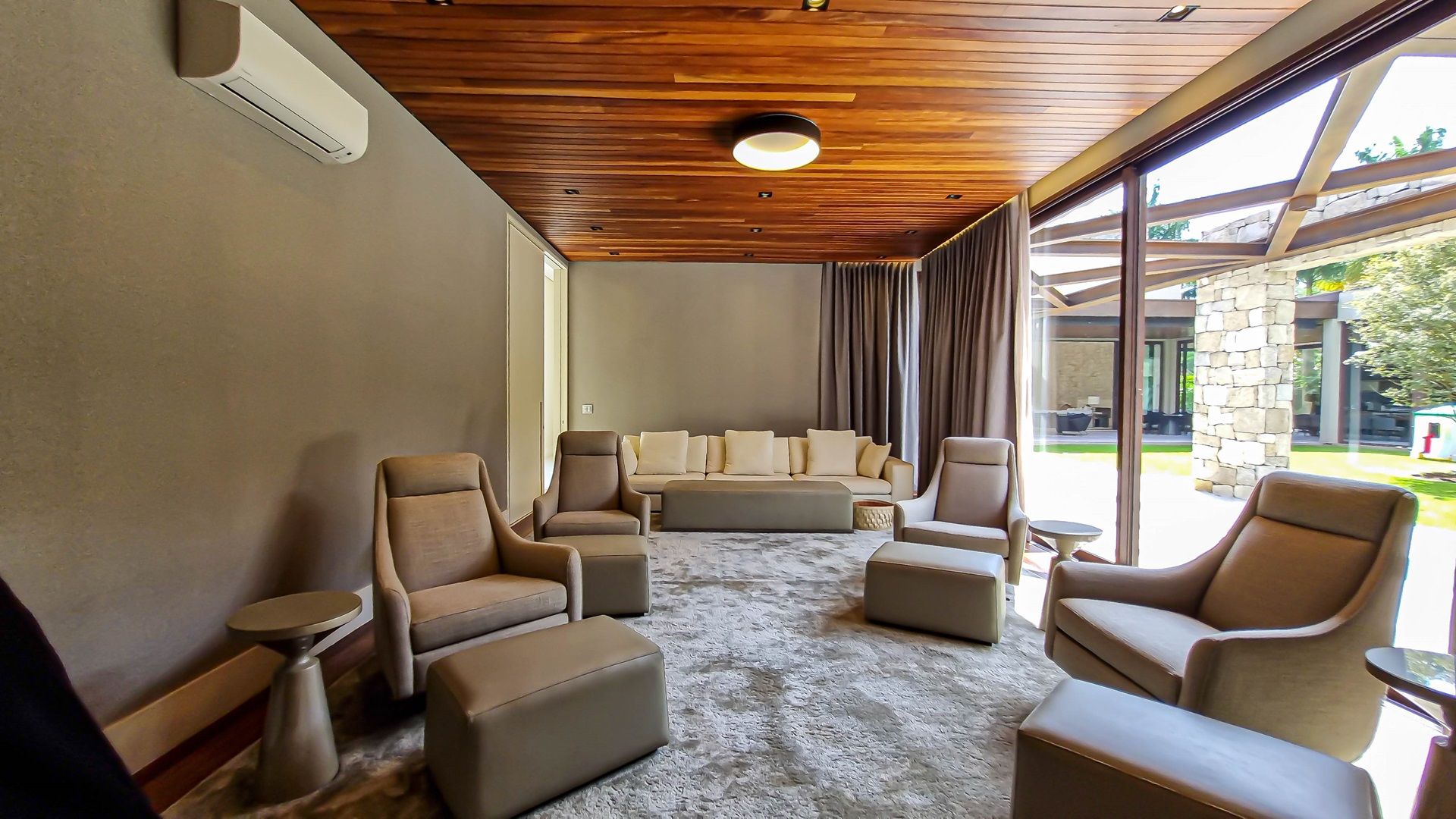 Em rua tranquila, sem saída, esta residência na Fazenda Boa Vista ocupa lote de 4.650 m² e entrega 1.150 m² com 6 suítes — sendo 1 máster com vista panorâmica para a mata. A área social reúne living para 2 ambientes e 2 varandas, criando um eixo amplo e iluminado para conviver e receber. No lazer privativo, campo de futebol, quadra de beach tennis, sauna e spa completam a experiência de casa-clube. Arquitetura: Olegário de Sá • Interiores: Chris Hamoui • Paisagismo: Alex Hanazaki. 4 vagas. Venda: R$ 42.000.000. Condomínio Fazenda Boa Vista: clube residencial com golfe, polo, tênis, beach tênis, academia, kids club, piscina, fazendinha, parque dos esportes, market/lojas, restaurantes, spa, sala fitness, heliponto e segurança 24h — campo a menos de 1h de São Paulo. Condomínio: R$ 7.800/mês • IPTU: R$ 2.000/ano.