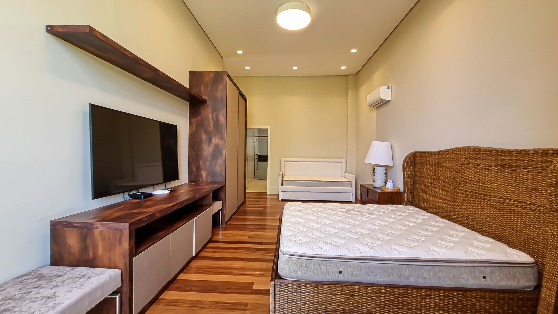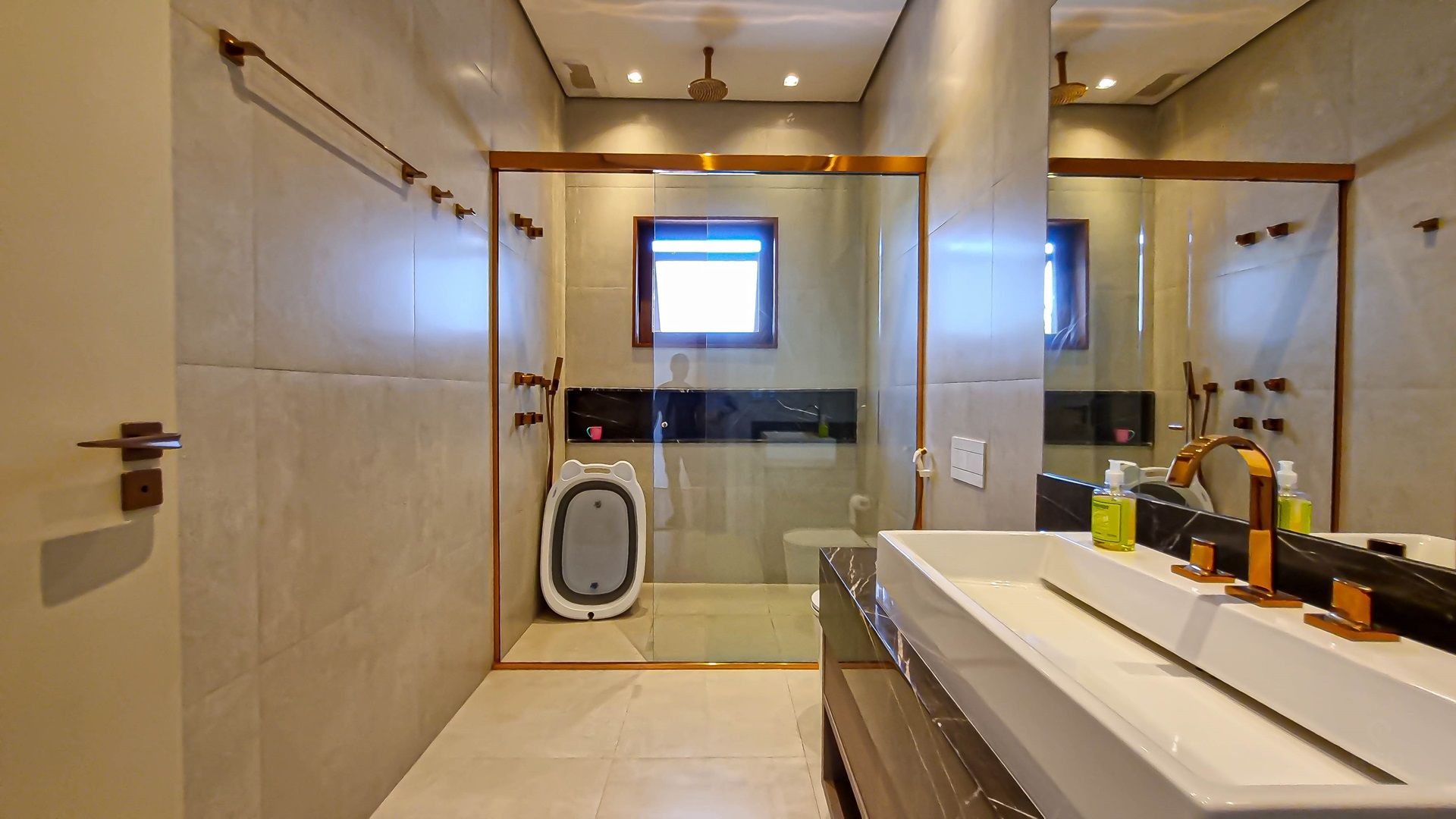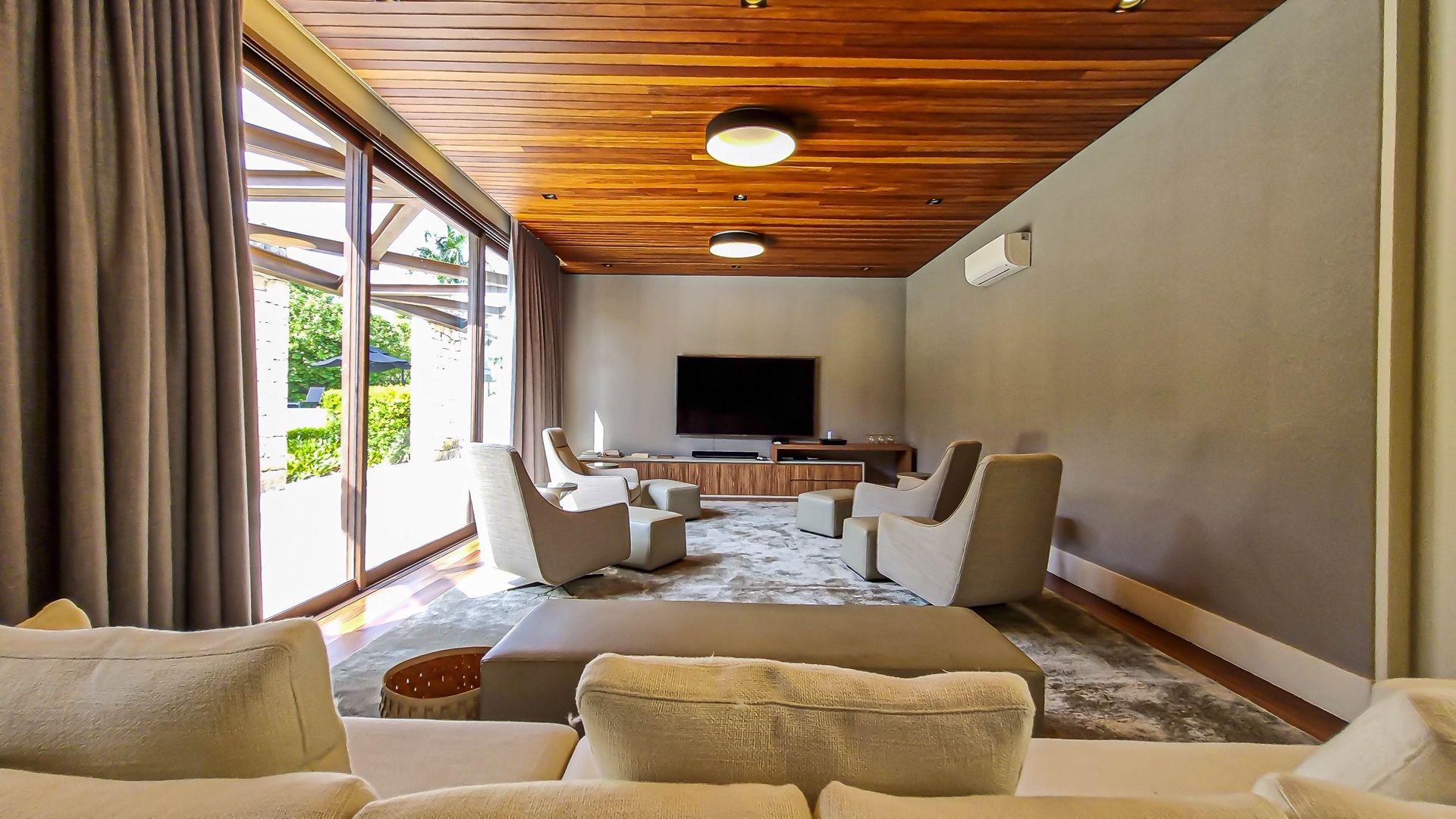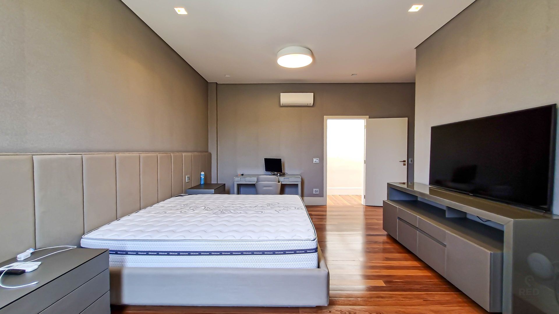 Em rua tranquila, sem saída, esta residência na Fazenda Boa Vista ocupa lote de 4.650 m² e entrega 1.150 m² com 6 suítes — sendo 1 máster com vista panorâmica para a mata. A área social reúne living para 2 ambientes e 2 varandas, criando um eixo amplo e iluminado para conviver e receber. No lazer privativo, campo de futebol, quadra de beach tennis, sauna e spa completam a experiência de casa-clube. Arquitetura: Olegário de Sá • Interiores: Chris Hamoui • Paisagismo: Alex Hanazaki. 4 vagas. Venda: R$ 42.000.000. Condomínio Fazenda Boa Vista: clube residencial com golfe, polo, tênis, beach tênis, academia, kids club, piscina, fazendinha, parque dos esportes, market/lojas, restaurantes, spa, sala fitness, heliponto e segurança 24h — campo a menos de 1h de São Paulo. Condomínio: R$ 7.800/mês • IPTU: R$ 2.000/ano.