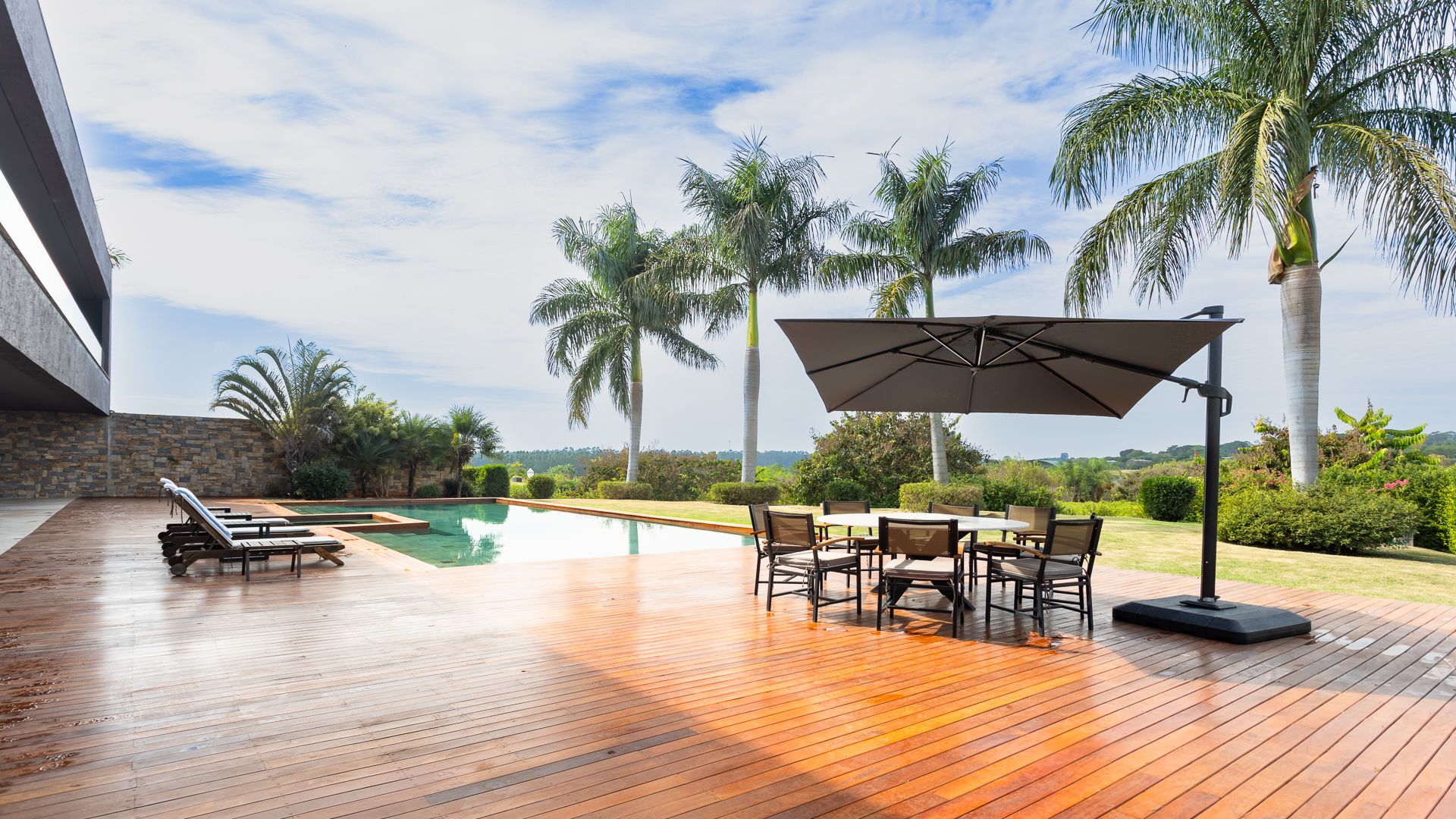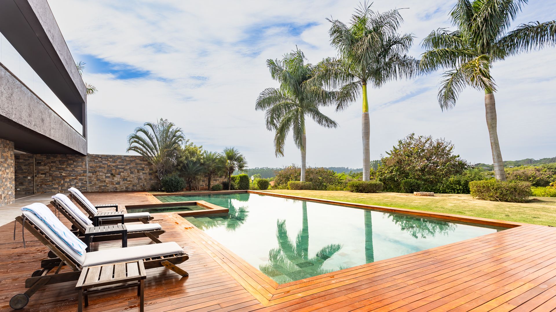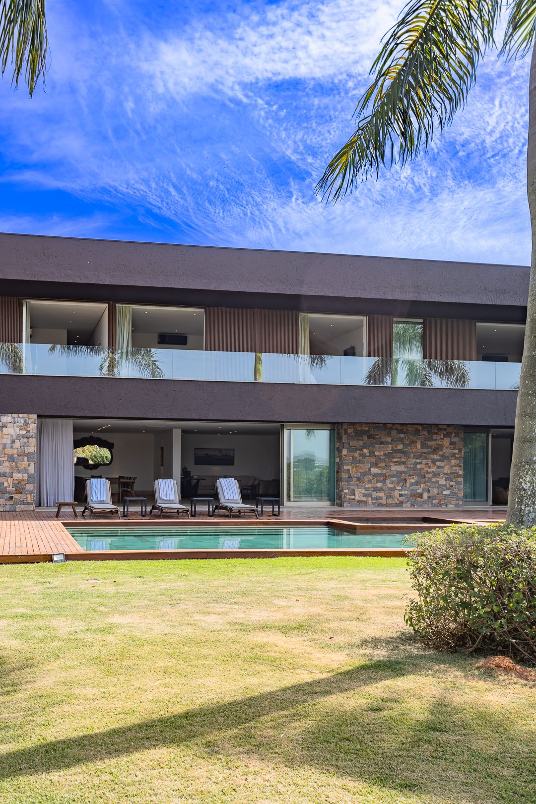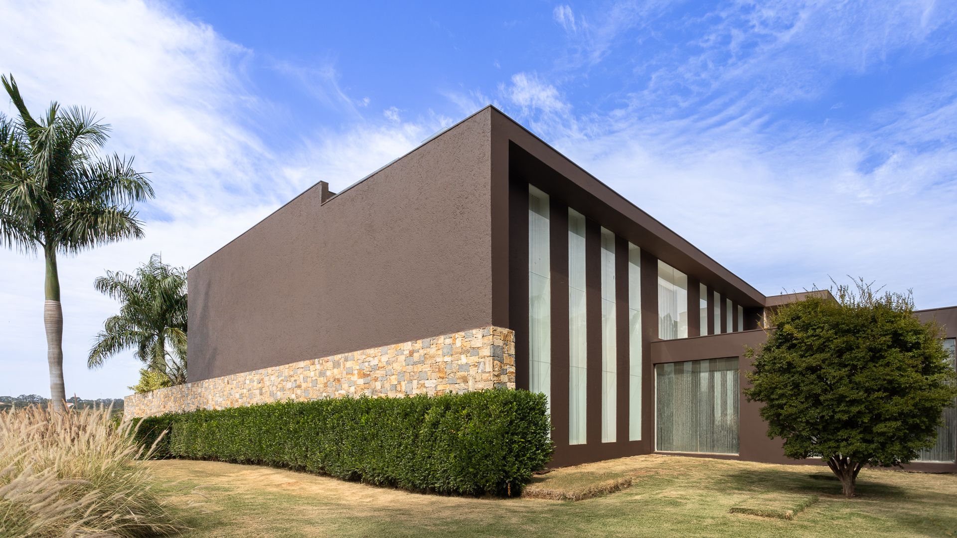 Em um terreno de 2.569 m², esta casa mobiliada na Fazenda Boa Vista entrega 1.900 m² com um projeto de linhas contemporâneas e fachada em aço Corten. O eixo social é generoso: living para 5 ambientes e 6 varandas, criando percursos fluidos entre interior e exterior. A ala íntima reúne 5 suítes, sendo a máster com walk-in closet e banheiros Sr. e Sra.; todos os ambientes são climatizados e recebem acabamentos em madeira e pedra. No lazer, um spa completo com sauna seca e úmida complementa a área externa. Garagem para 10 carros. Venda: R$ 35.000.000. No condomínio, a menos de 1 hora de São Paulo, o morador encontra golfe, polo, tênis e beach tênis, além de piscina, academia, kids club e fazendinha — infraestrutura com heliponto, parque dos esportes, market/lojas, restaurantes, spa, sala fitness e segurança 24h.