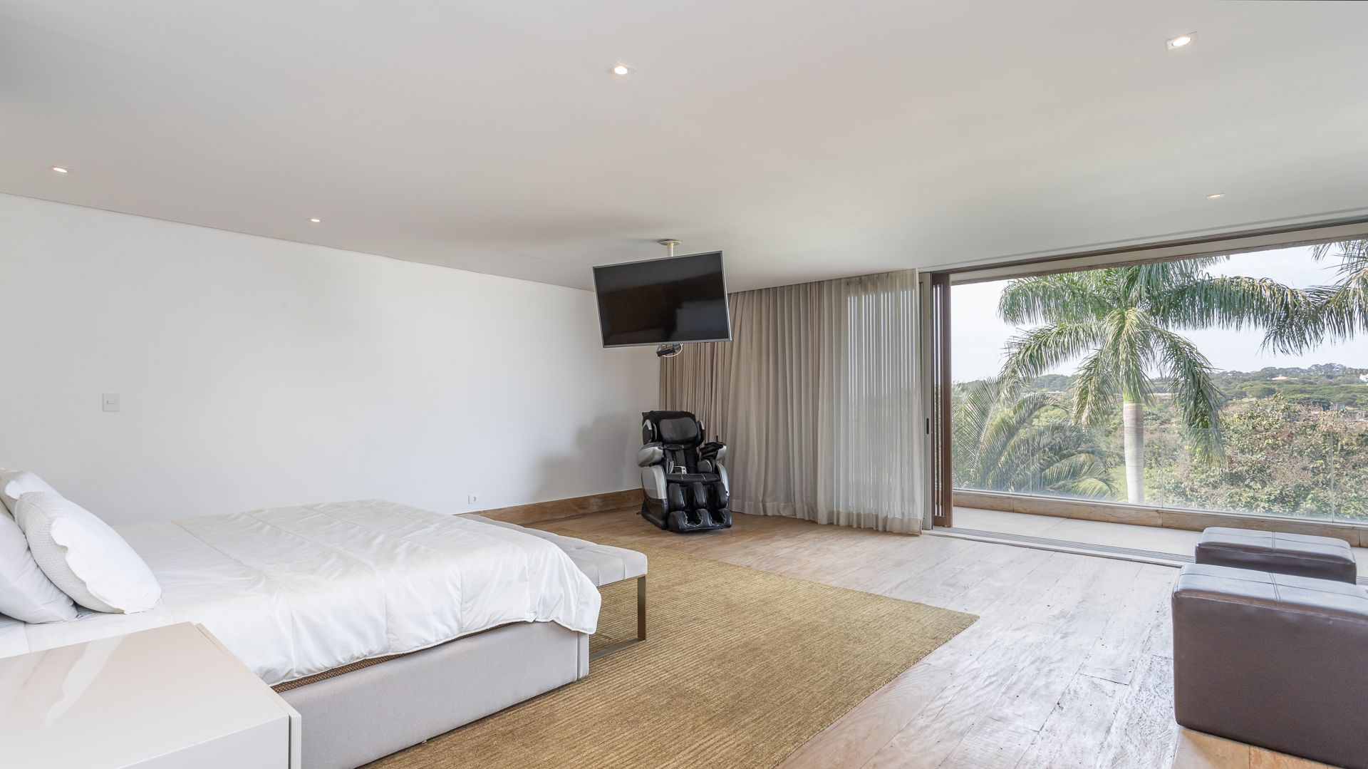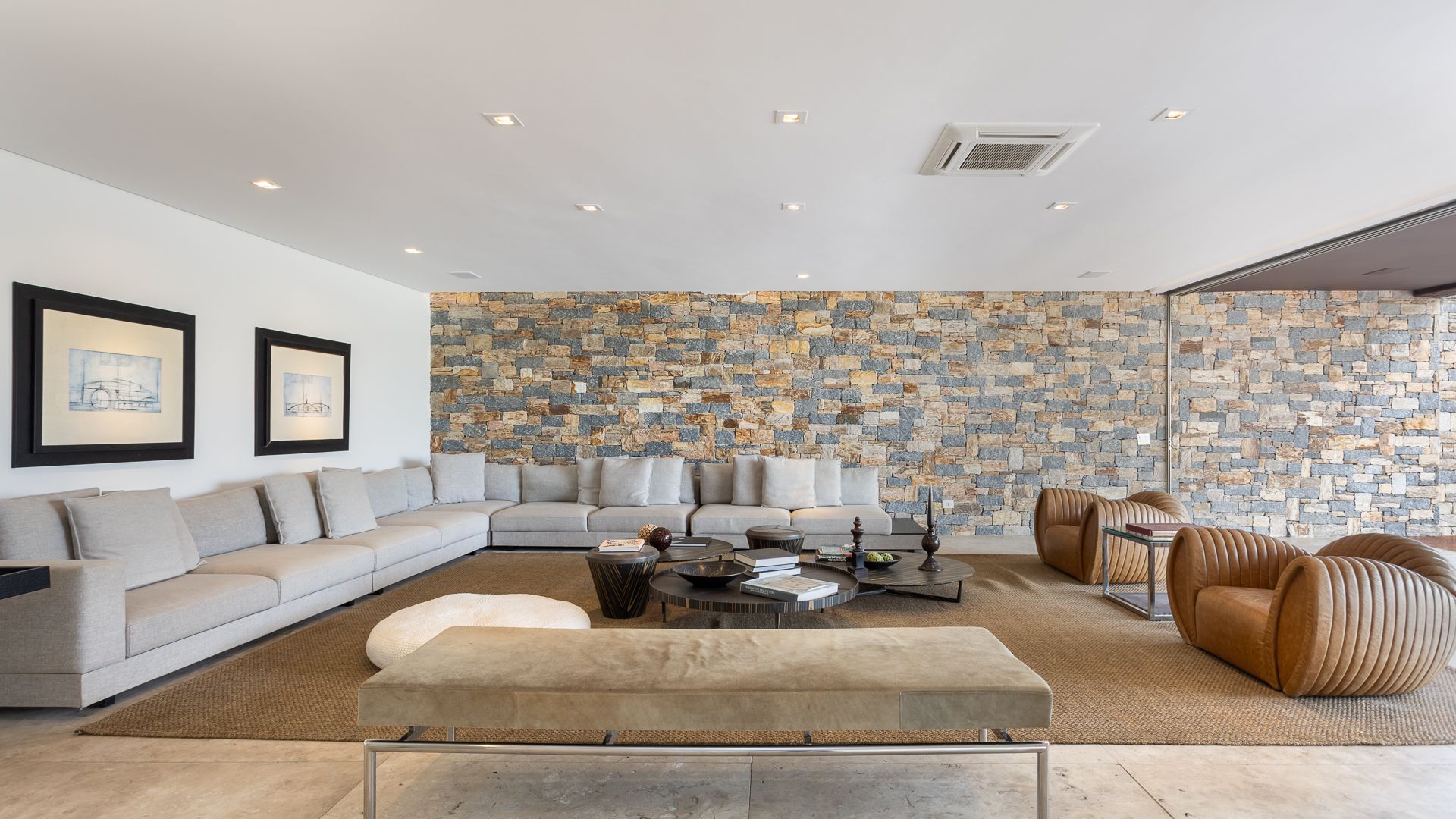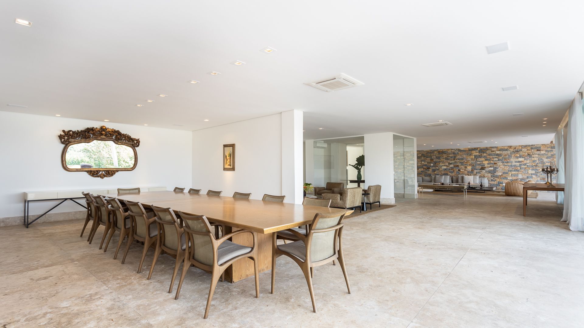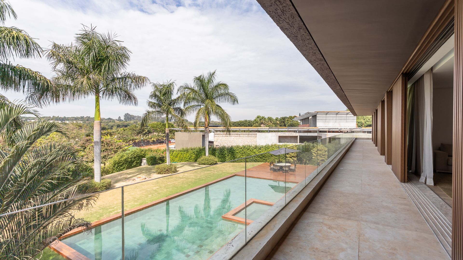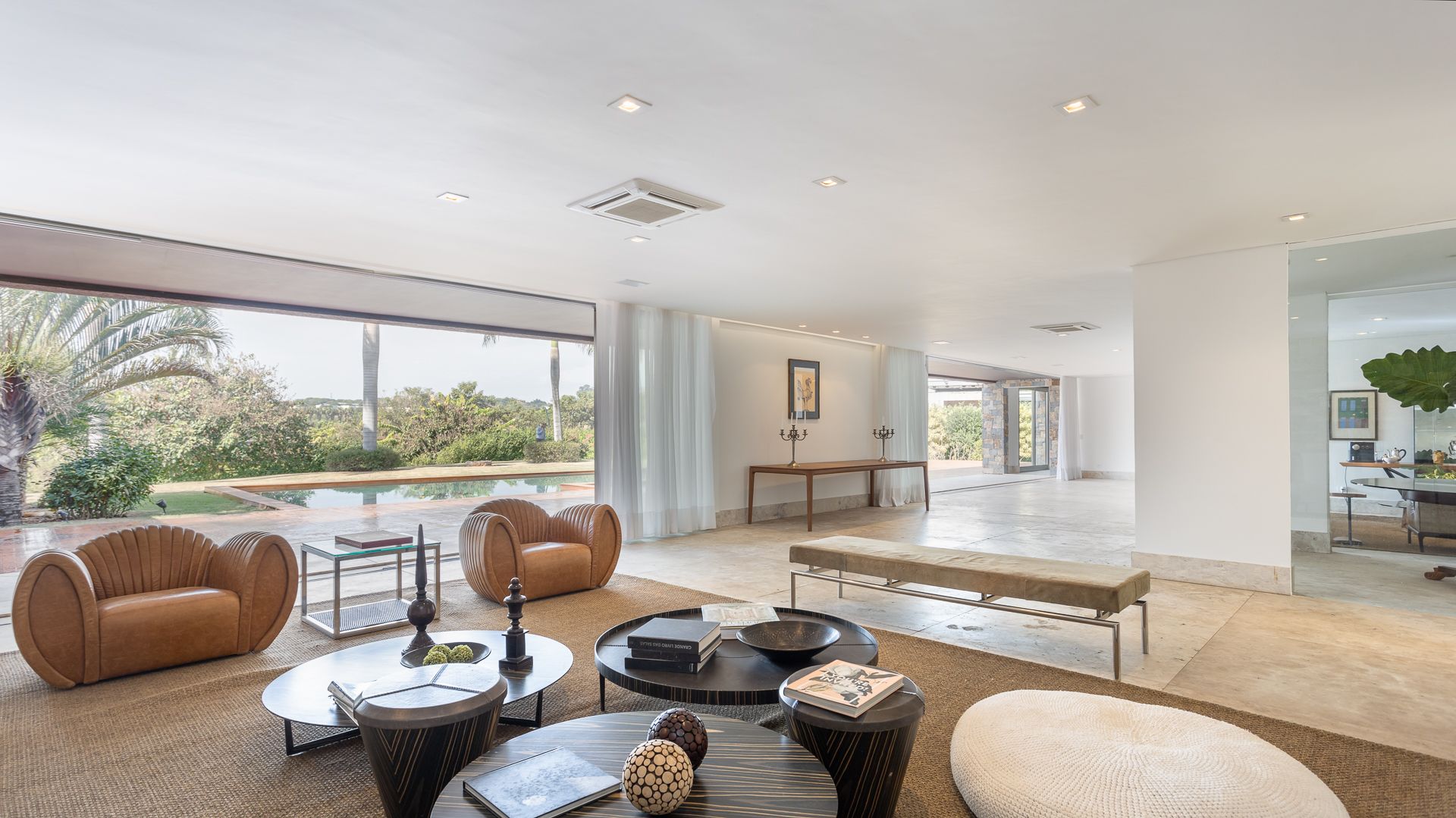 Em um terreno de 2.569 m², esta casa mobiliada na Fazenda Boa Vista entrega 1.900 m² com um projeto de linhas contemporâneas e fachada em aço Corten. O eixo social é generoso: living para 5 ambientes e 6 varandas, criando percursos fluidos entre interior e exterior. A ala íntima reúne 5 suítes, sendo a máster com walk-in closet e banheiros Sr. e Sra.; todos os ambientes são climatizados e recebem acabamentos em madeira e pedra. No lazer, um spa completo com sauna seca e úmida complementa a área externa. Garagem para 10 carros. Venda: R$ 35.000.000. No condomínio, a menos de 1 hora de São Paulo, o morador encontra golfe, polo, tênis e beach tênis, além de piscina, academia, kids club e fazendinha — infraestrutura com heliponto, parque dos esportes, market/lojas, restaurantes, spa, sala fitness e segurança 24h.