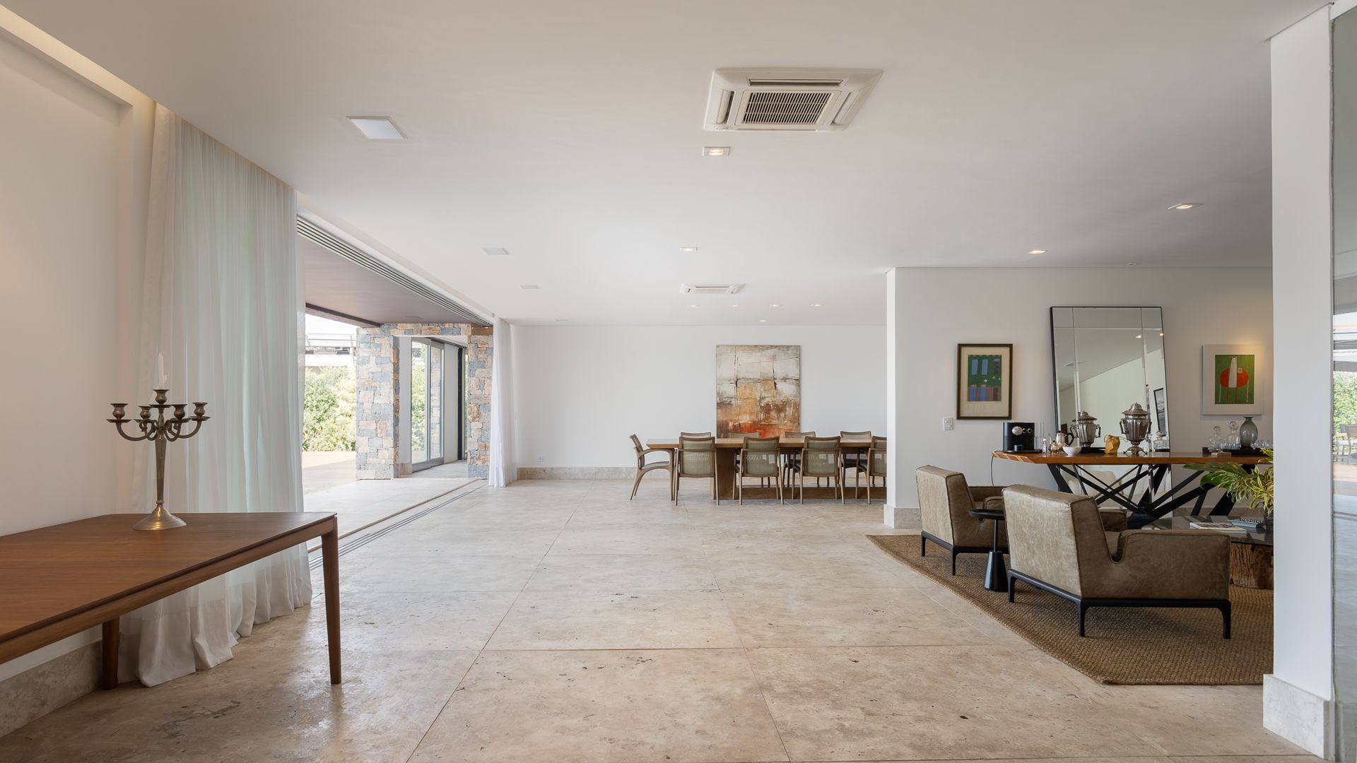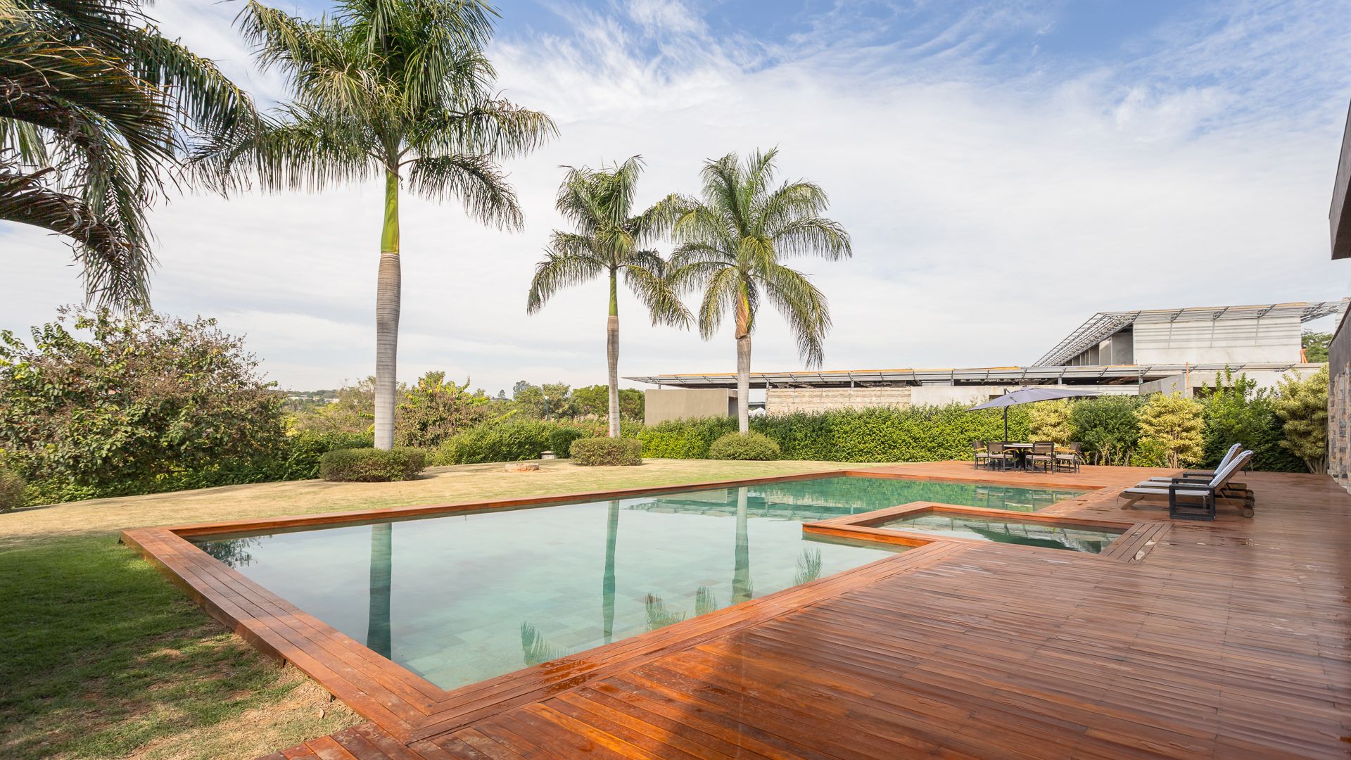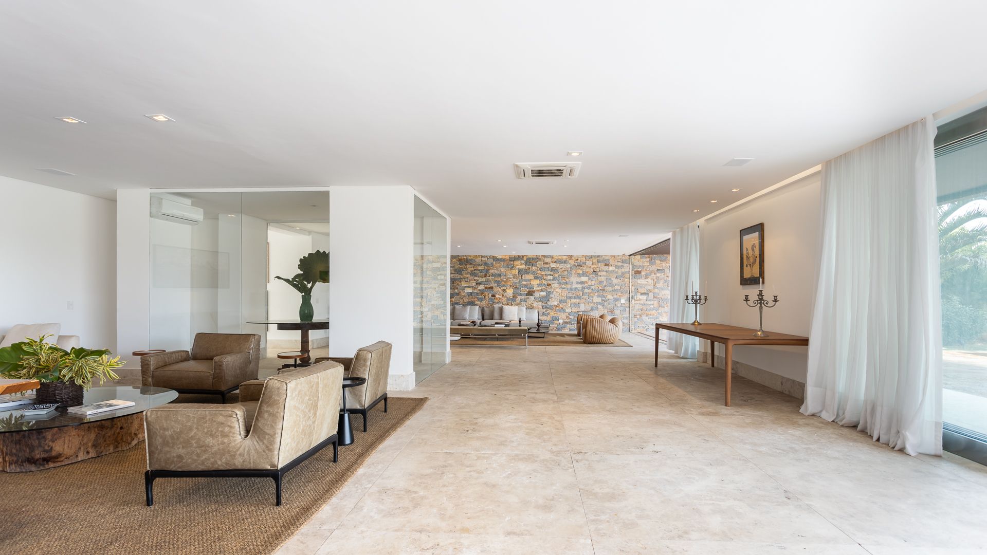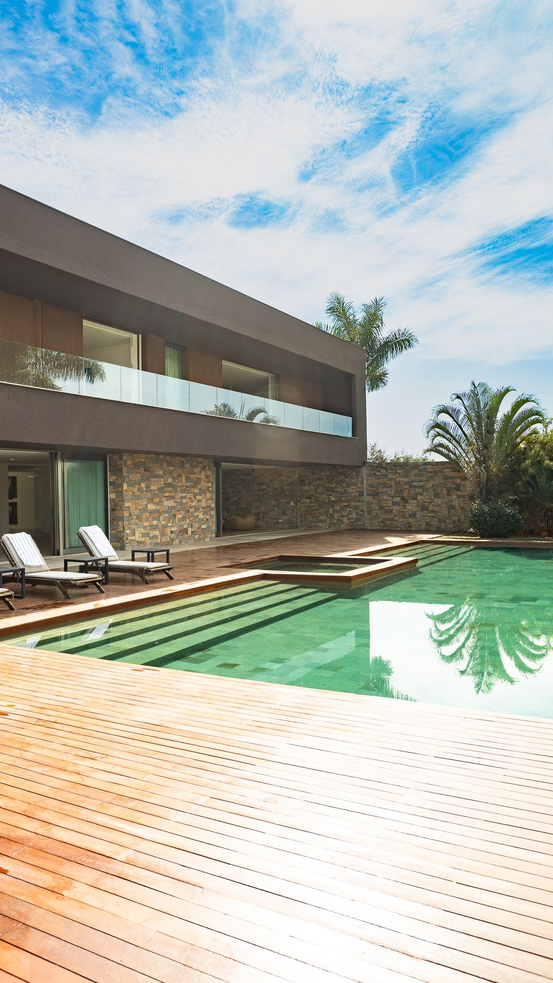 Em um terreno de 2.569 m², esta casa mobiliada na Fazenda Boa Vista entrega 1.900 m² com um projeto de linhas contemporâneas e fachada em aço Corten. O eixo social é generoso: living para 5 ambientes e 6 varandas, criando percursos fluidos entre interior e exterior. A ala íntima reúne 5 suítes, sendo a máster com walk-in closet e banheiros Sr. e Sra.; todos os ambientes são climatizados e recebem acabamentos em madeira e pedra. No lazer, um spa completo com sauna seca e úmida complementa a área externa. Garagem para 10 carros. Venda: R$ 35.000.000. No condomínio, a menos de 1 hora de São Paulo, o morador encontra golfe, polo, tênis e beach tênis, além de piscina, academia, kids club e fazendinha — infraestrutura com heliponto, parque dos esportes, market/lojas, restaurantes, spa, sala fitness e segurança 24h.
