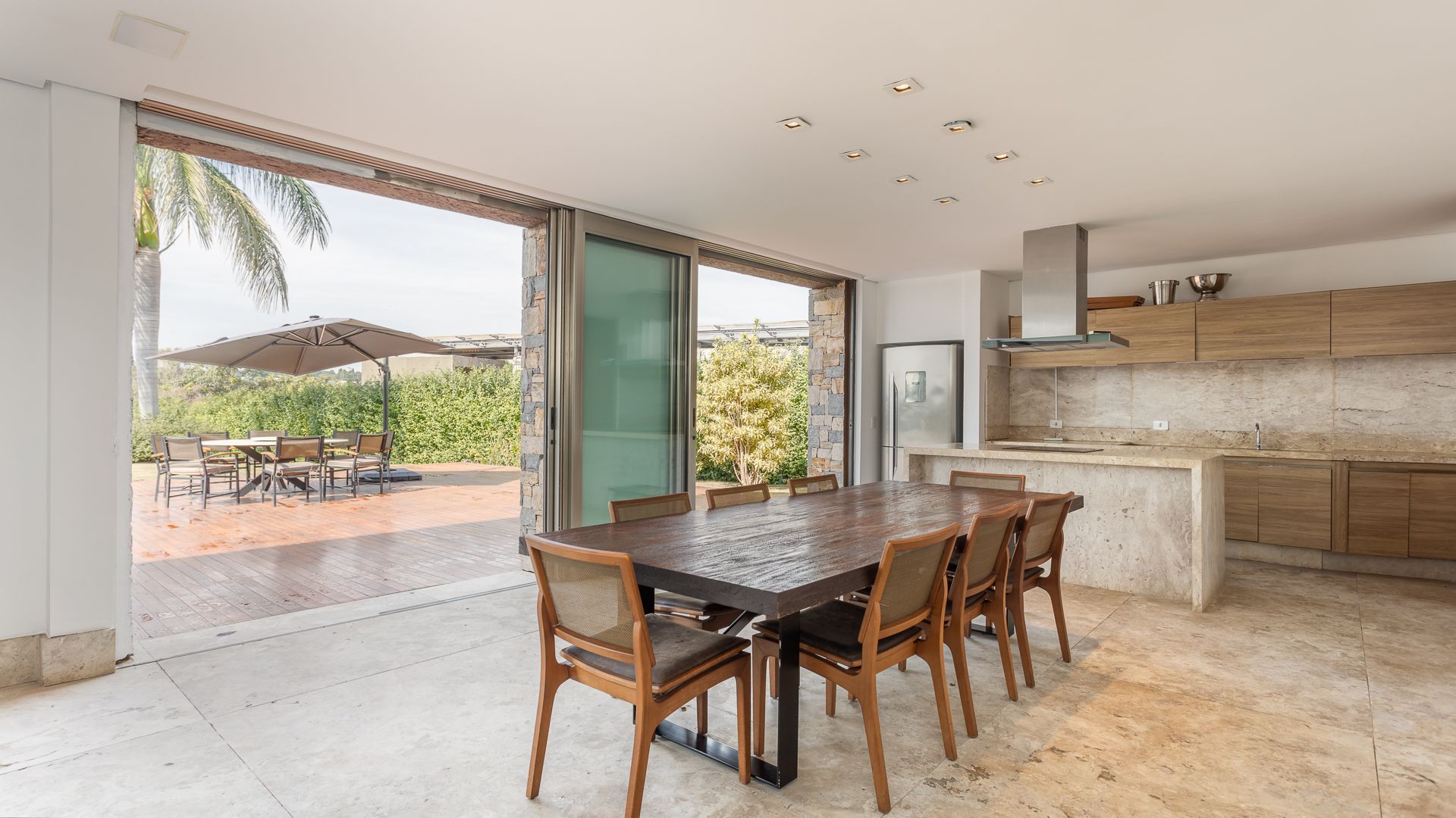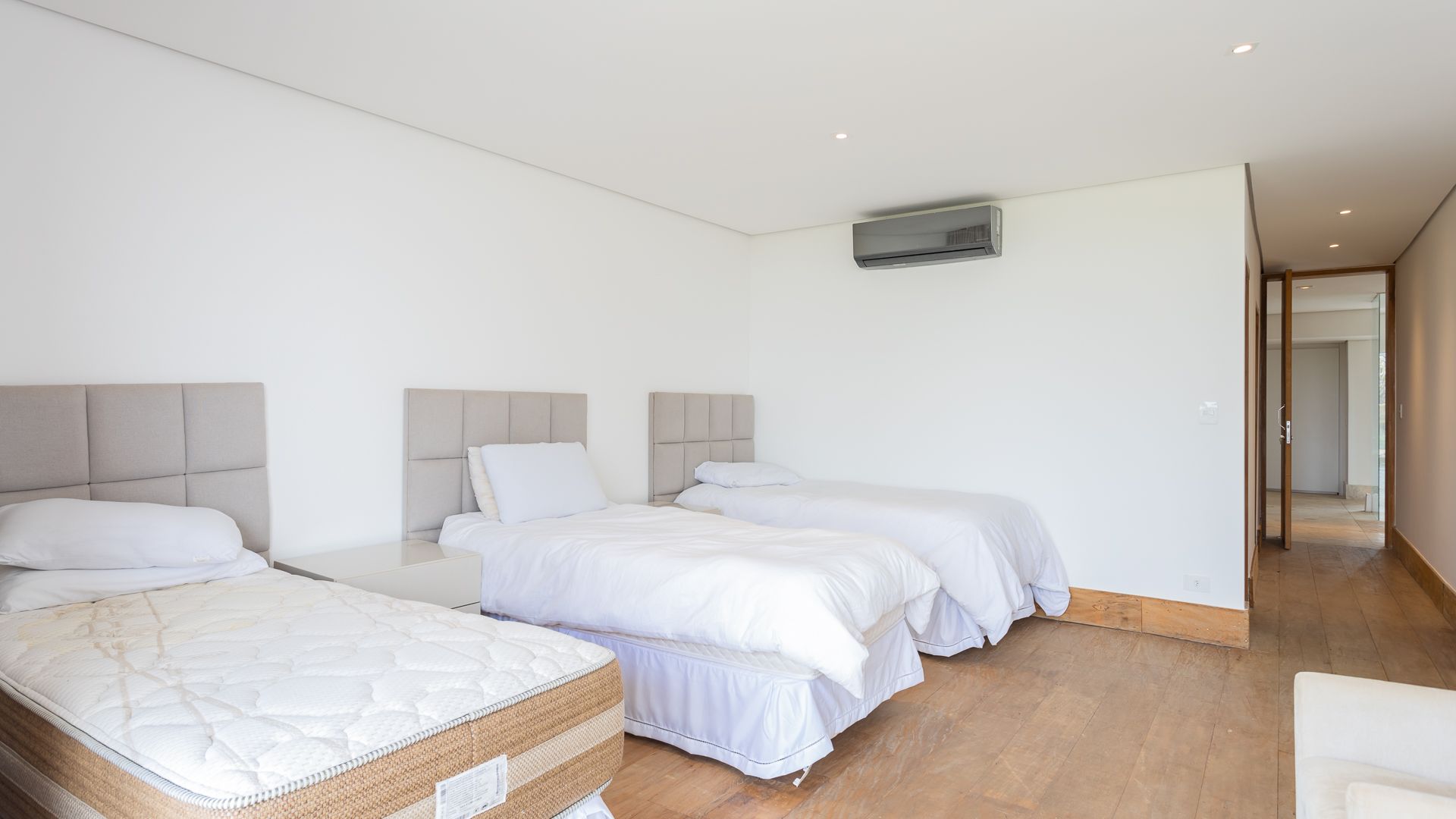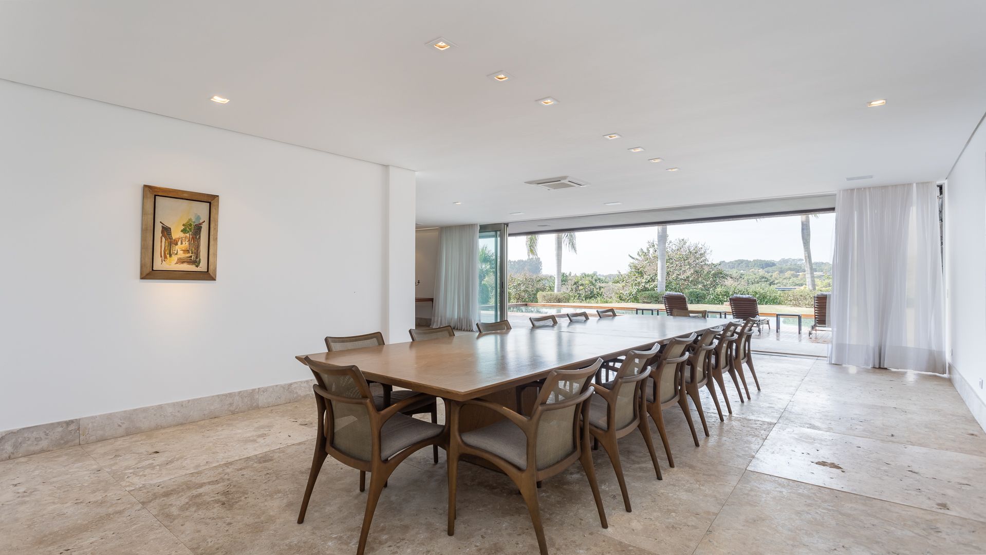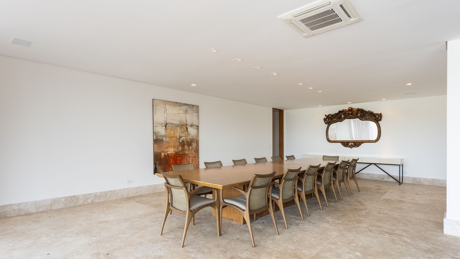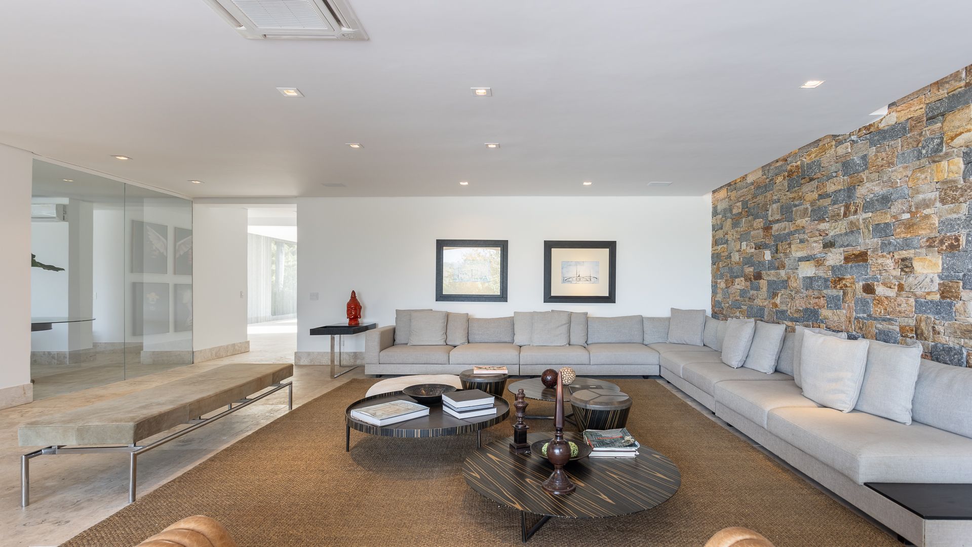 Em um terreno de 2.569 m², esta casa mobiliada na Fazenda Boa Vista entrega 1.900 m² com um projeto de linhas contemporâneas e fachada em aço Corten. O eixo social é generoso: living para 5 ambientes e 6 varandas, criando percursos fluidos entre interior e exterior. A ala íntima reúne 5 suítes, sendo a máster com walk-in closet e banheiros Sr. e Sra.; todos os ambientes são climatizados e recebem acabamentos em madeira e pedra. No lazer, um spa completo com sauna seca e úmida complementa a área externa. Garagem para 10 carros. Venda: R$ 35.000.000. No condomínio, a menos de 1 hora de São Paulo, o morador encontra golfe, polo, tênis e beach tênis, além de piscina, academia, kids club e fazendinha — infraestrutura com heliponto, parque dos esportes, market/lojas, restaurantes, spa, sala fitness e segurança 24h.