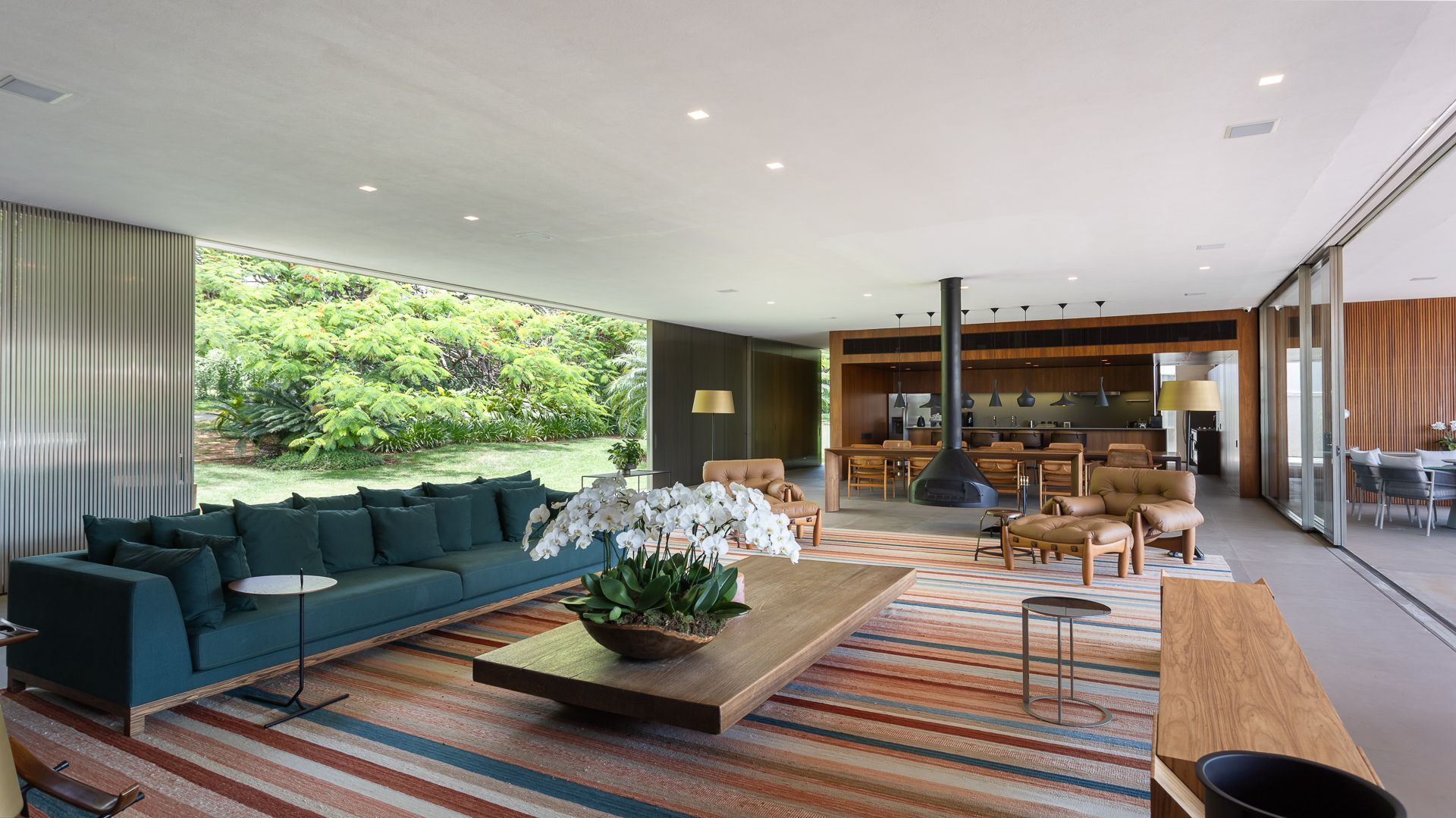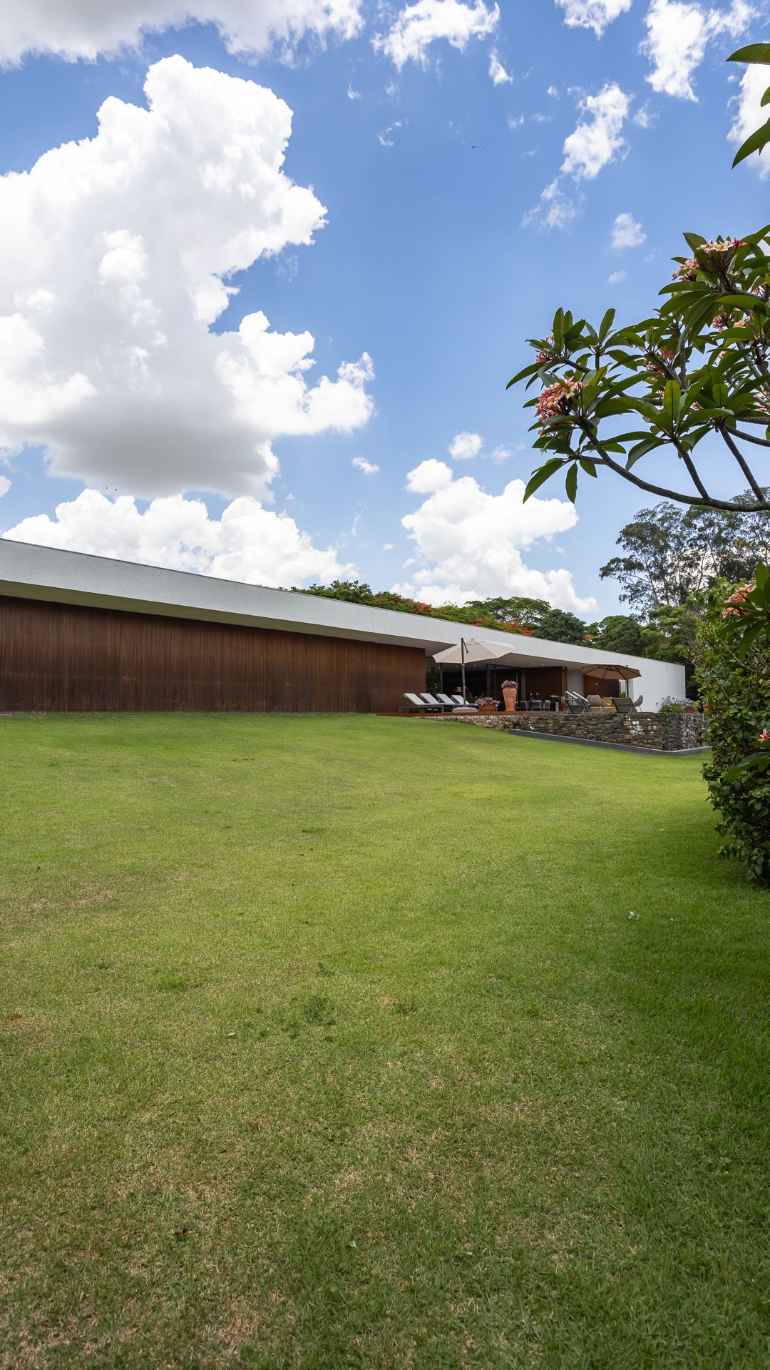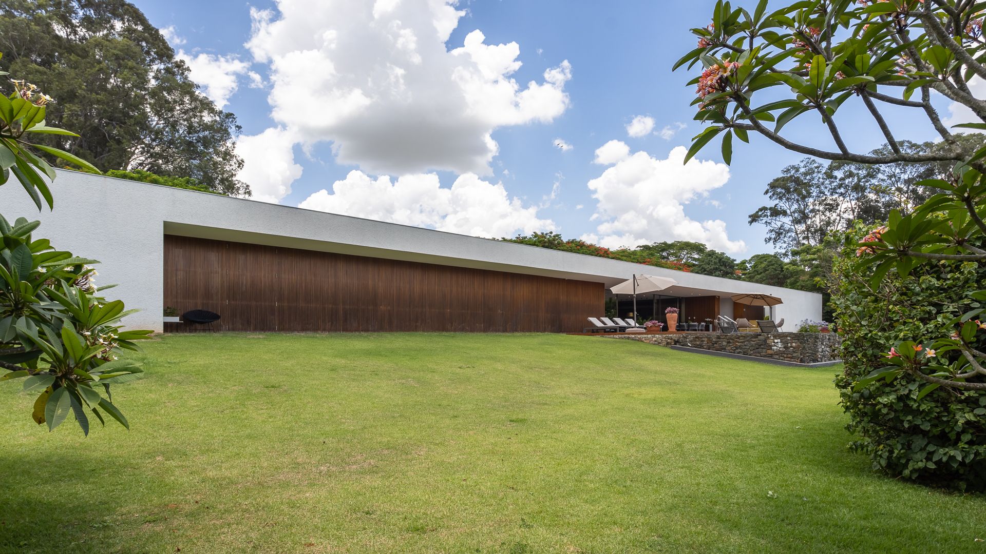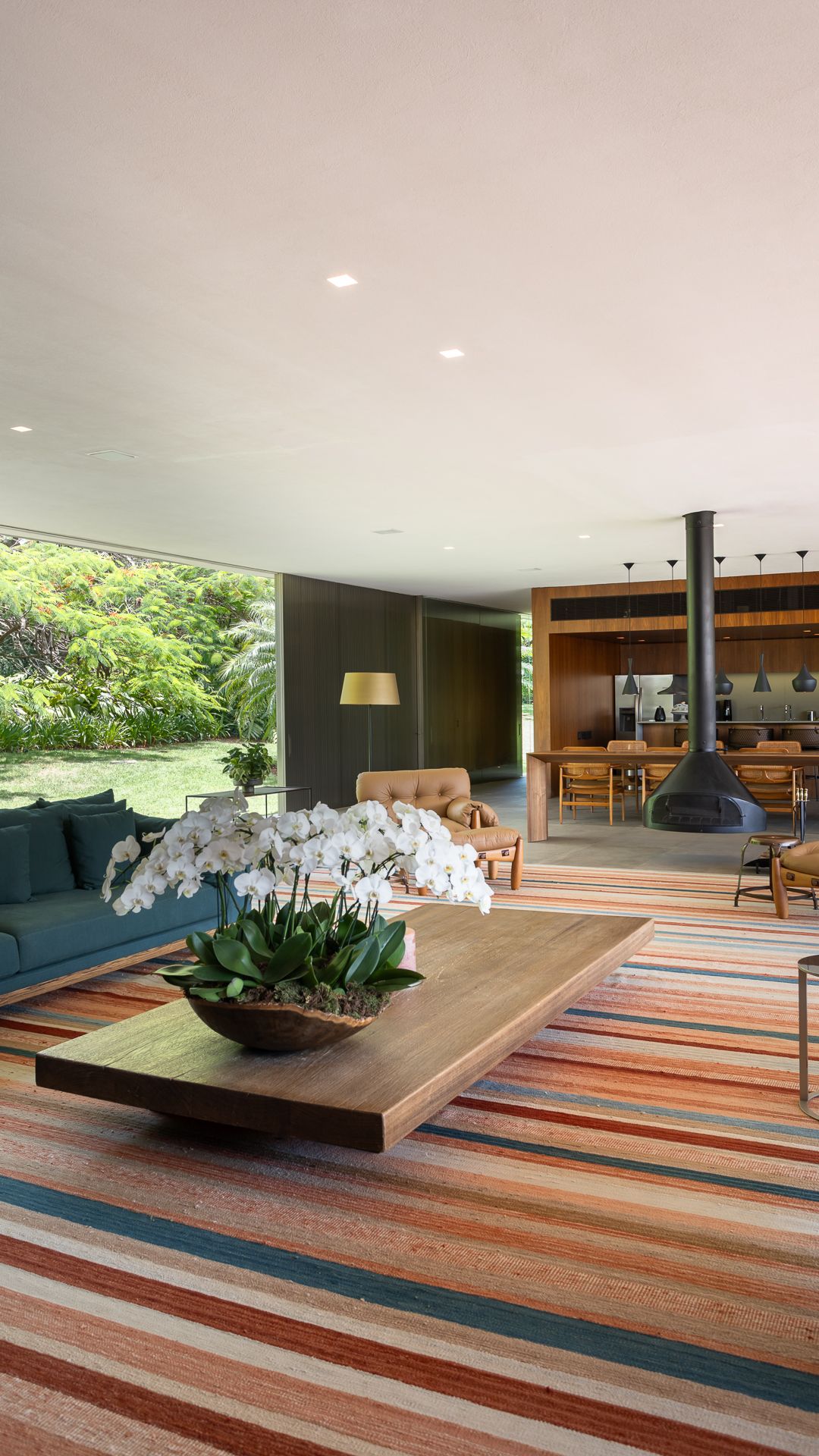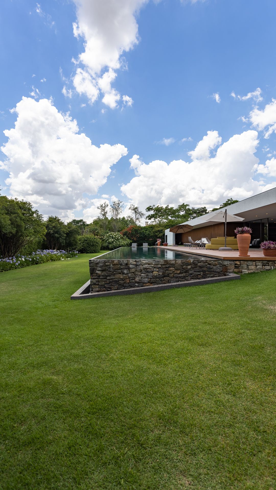 Assinada pelo arquiteto Marcio Kogan, esta residência na Fazenda Boa Vista tem fachada horizontal e programa 100% térreo em lote de 3.950 m². Os ambientes foram pensados em conceito aberto: o living com janelas piso-teto se prolonga ao deck e à piscina, formando um único eixo de convivência; cozinha e bar integram o social para receber com praticidade. A ala íntima traz 4 suítes com acesso também pelo exterior. No final do corredor, um spa com sala de ginástica e sauna completa o lazer privado. Área construída/privativa: 1.010 m² • 4 vagas. Venda: R$ 39.900.000.