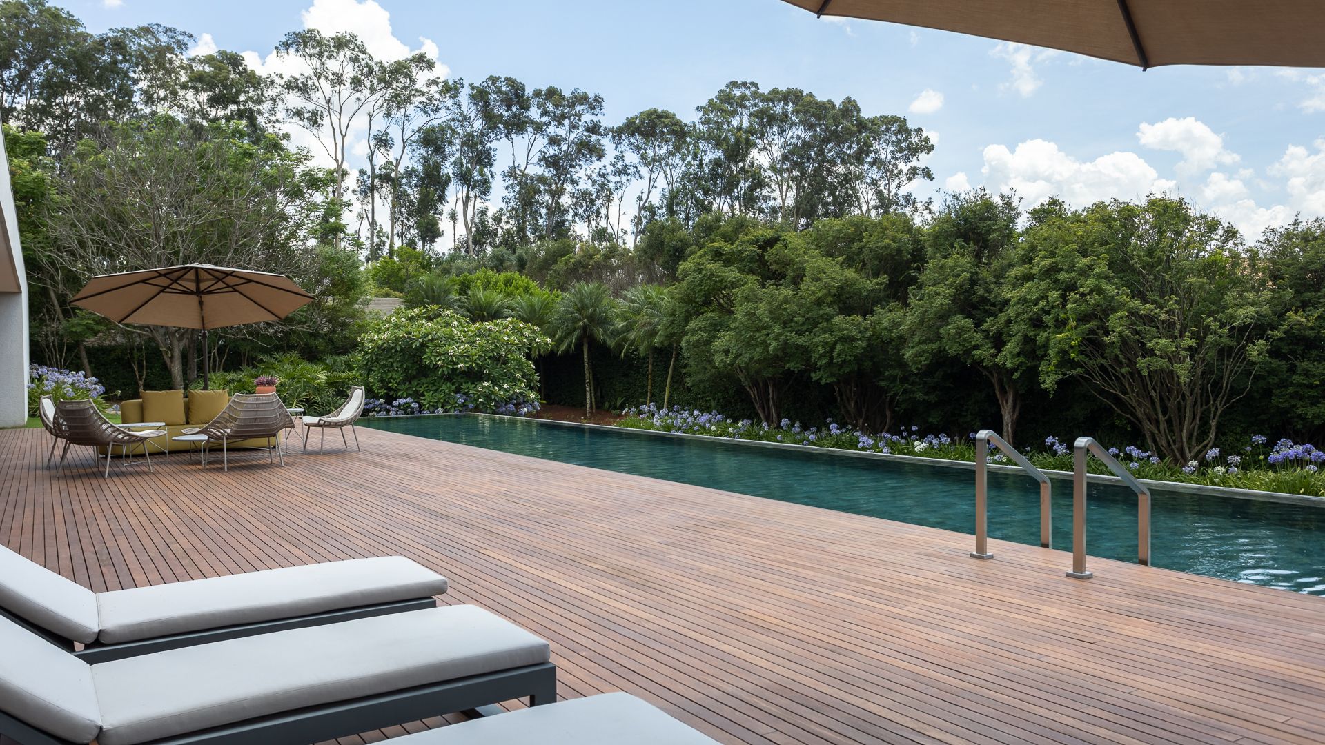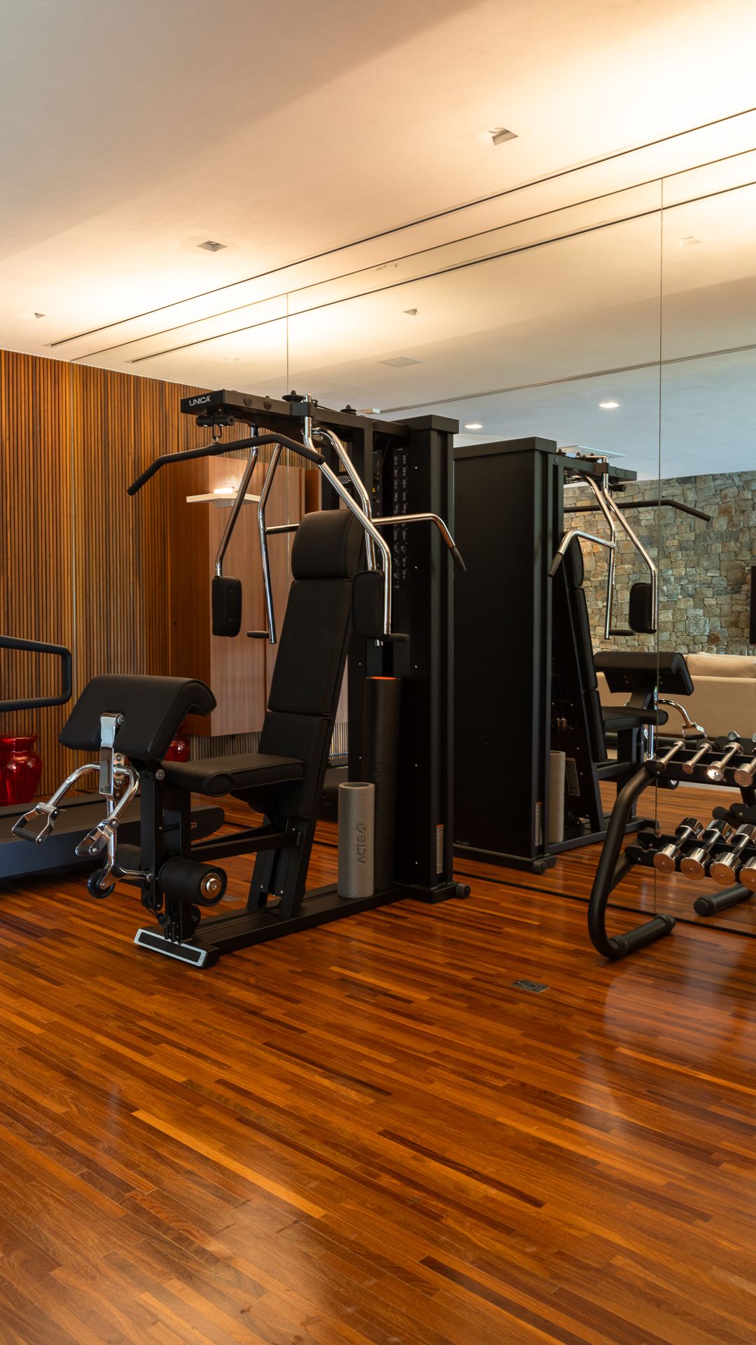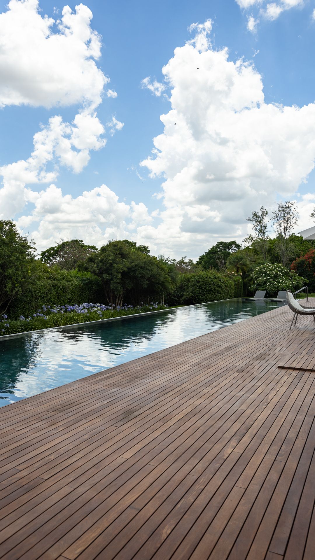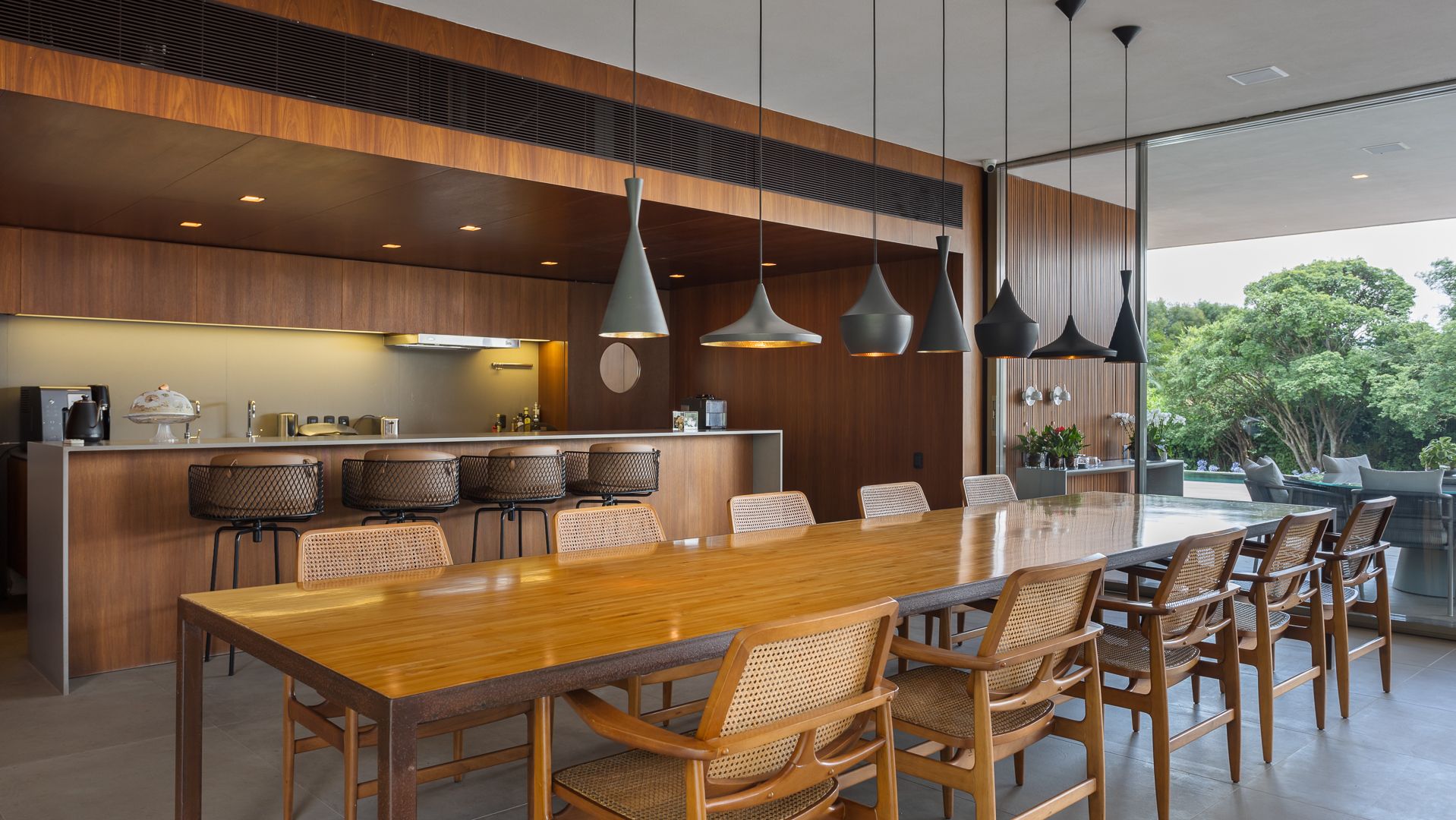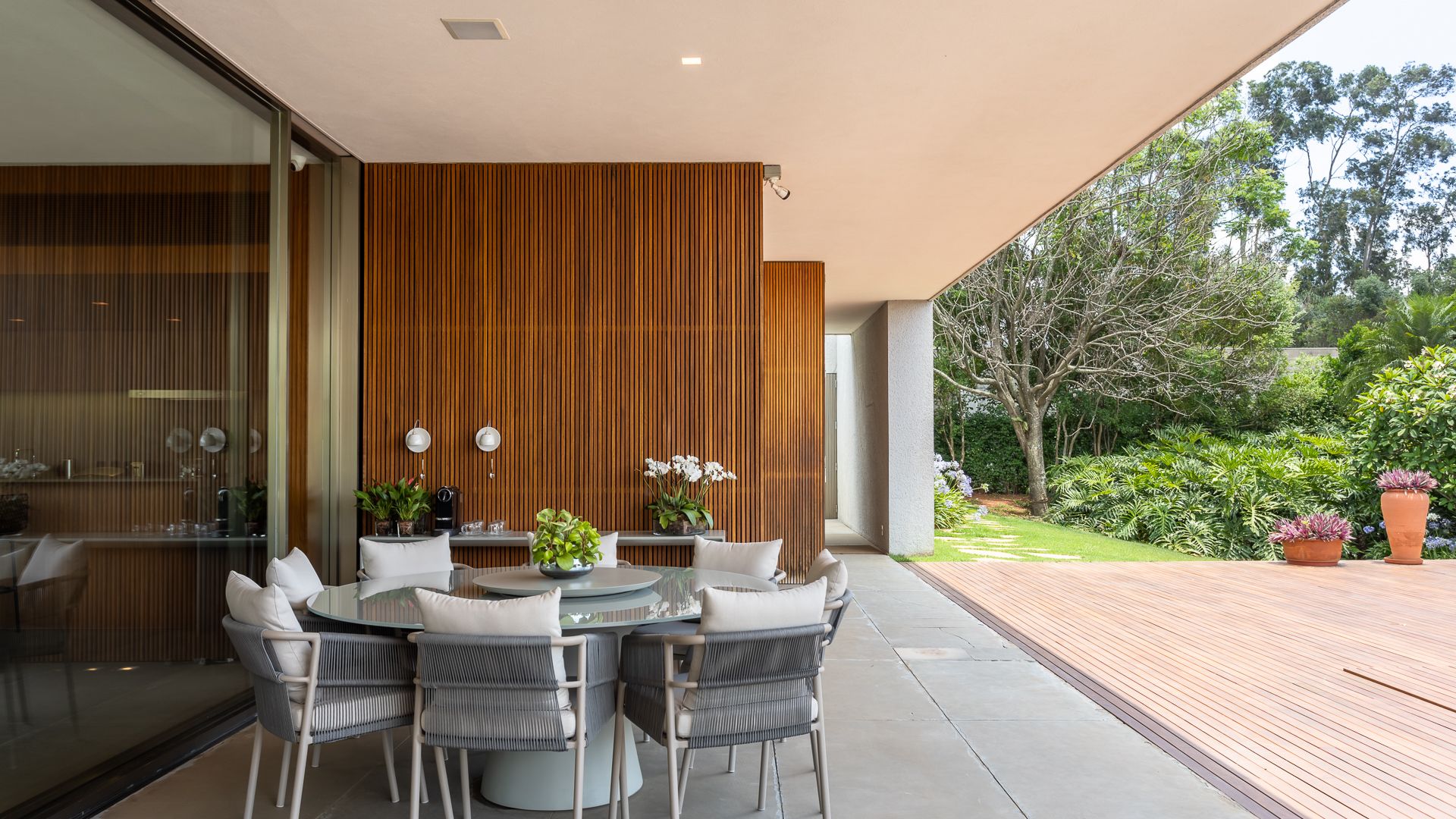 Assinada pelo arquiteto Marcio Kogan, esta residência na Fazenda Boa Vista tem fachada horizontal e programa 100% térreo em lote de 3.950 m². Os ambientes foram pensados em conceito aberto: o living com janelas piso-teto se prolonga ao deck e à piscina, formando um único eixo de convivência; cozinha e bar integram o social para receber com praticidade. A ala íntima traz 4 suítes com acesso também pelo exterior. No final do corredor, um spa com sala de ginástica e sauna completa o lazer privado. Área construída/privativa: 1.010 m² • 4 vagas. Venda: R$ 39.900.000.