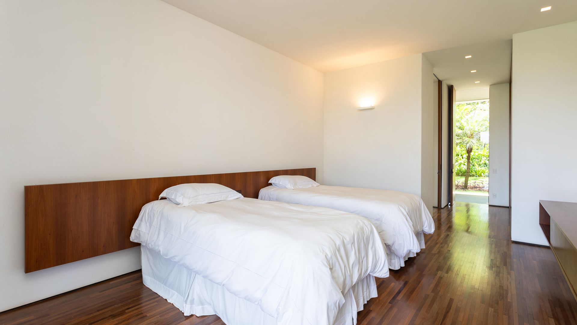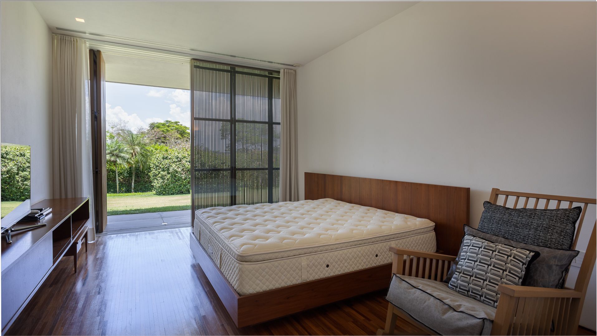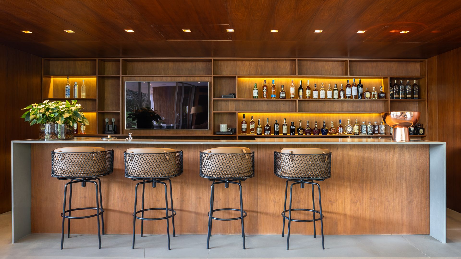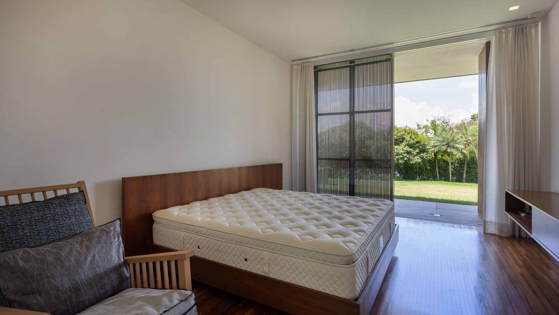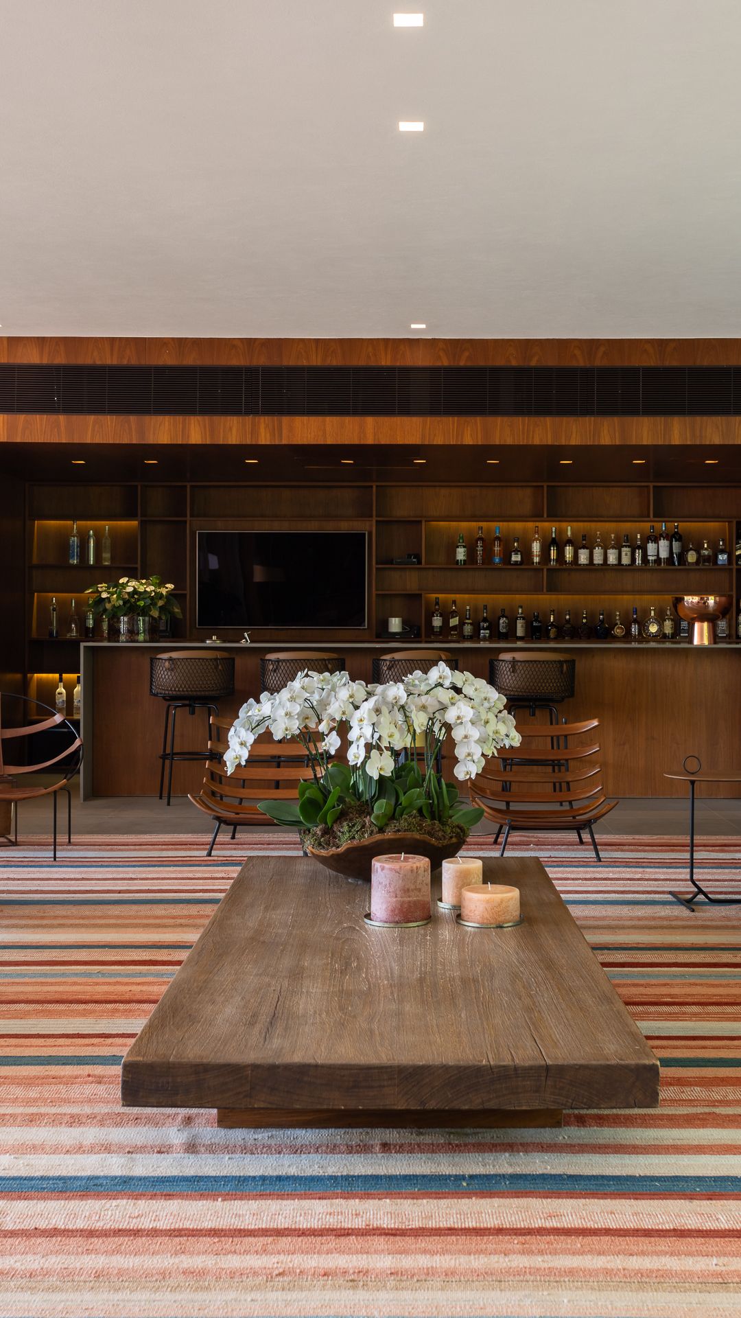 Assinada pelo arquiteto Marcio Kogan, esta residência na Fazenda Boa Vista tem fachada horizontal e programa 100% térreo em lote de 3.950 m². Os ambientes foram pensados em conceito aberto: o living com janelas piso-teto se prolonga ao deck e à piscina, formando um único eixo de convivência; cozinha e bar integram o social para receber com praticidade. A ala íntima traz 4 suítes com acesso também pelo exterior. No final do corredor, um spa com sala de ginástica e sauna completa o lazer privado. Área construída/privativa: 1.010 m² • 4 vagas. Venda: R$ 39.900.000.