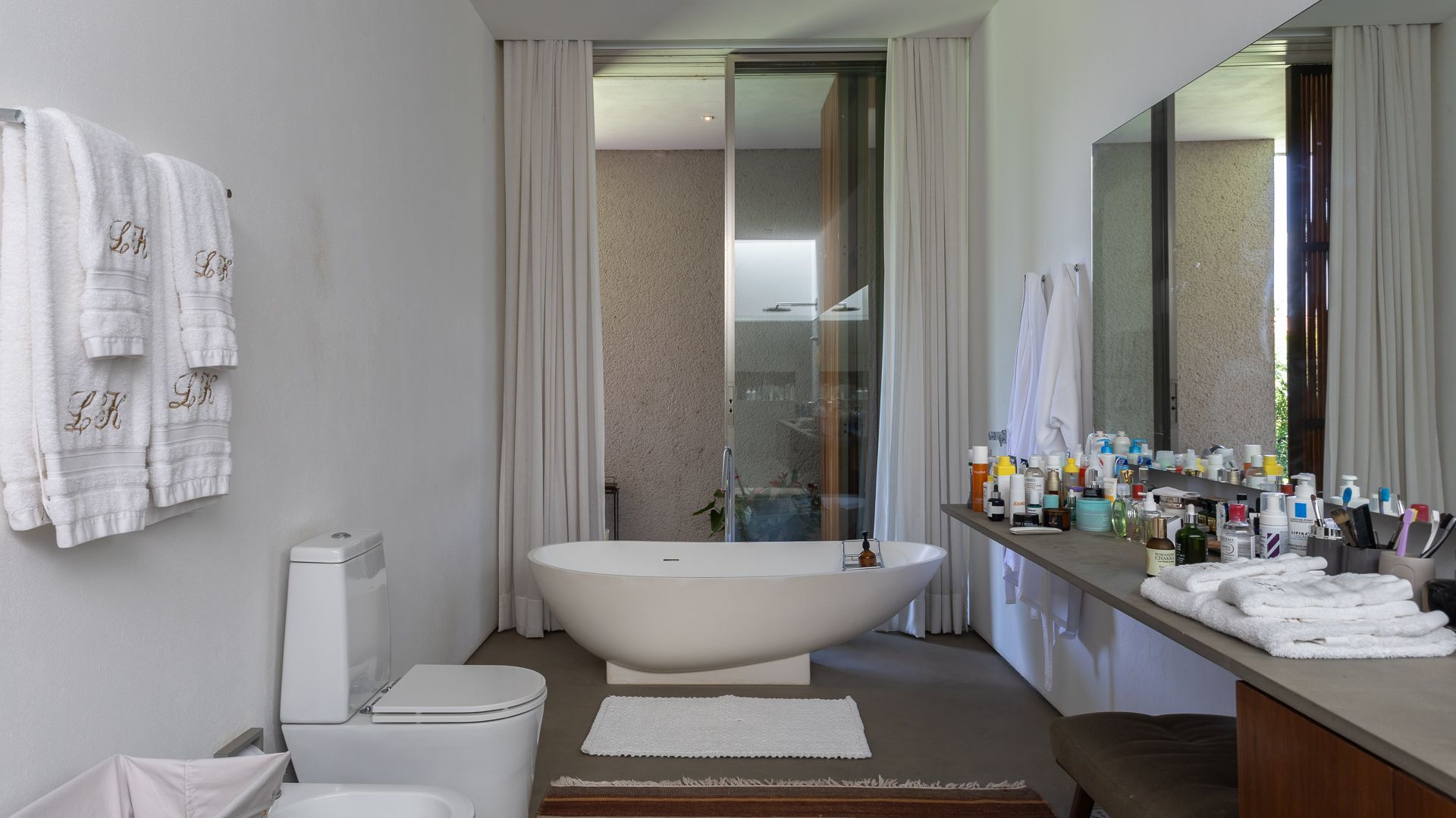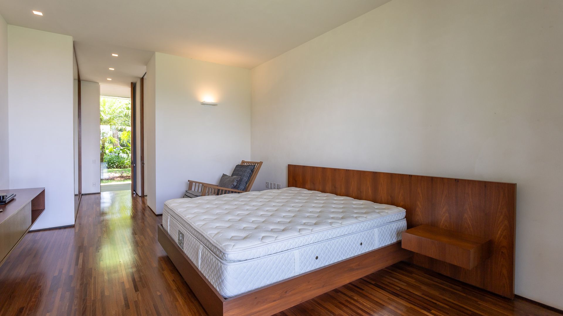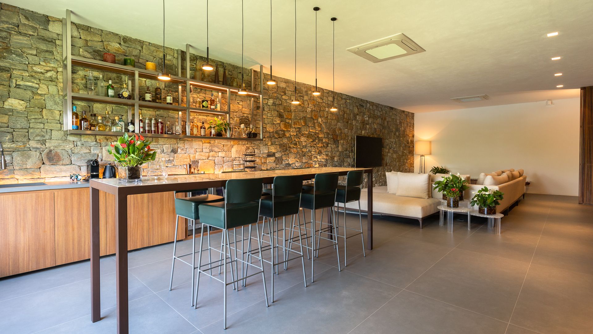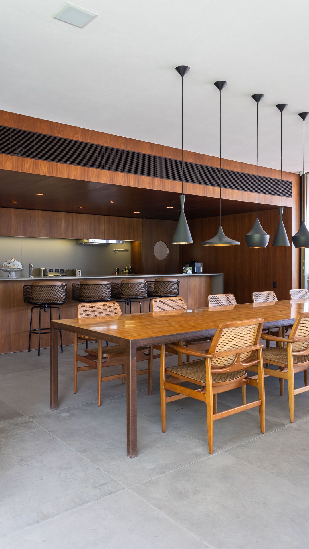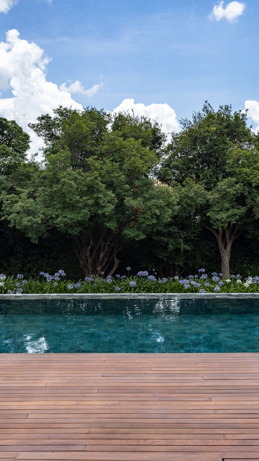 Assinada pelo arquiteto Marcio Kogan, esta residência na Fazenda Boa Vista tem fachada horizontal e programa 100% térreo em lote de 3.950 m². Os ambientes foram pensados em conceito aberto: o living com janelas piso-teto se prolonga ao deck e à piscina, formando um único eixo de convivência; cozinha e bar integram o social para receber com praticidade. A ala íntima traz 4 suítes com acesso também pelo exterior. No final do corredor, um spa com sala de ginástica e sauna completa o lazer privado. Área construída/privativa: 1.010 m² • 4 vagas. Venda: R$ 39.900.000.