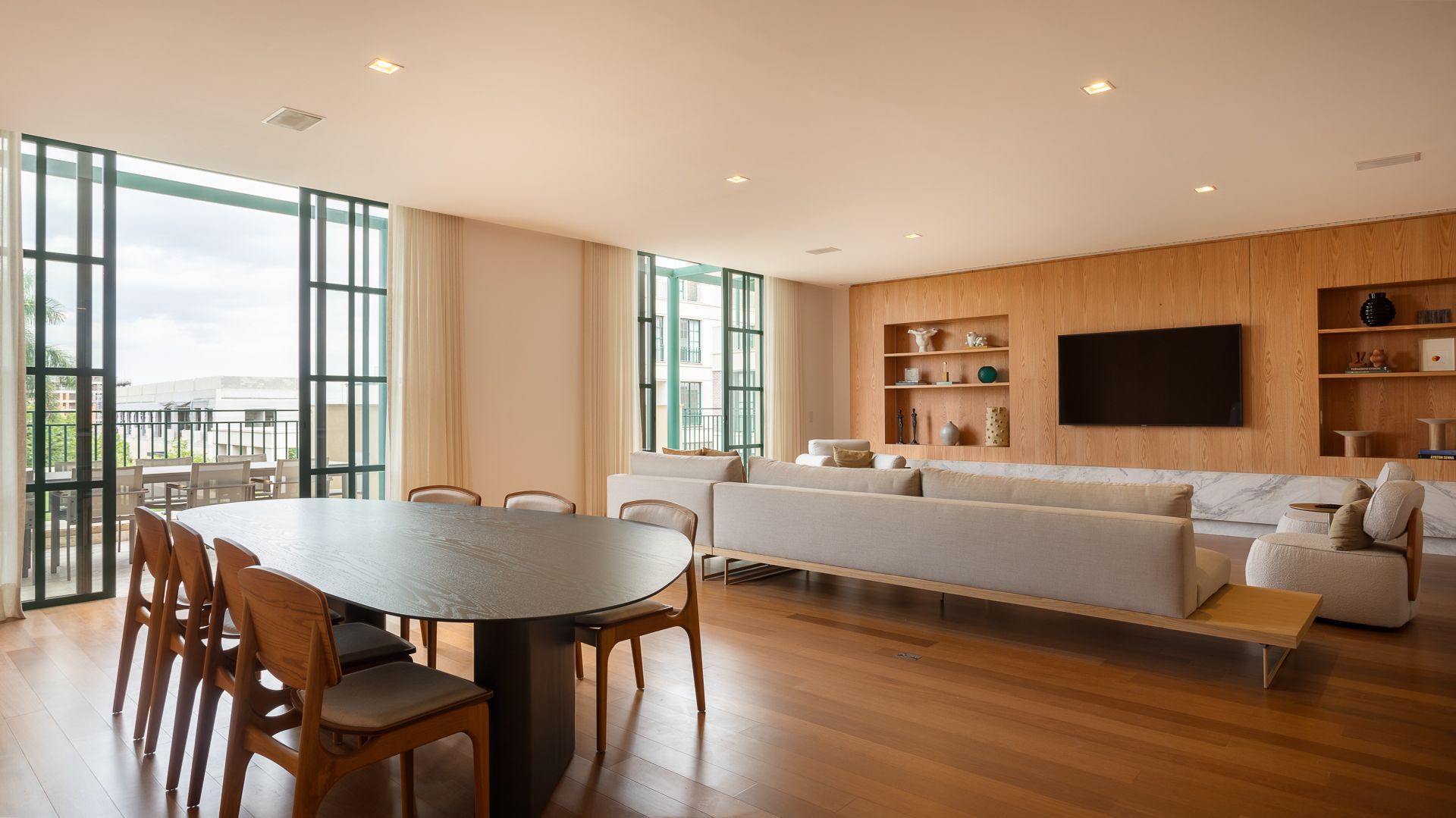 No Boa Vista Village (Porto Feliz/SP), este apartamento mobiliado e decorado pela arquiteta Carolina Cerveline entrega 370 m² com planta que privilegia integração e luz natural: living e sala de jantar se conectam à cozinha em conceito aberto e ao terraço, criando um eixo social contínuo para receber. O programa íntimo reúne 3 suítes; são 3 banheiros no total e 3 vagas de garagem. Entrega pronto para uso, com utensílios de cozinha, roupa de cama/banho e churrasqueira a gás — é chegar e aproveitar. Venda: R$ 13.000.000. Condomínio com infraestrutura de resort: piscina de ondas para surfe, centros esportivos multiuso, academia, spa, kids center (além de heliponto, lojas/market, restaurantes e portaria/vigilância 24h). Condomínio: R$ 10.928,85/mês • IPTU: R$ 978,88/ano.