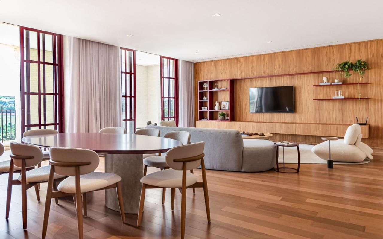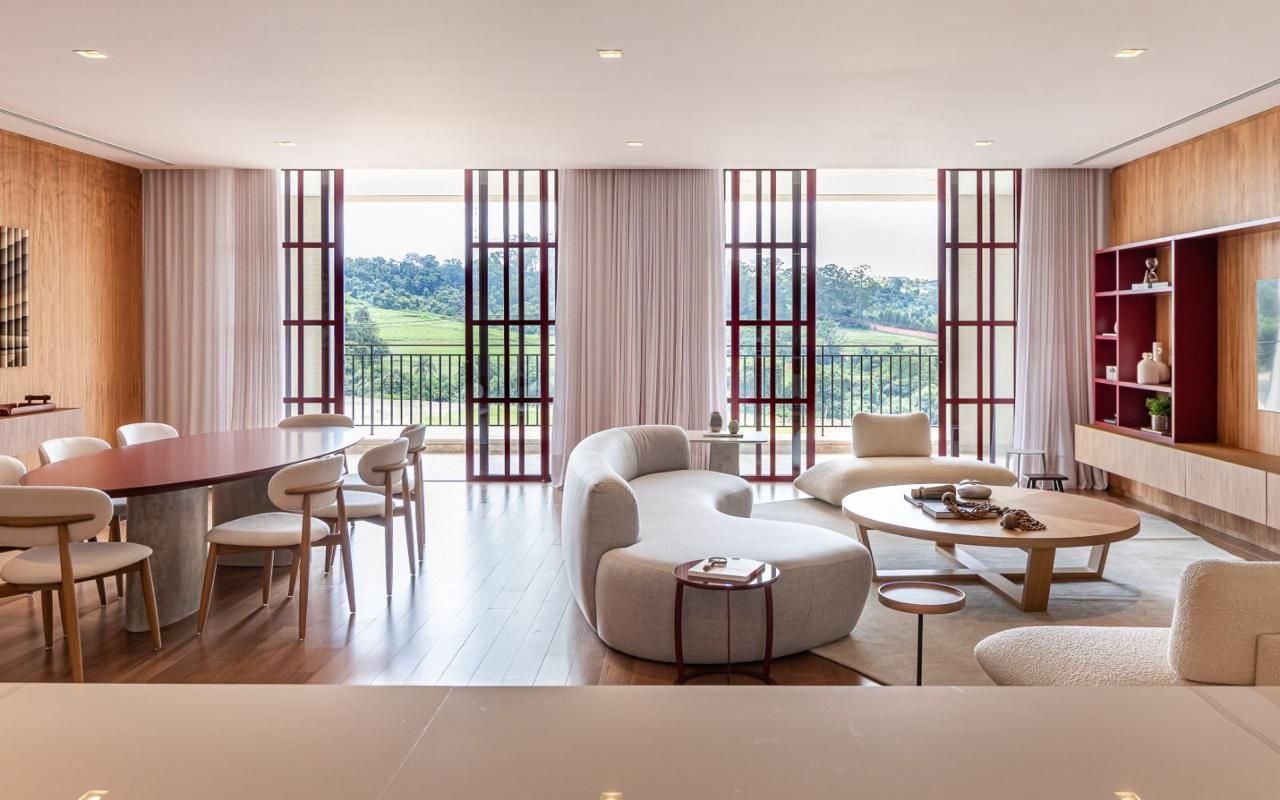 No Boa Vista Village (Porto Feliz/SP), este apartamento mobiliado e decorado com projeto de Sig Bergamin privilegia integração e luz natural. Em 304,31 m² privativos, o social combina sala de TV, jantar e cozinha conectadas à varanda, criando um eixo contínuo para receber. A ala íntima reúne 2 suítes; são 3 banheiros ao todo e 3 vagas de garagem. Diferencial: o imóvel possui o título da Piscina de Ondas (surfe) do Village. Venda: R$ 9.800.000 • Aluguel: R$ 50.000.