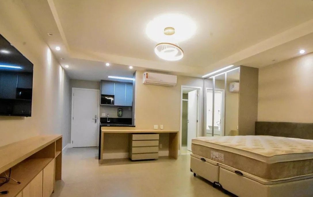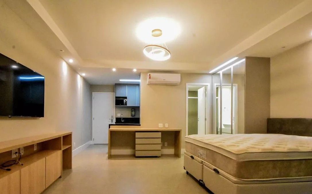 Descubra o conforto e a conveniência deste charmoso studio mobiliado de 41m², projetado para maximizar cada metro quadrado e proporcionar um estilo de vida moderno e prático 🏡. Com um layout cuidadosamente planejado, este espaço é o refúgio perfeito para solteiros ou casais que valorizam comodidade e funcionalidade. O ambiente integra um acolhedor quarto equipado com armários embutidos, ideal para manter tudo organizado sem abrir mão do estilo. A cozinha planejada com armários modernos torna a preparação das suas refeições diárias uma experiência ainda mais prazerosa 🍳. Este studio oferece um banheiro bem projetado, com box e armários, garantindo praticidade e elegância no dia a dia 🚿. O sistema de ar-condicionado garante o clima perfeito em todas as estações e o chuveiro a gás proporciona aquele banho relaxante após um dia agitado. Para completar, o imóvel dispõe de uma vaga de garagem, trazendo a comodidade de estacionar com segurança e facilidade. Encante-se com esse espaço onde cada detalhe foi pensado para atender suas necessidades com muito bom gosto e funcionalidade. Não perca a oportunidade de vivenciar tudo o que este studio pode oferecer! Agende já sua visita e surpreenda-se com seu novo lar 🗝️.