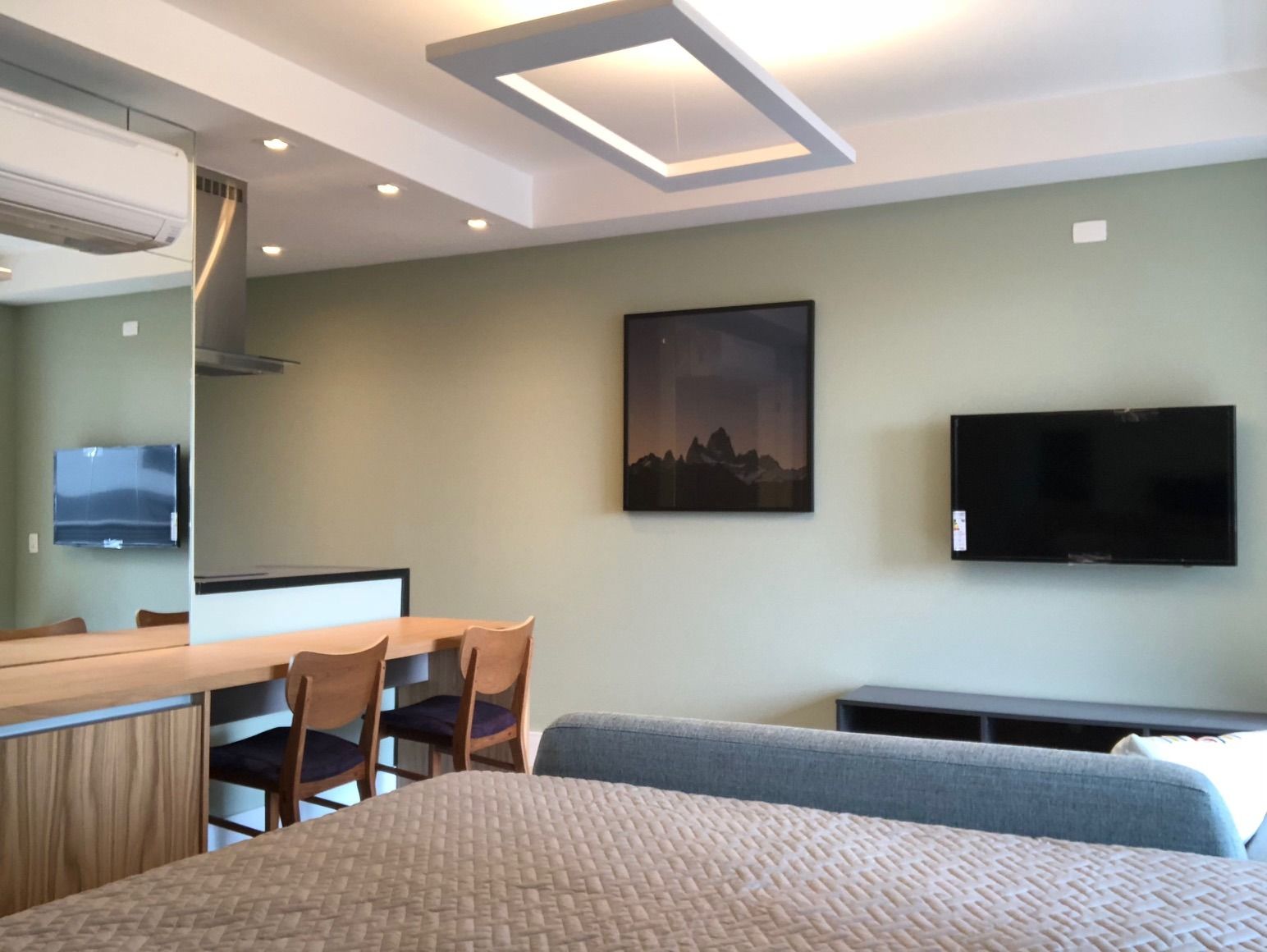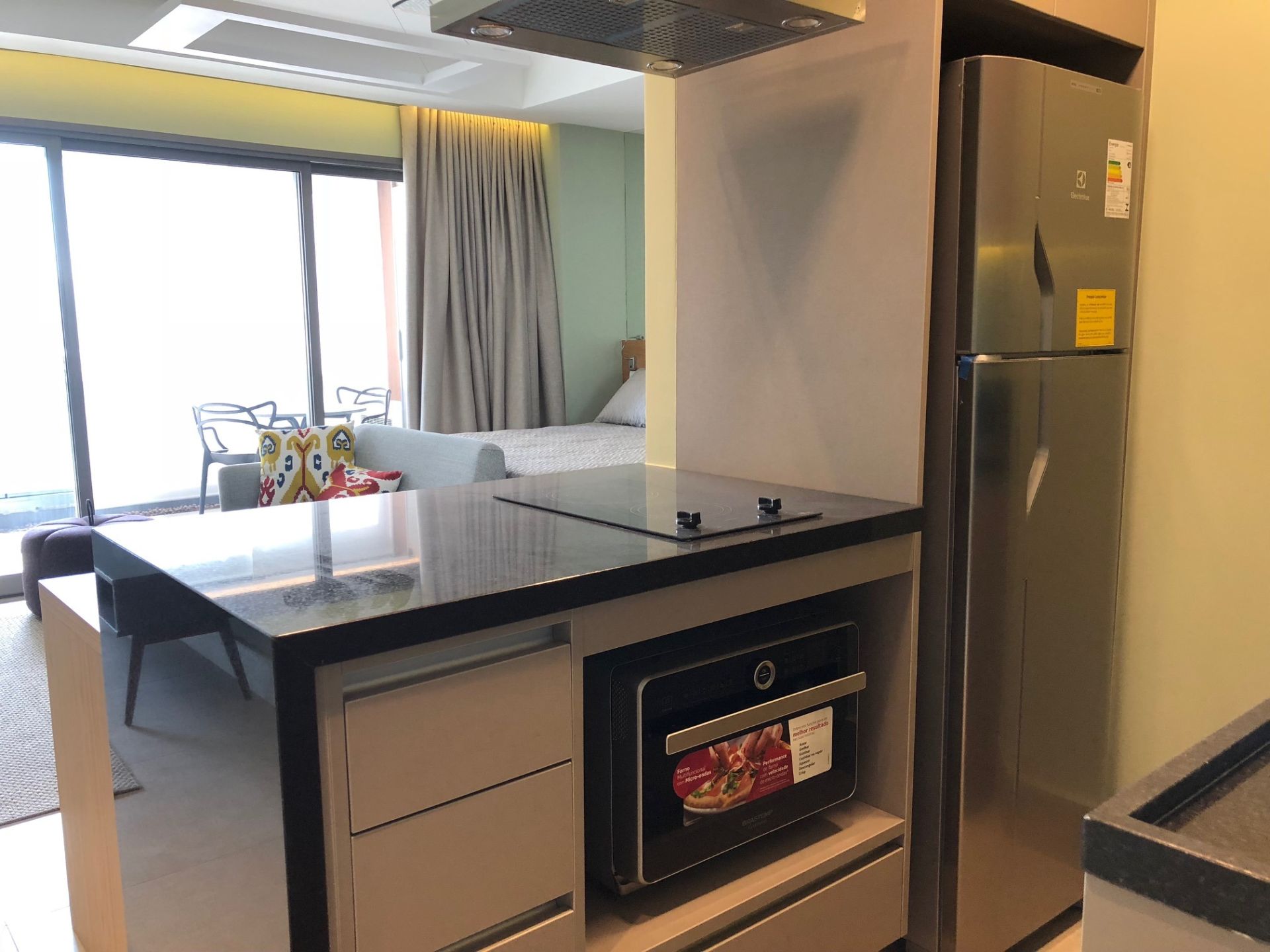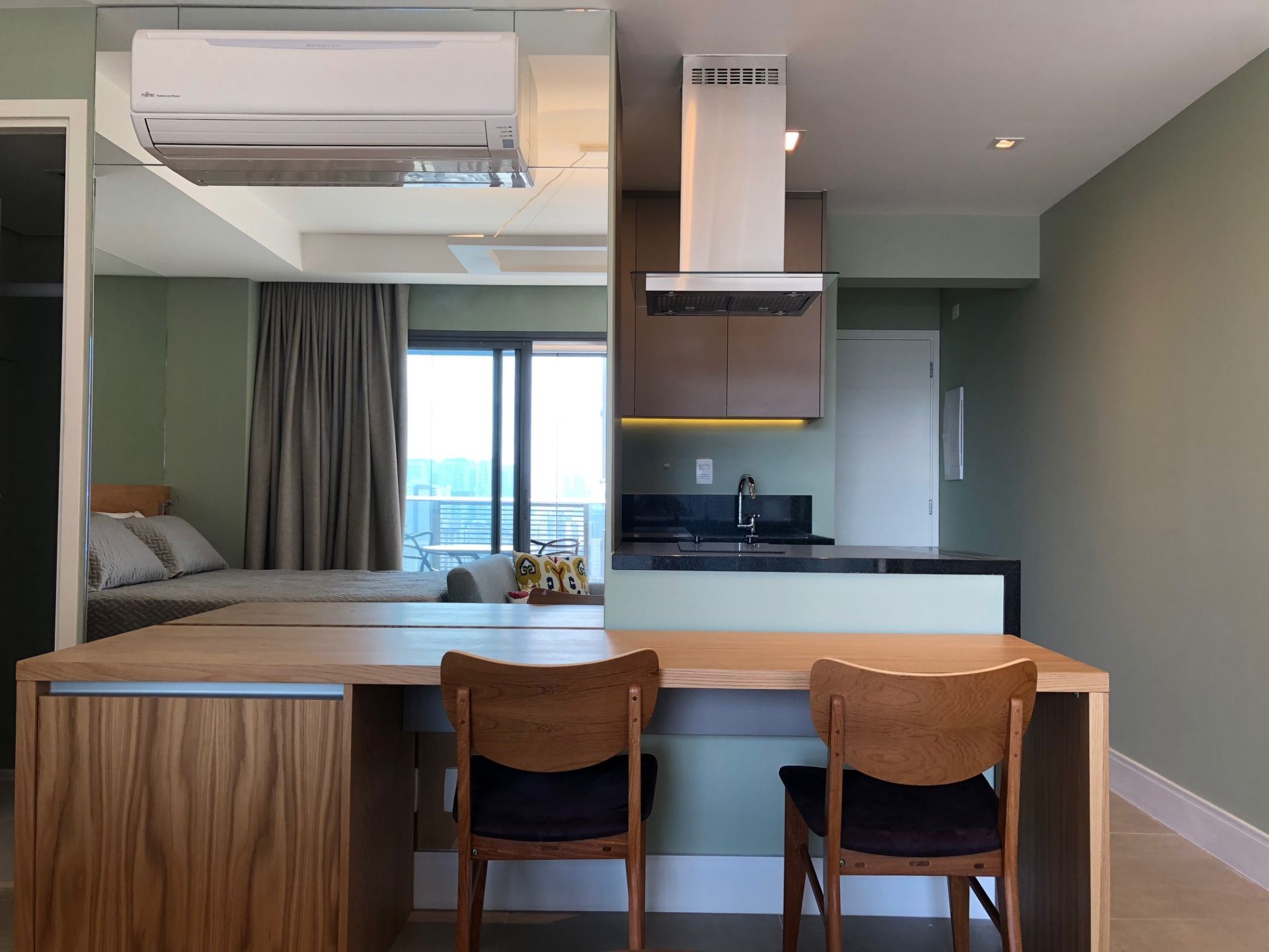 🌟 Este impecável studio de 43m² é a definição de conforto e estilo. Totalmente mobiliado e equipado com ar-condicionado, este espaço oferece a comodidade que você procura em um ambiente moderno e funcional. O apartamento possui um quarto suíte, proporcionando privacidade e praticidade no uso do único banheiro. A cozinha americana, repleta de armários embutidos, é perfeita para quem aprecia integração e funcionalidade sem abrir mão do design contemporâneo. O charme é complementado pela varanda espaçosa, com uma maravilhosa vista panorâmica da cidade, um verdadeiro convite para momentos de relaxamento ou para receber amigos. Para completar, o imóvel conta com uma vaga de garagem, garantindo segurança e tranquilidade. Não perca a oportunidade de morar neste incrível studio que combina elegância e conforto em cada detalhe. Agende já sua visita e descubra o prazer de viver em um lugar que é verdadeiramente a sua cara! 🏡✨