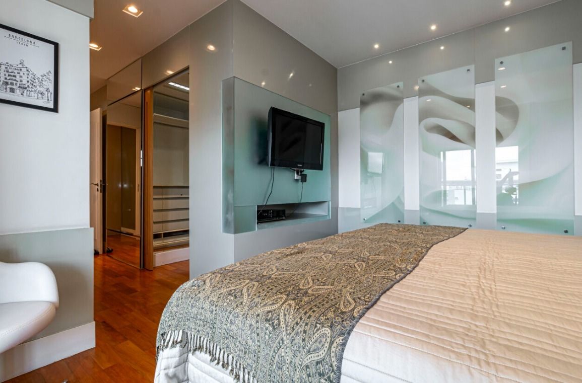 Este apartamento de 157m² é um verdadeiro paraíso de sofisticação e conforto, oferecendo uma experiência única de moradia. Ao entrar, você é acolhido por um amplo living projetado para receber e impressionar, onde o destaque fica por conta do pé direito duplo que proporciona uma abundância de luz natural e uma conexão direta com um terraço que oferece uma vista deslumbrante para o Parque Ibirapuera 🌳. A distribuição dos ambientes é pensada para otimizar o espaço e garantir a privacidade, com 2 suítes que prometem todo o conforto. A suíte master é um refúgio particular, equipada com um espaçoso walk-in closet, hidromassagem relaxante e uma varanda privativa que connuda a um respiro exclusivo ao ar livre. A segunda suíte, inteligente e funcional, se integra ao living por meio de uma divisória retrátil, adaptando-se facilmente às suas necessidades. A cozinha é um verdadeiro sonho para os amantes da gastronomia, completa com armários planejados e eletrodomésticos de alta qualidade, pronta para inspirar os melhores pratos. Complementando essa perfeita configuração, a área de serviço dispõe de dependências para empregados, garantindo um espaço funcional e otimizado para o dia a dia. Para estacionar sem preocupações, três vagas de garagem estão ao seu dispor. Esse imóvel é a tradução perfeita de um estilo de vida moderno e sofisticado: faça já uma visita e descubra o que é viver em um espaço onde cada detalhe foi pensado para oferecer o máximo em conforto e luxo. Não perca essa oportunidade única, agende sua visita agora mesmo ✨!