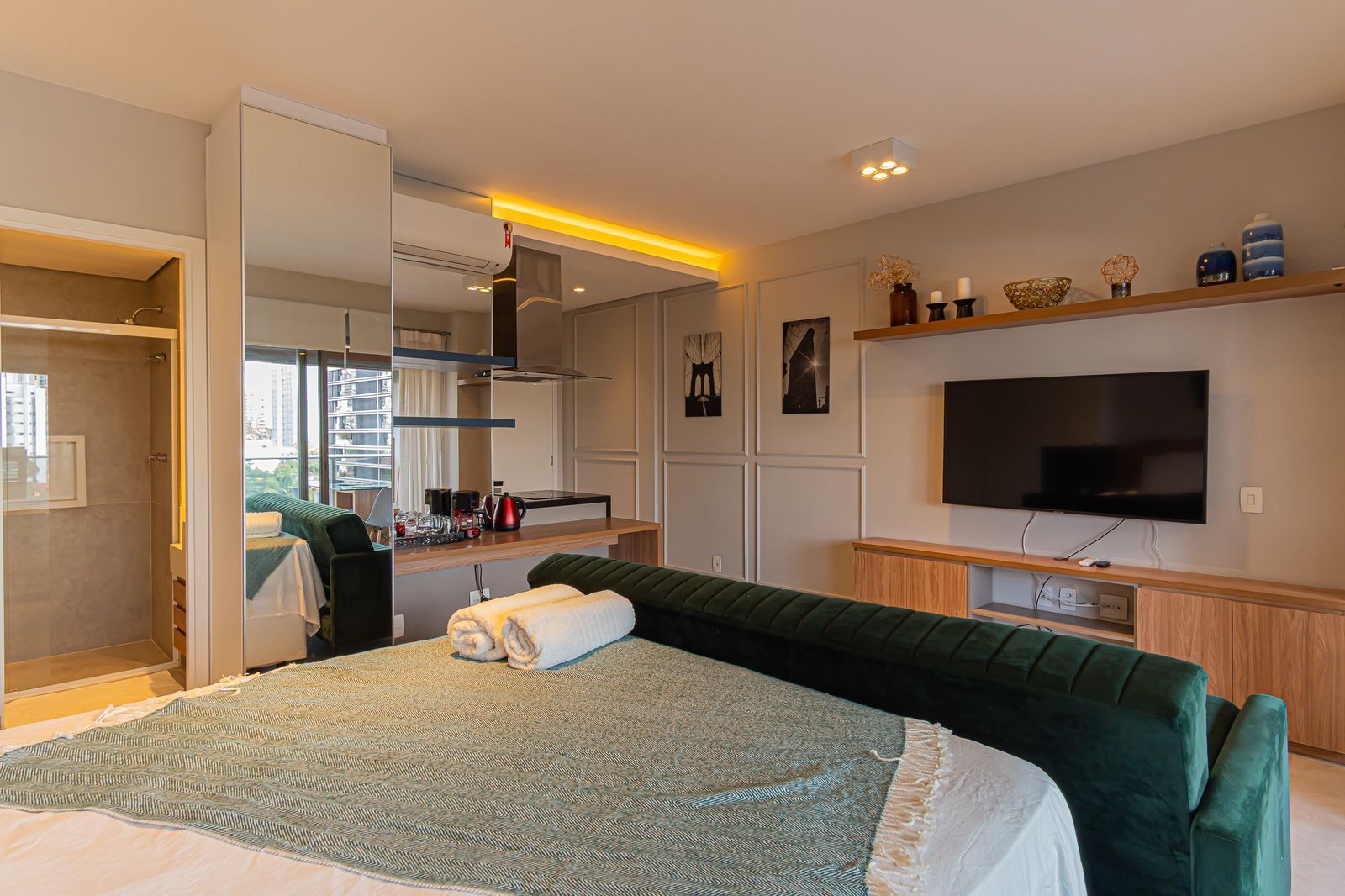 Descubra o charme e a praticidade desse sofisticado studio mobiliado de 41m², ideal para quem aprecia conforto e modernidade. 🏡 Com um design inteligente e decoração impecável, este imóvel é um verdadeiro refúgio urbano. Apresentando um ambiente acolhedor, está equipado com ar condicionado para garantir o conforto em qualquer estação. A varanda espaçosa é o local perfeito para relaxar e desfrutar do seu espaço ao ar livre pessoal. 🪴 Com um quarto bem projetado, tudo aqui foi desenhado para oferecer a você a sensação de estar em casa desde o primeiro dia. A conveniência é ainda mais elevada com a vaga de garagem, oferecendo mais segurança e praticidade para o dia a dia. Garanta já seu espaço nesta verdadeira joia do mercado imobiliário. Agende uma visita e prepare-se para se encantar! ✨🔑