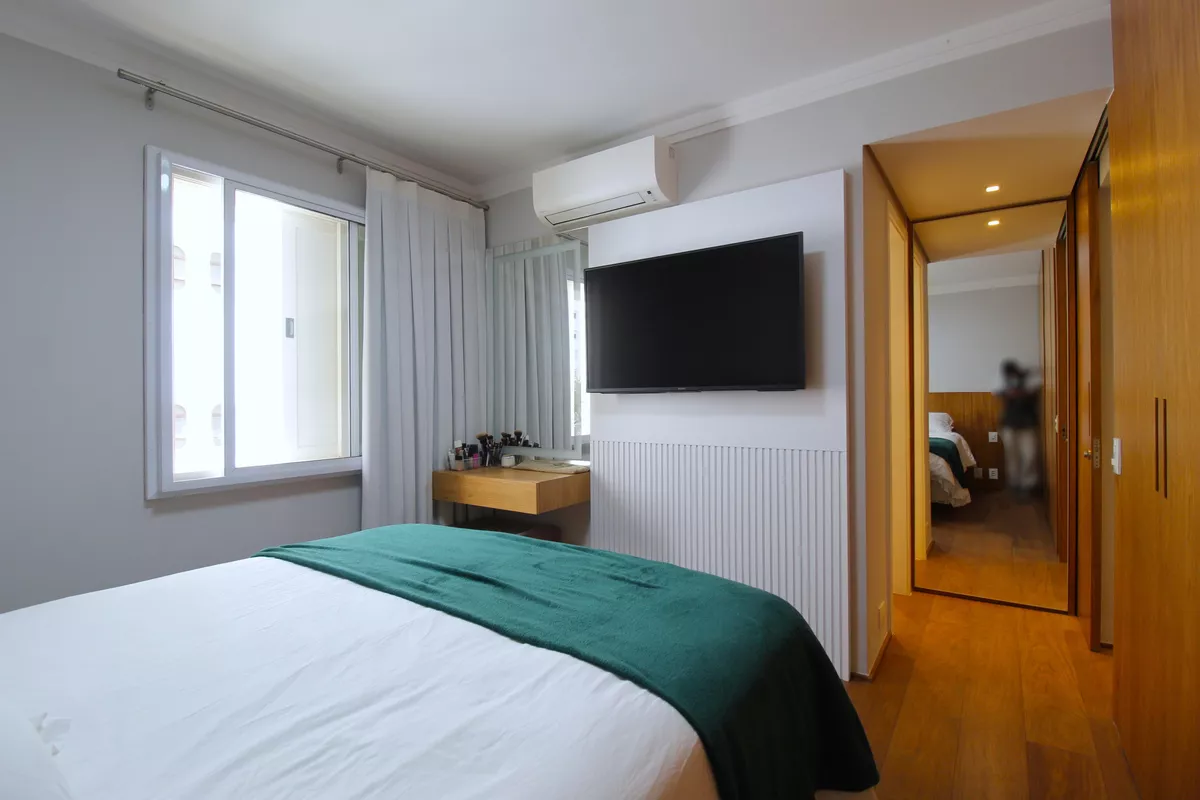 Descubra o apartamento dos seus sonhos com 114m² de puro conforto e sofisticação. Totalmente mobiliado e decorado com extremo bom gosto, este imóvel oferece o que há de melhor em qualidade de vida. 🏡 Com duas suítes espaçosas, ideais para relaxar e recarregar as energias, cada detalhe foi pensado para oferecer o máximo de comodidade. Três banheiros completos, impecavelmente projetados, garantem praticidade e funcionalidade ao seu dia a dia. A cozinha americana, equipada com armários planejados e eletrodomésticos modernos, é perfeita para preparar refeições saborosas enquanto interage com amigos e familiares. Proporcionando ainda mais conforto, o apartamento conta com ar condicionado em todos os ambientes e sistema de aquecimento a gás nos chuveiros, tornando a sua experiência ainda mais agradável em qualquer estação do ano. 🚿 Os quartos e corredores possuem portas amplas que não só ampliam o espaço, como também permitem a entrada abundante de luz natural. Para completar, uma área de serviço bem dimensionada e uma vaga de garagem garantem ainda mais praticidade à sua rotina. Não perca essa oportunidade única de morar em um espaço que combina elegância, conforto e funcionalidade. Agende já a sua visita e venha se encantar pessoalmente! ✨