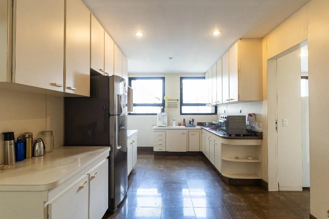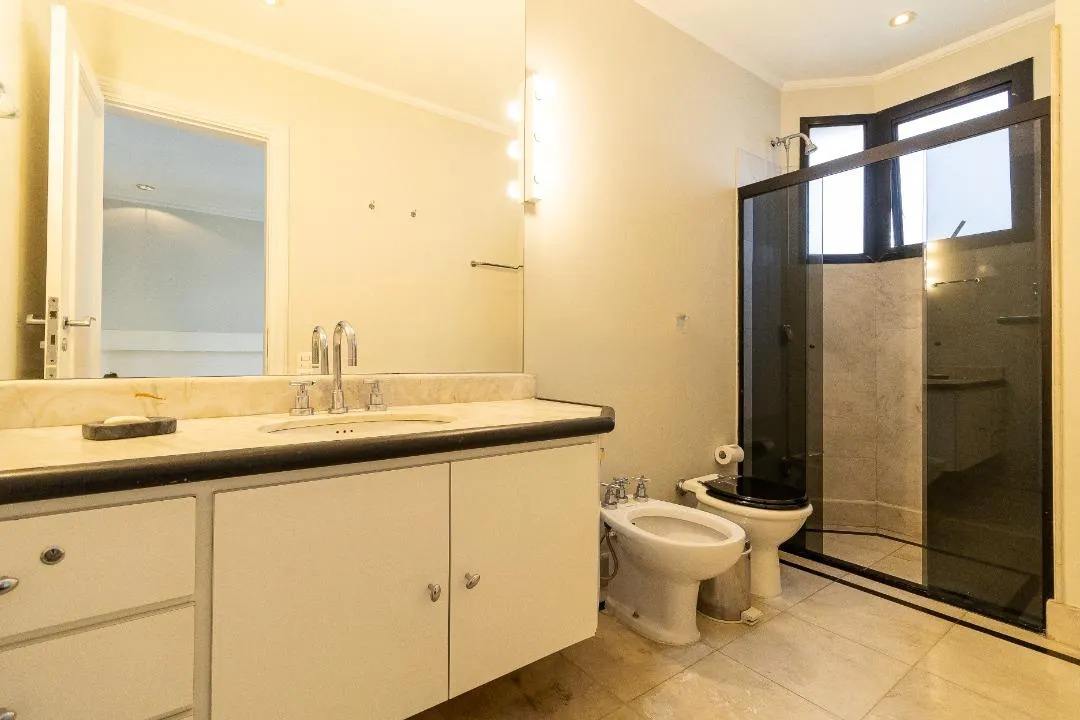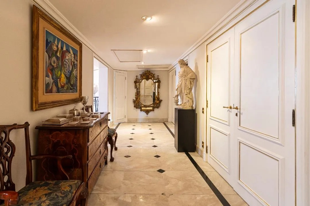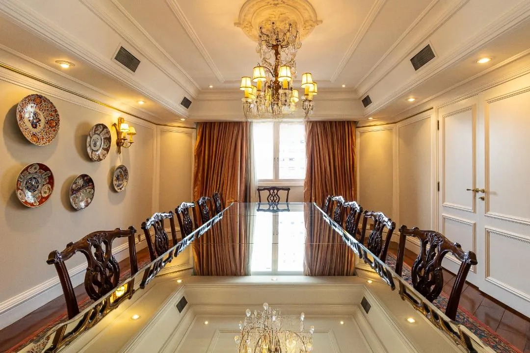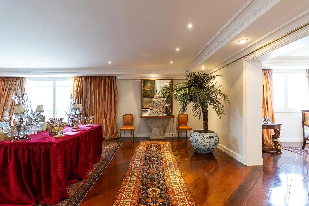 Descubra o extremo do luxo e conforto neste magnífico apartamento de 552m², meticulosamente reformado, que ocupa um andar inteiro e proporciona a exclusividade de um hall privativo. Este imóvel exuberante oferece três suítes, sendo a suíte master uma verdadeira joia, ocupando o espaço de duas suítes e complementada por um closet espaçoso. Cada detalhe foi cuidadosamente planejado para encantar e surpreender. O coração do apartamento revela-se em um living sofisticado, onde uma aconchegante sala íntima e uma sala de estar ampla, conectada por portas de vidro à varanda ensolarada, tornam-se o cenário perfeito para momentos inesquecíveis. A sala de jantar destaca-se pela elegância, ideal para receber amigos e familiares em grande estilo. A cozinha planejada, com uma abundância de armários, é perfeita para os amantes da culinária. Além disso, o apartamento dispõe de uma área de serviço completa e três dormitórios para funcionários, assegurando praticidade e conforto em todas as ocasiões. O imóvel é complementado por cinco vagas de garagem, um verdadeiro privilégio na cidade. Os atrativos não param por aí: o condomínio oferece uma infraestrutura excepcional com segurança garantida. Desfrute de áreas comuns que incluem piscina, churrasqueira, espaço gourmet, academia e brinquedoteca. Além disso, uma quadra, piscina aquecida, playground, salão de jogos e área verde proporcionam lazer e conforto a qualquer momento. Não perca esta oportunidade singular de viver com qualidade de vida elevada ao máximo. Agende sua visita agora mesmo e encante-se com cada detalhe deste apartamento inigualável. 🏠✨