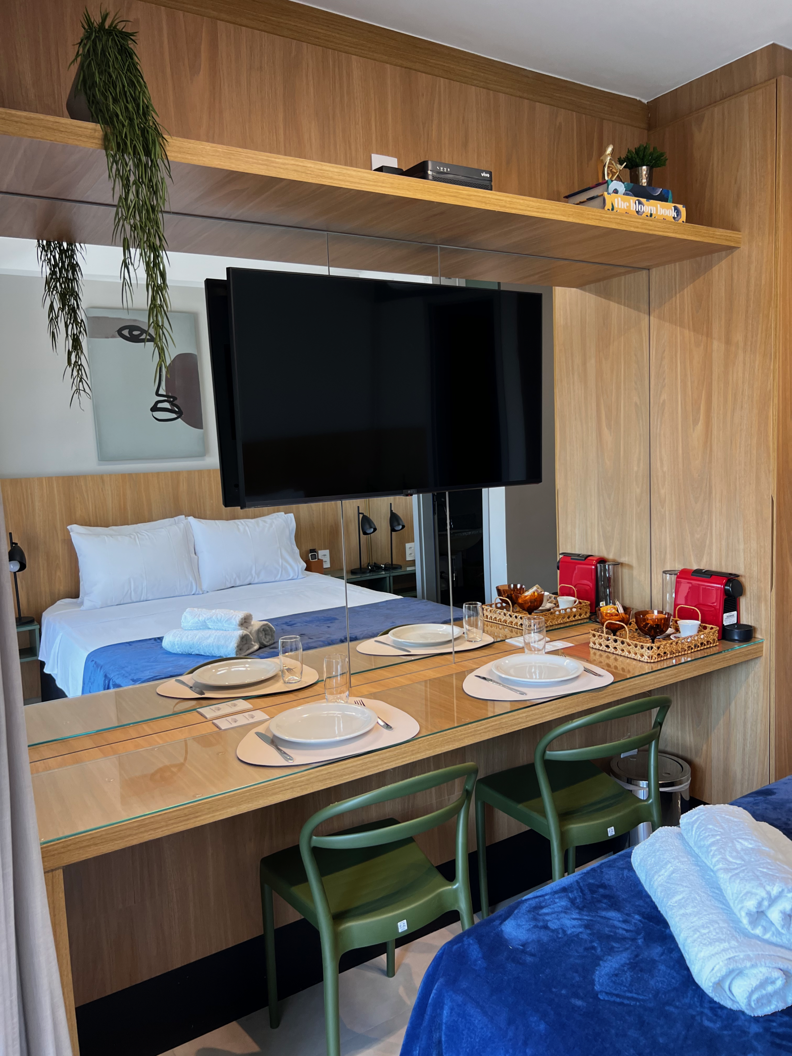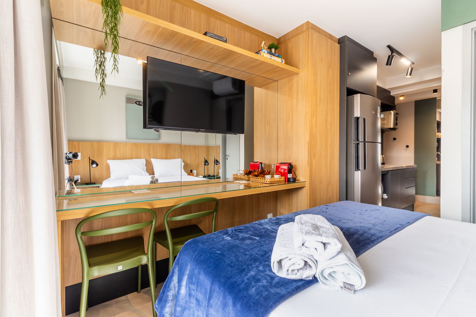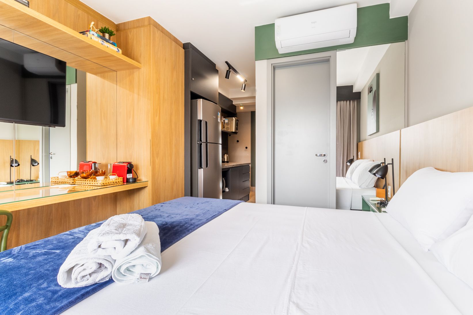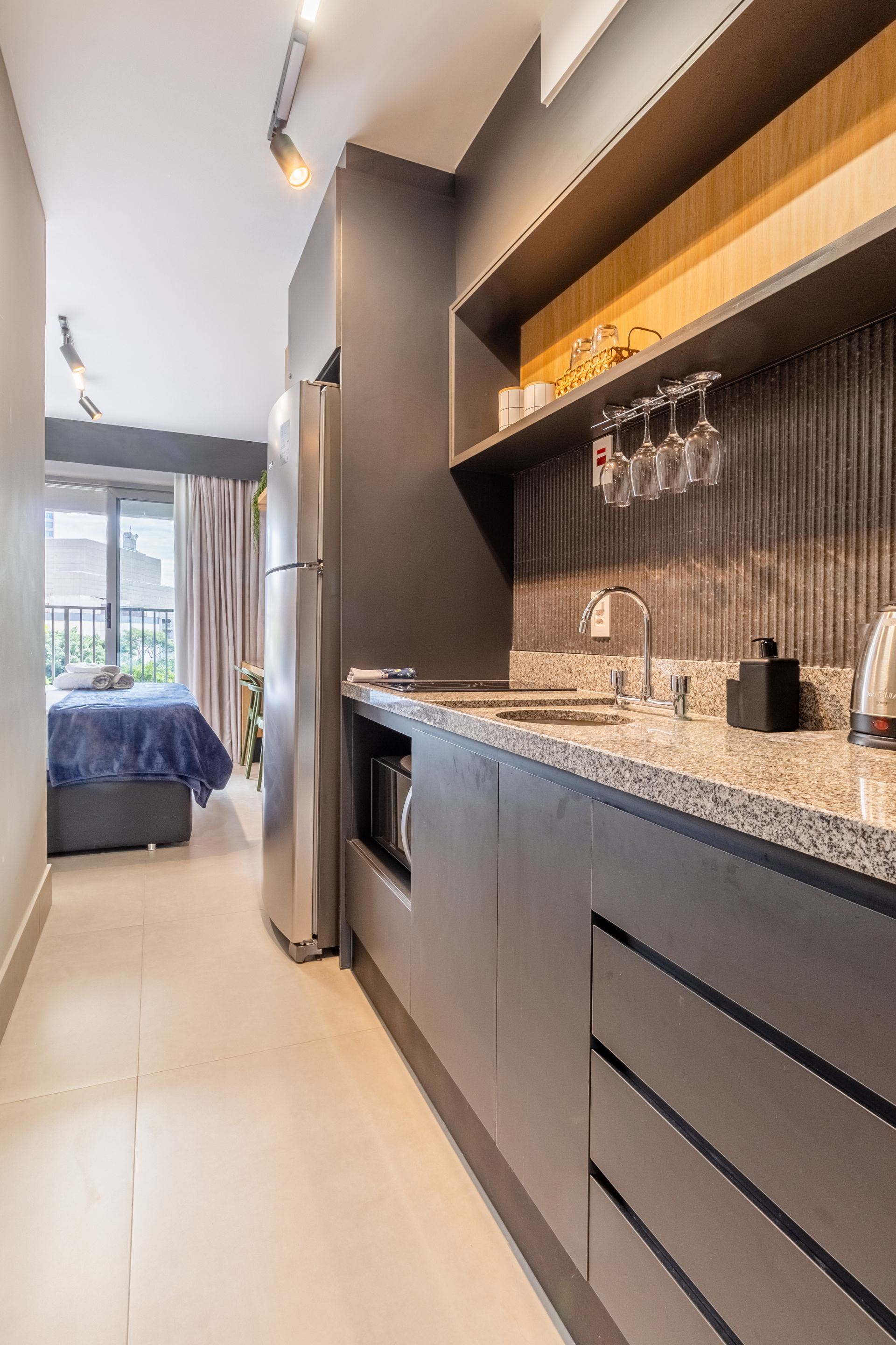 Apresentamos a você um incrível studio mobiliado com 26m² que oferece todo o conforto e praticidade que você necessita. Este espaço foi pensado para otimizar seu dia a dia, proporcionando um ambiente compacto e funcional sem abrir mão do estilo e conforto. Ao adentrar este refúgio, você é recebido por uma varanda convidativa, perfeita para momentos de relaxamento e para aproveitar aquele café da manhã especial. Todo o ambiente é climatizado com ar condicionado, garantindo o seu bem-estar em todas as estações do ano. A integração dos móveis proporciona um ambiente harmônico, com armários na cozinha e no banheiro que oferecem um design sofisticado e otimização de espaço. Imagine se mudar sem nenhuma preocupação, pois tudo já está pronto para você morar, assegurando uma transição suave e prática. Com seu layout cuidadosamente planejado, este studio é um verdadeiro convite ao bem-viver. Descubra agora mesmo o seu novo lar e viva a experiência de morar em um espaço que é a extensão do seu estilo e das suas necessidades. Esta é a oportunidade que você estava esperando! Entre em contato e venha visitar. 🏡✨