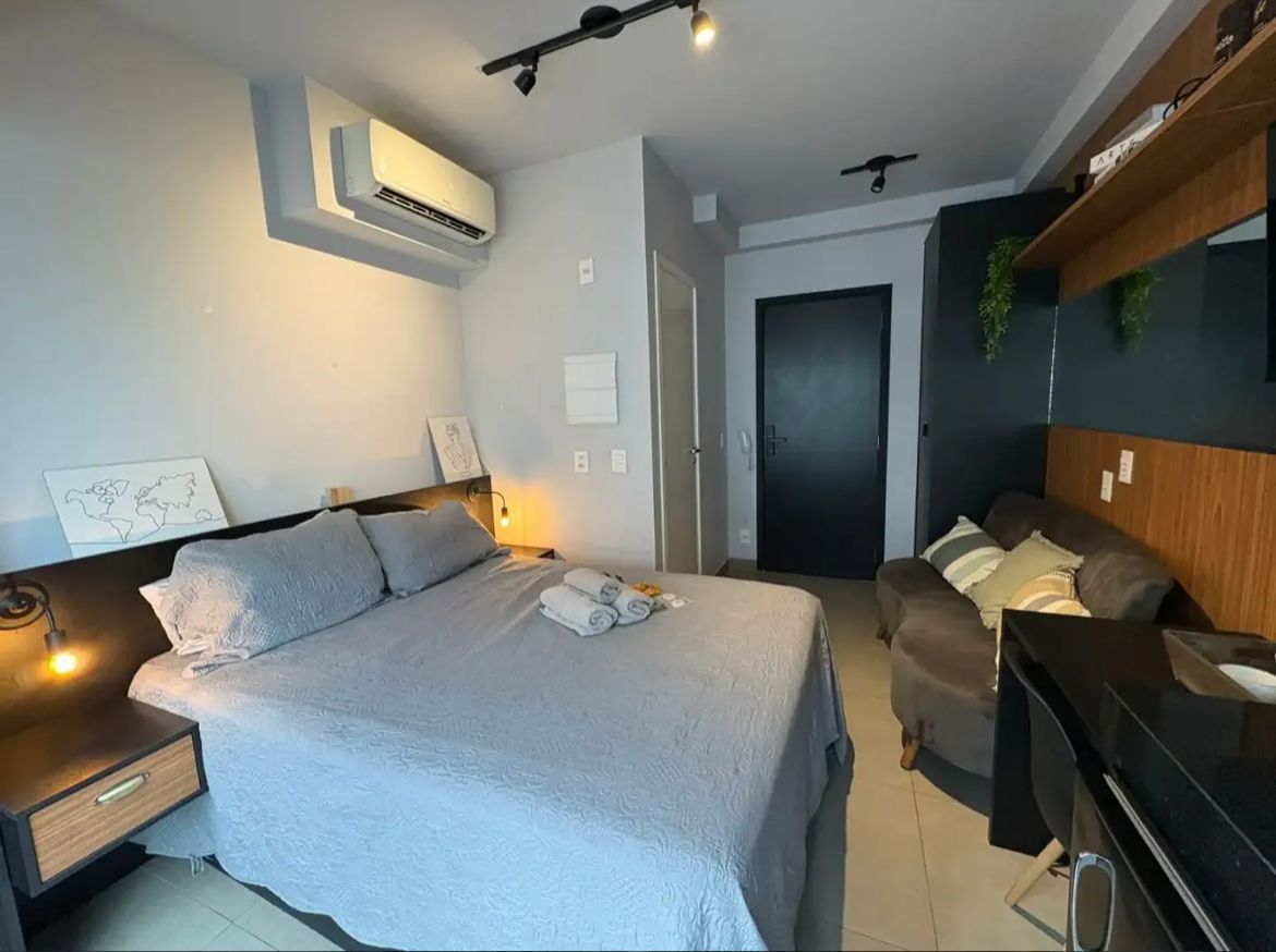 Este encantador studio mobiliado de 19m² oferece a combinação perfeita de comodidade e praticidade. Com um design moderno e eficiente, o espaço é acolhedor e está pronto para você morar ou investir. O ambiente bem distribuído inclui um quarto aconchegante e um banheiro equipado com armário embutido, atendendo a todas as suas necessidades diárias. Um dos grandes atrativos é o ar condicionado, que assegura conforto em todas as estações do ano. A cozinha possui armários planejados, maximizando o uso do espaço disponível e proporcionando funcionalidade ao dia a dia. Além do aconchego do studio, os moradores ainda têm acesso a uma infraestrutura completa com academia, piscina e salão de festas, ideal para momentos de lazer e socialização. A presença de rampas de acesso garante mobilidade a todos os visitantes do prédio. A lavanderia no edifício oferece ainda mais praticidade, facilitando a rotina sem ocupar espaço dentro do imóvel. Se você está à procura de um espaço que combine estilo e funcionalidade, este studio é a escolha perfeita. Entre em contato e venha conhecer pessoalmente este imóvel que pode ser a solução ideal. Não perca a oportunidade de investir em conforto e praticidade! 💼🏡✨