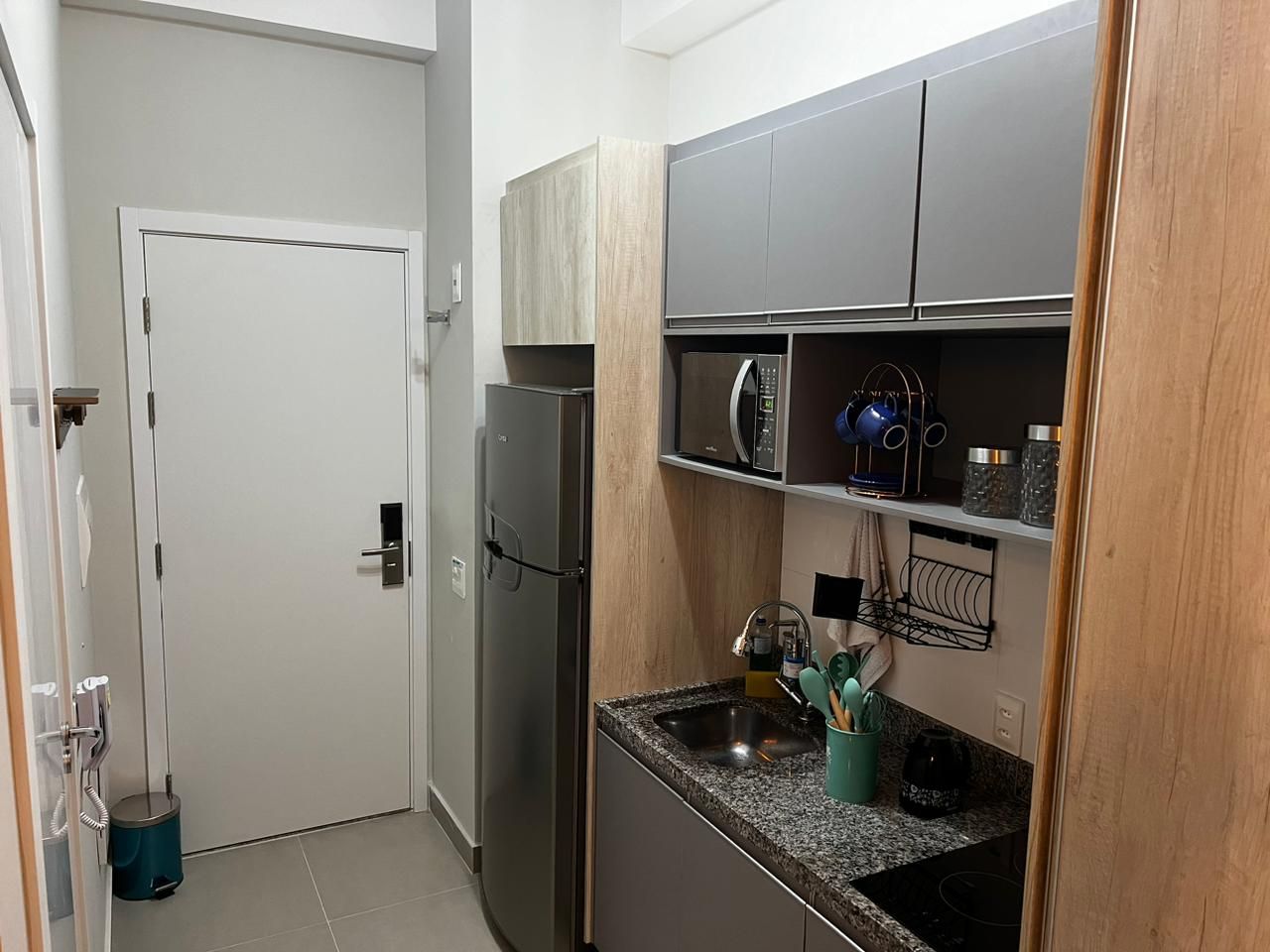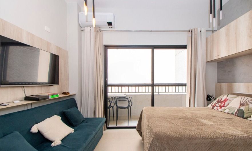 Este charmoso studio mobiliado de 27m² oferece o equilíbrio perfeito entre conforto e praticidade. Com um design moderno e otimizado, o espaço conta com um quarto aconchegante, um banheiro completo e uma varanda encantadora para momentos de relaxamento. Para garantir o máximo conforto, o imóvel dispõe de ar condicionado e armários planejados tanto no banheiro quanto na cozinha, otimizando cada metro quadrado. ✨ O condomínio oferece uma infraestrutura completa, perfeita para quem não abre mão de qualidade de vida. Desfrute de momentos de lazer na piscina, celebre ocasiões especiais na churrasqueira ou no salão de festas, e mantenha-se em forma na academia moderna. As famílias com crianças podem aproveitar o playground, enquanto outros podem se divertir no salão de jogos. Para maior comodidade, o prédio dispõe de lavanderia integrada, além de acessibilidade garantida com corrimão e rampas de acesso, além de portaria 24h, proporcionando segurança adicional. Não perca a oportunidade de viver neste imóvel que combina funcionalidade e conforto. Agende sua visita e venha conhecer seu novo lar! 🏡✨