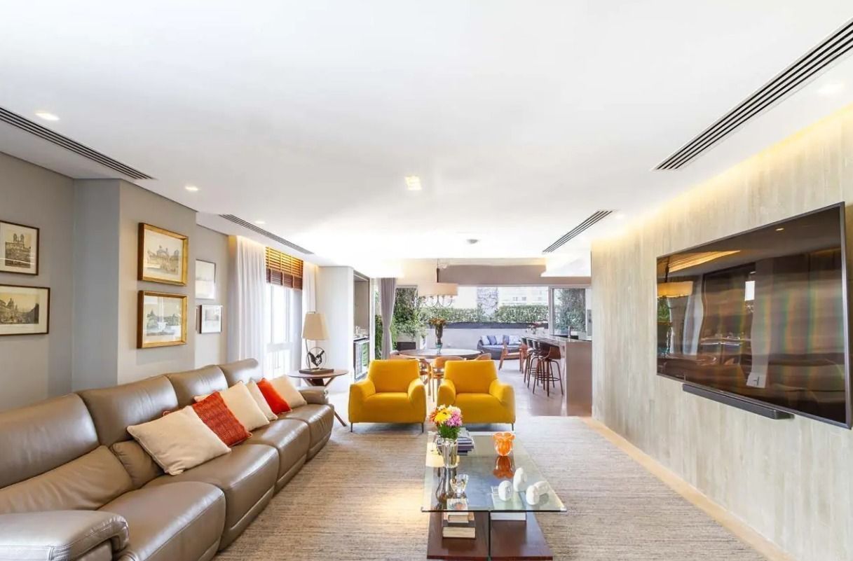 Descubra a exclusividade de viver em uma cobertura de 528m² cuidadosamente planejada para oferecer conforto e sofisticação. Esta propriedade única é um espetáculo à parte, com quatro suítes que garantem privacidade e bem-estar, complementadas por uma iluminação natural espetacular que adentra pelas amplas janelas. A integração das áreas sociais forma o ambiente perfeito para reunir amigos e familiares, enquanto a área externa privativa com churrasqueira promete momentos inesquecíveis de relaxamento e lazer. Imagine-se desfrutando de tardes ensolaradas na varanda espaçosa ou aproveitando o ar condicionado nas áreas internas, sempre ao som de boas risadas e conversas acolhedoras. E para aqueles que prezam pela organização e praticidade, os armários planejados nos dormitórios, banheiros e cozinha são a cereja do bolo. Com 8 vagas de garagem e um depósito privativo, espaço nunca será uma preocupação. Este imóvel não é apenas uma casa, mas um estilo de vida em um condomínio que oferece comodidades de alto padrão, como academia, piscina, salão de festas, entre outros. Esta é a oportunidade que você esperava para transformar seu modo de viver. Não perca tempo, agende já uma visita e encante-se com cada detalhe desta cobertura extraordinária! ✨